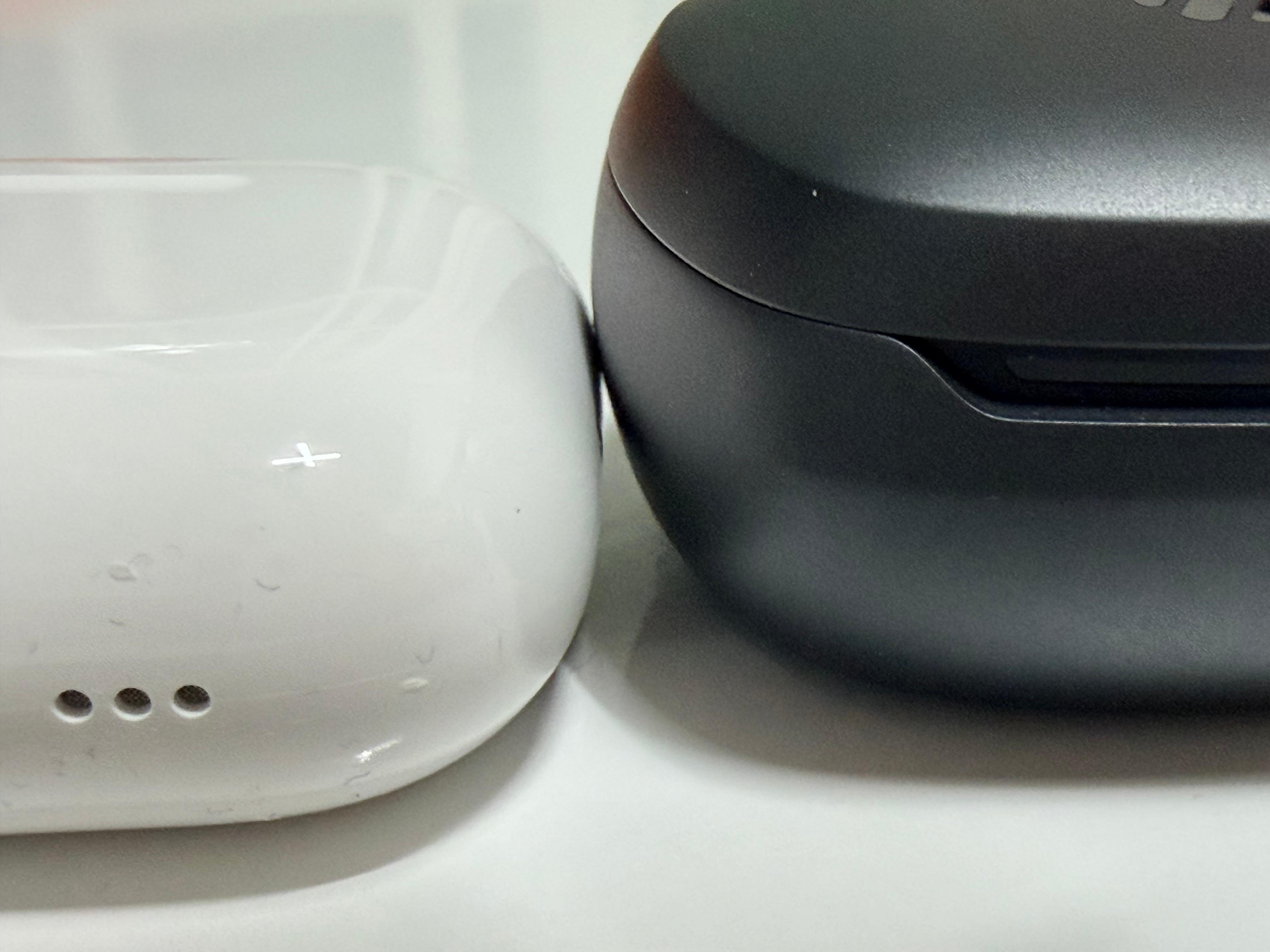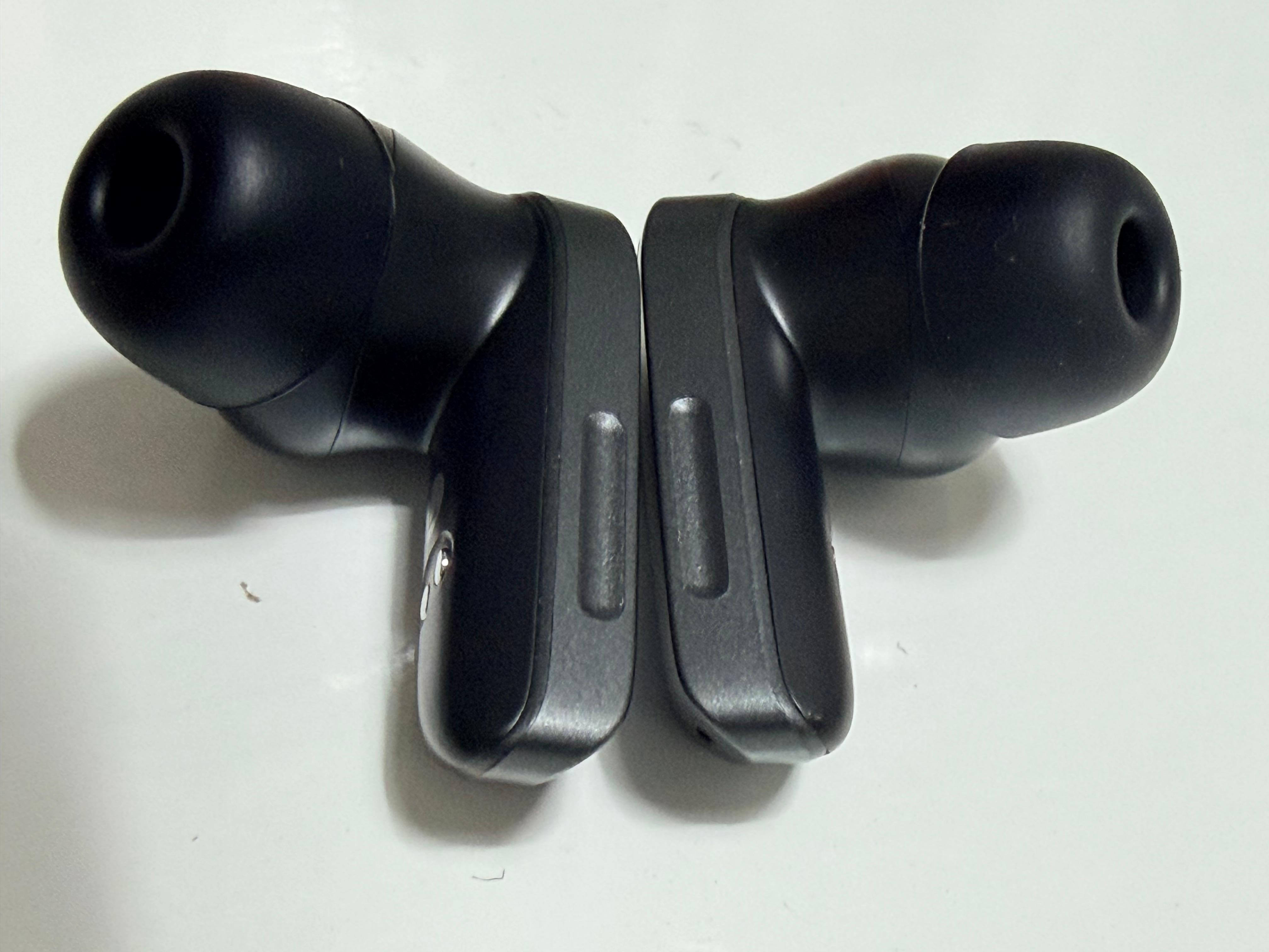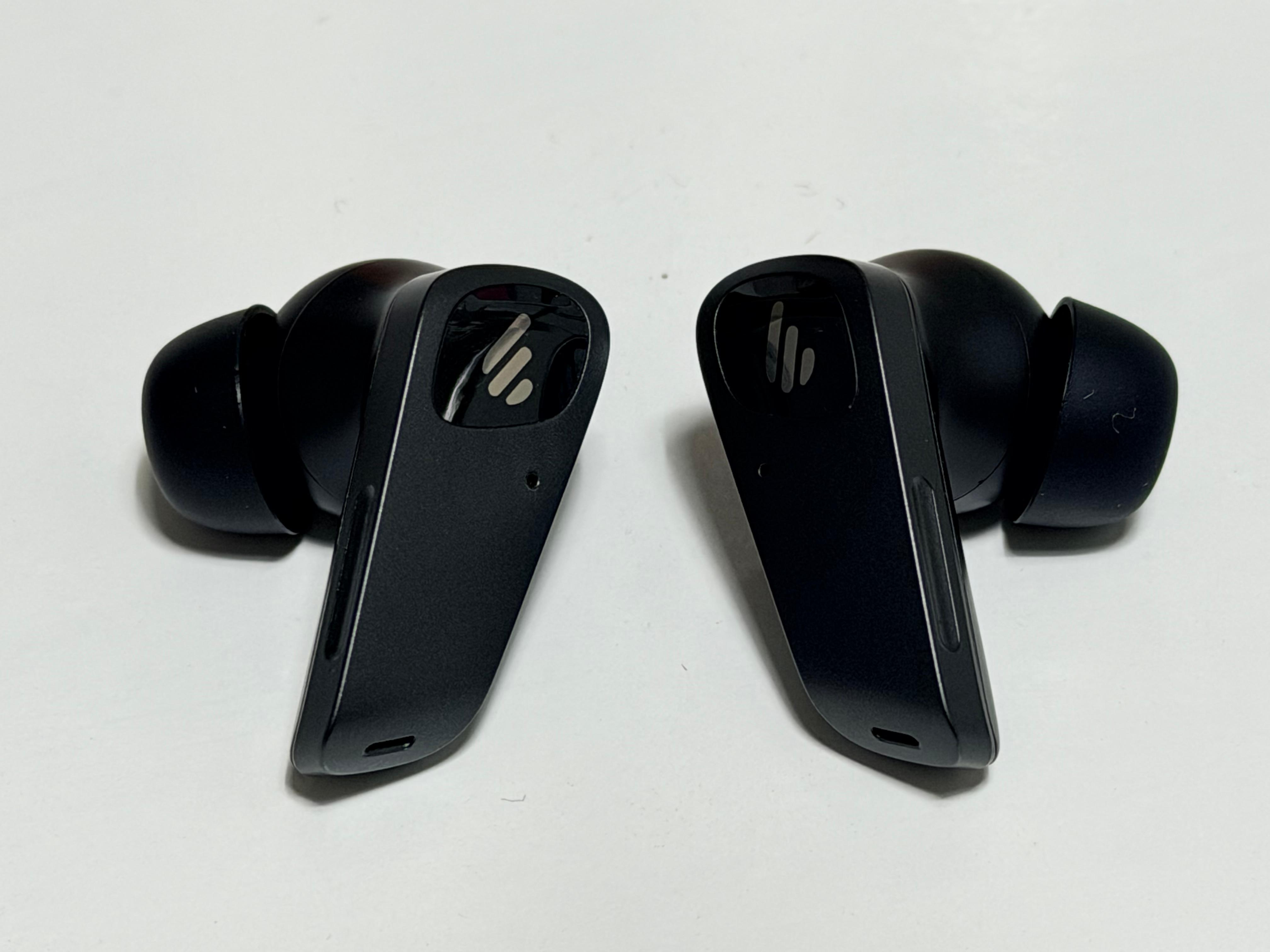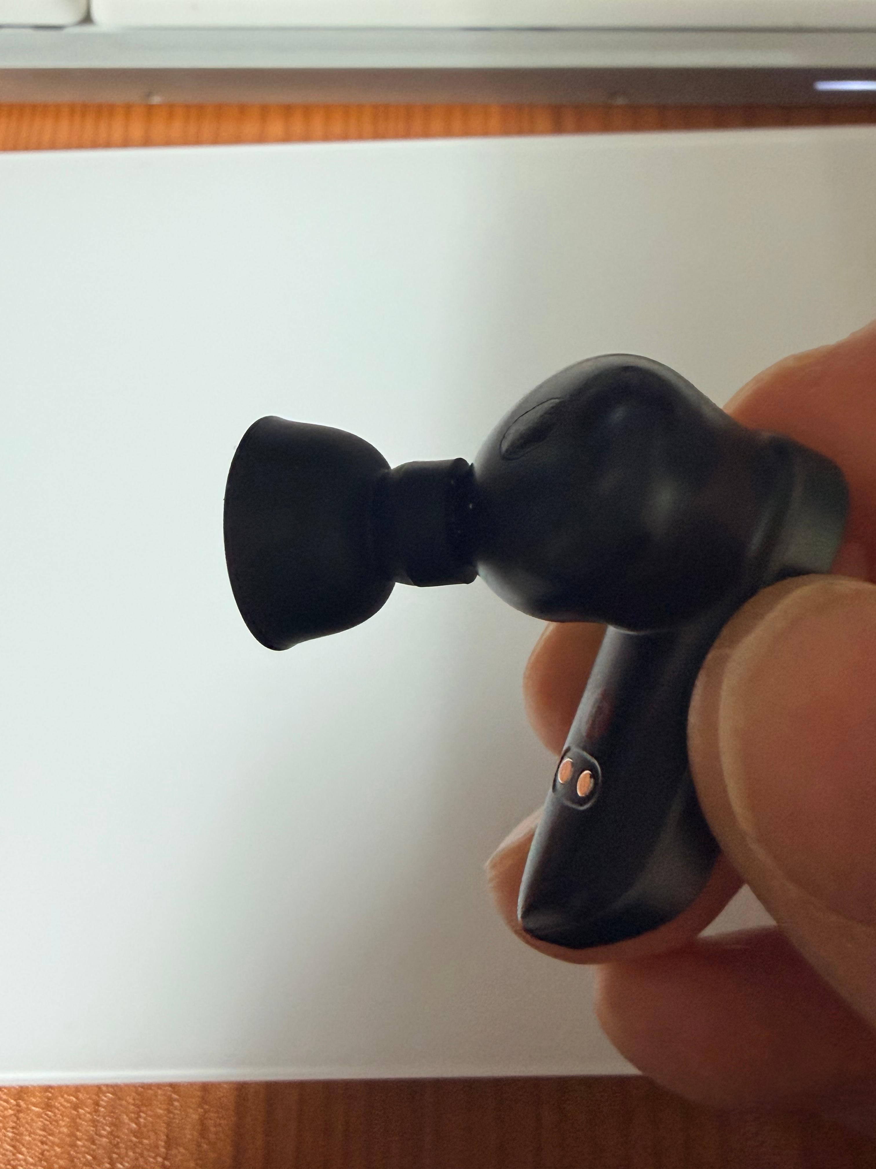 에디파이어 Neobuds Planar의 유닛은 각이 져 있는 기둥을 가지고 있습니다. 에어팟 프로3에 비해는 기둥이 두껍고 유닛 자체의 부피도 큰 편입니다. 아무래도 12mm의 평판형 드라이버를 내장해야 하기 때문이겠죠. 크기가 큰 것보다는 넙대대한 두께감이 제품의 그립감을 다소 안 좋게 합니다. 넓지만 납작한 모양 때문에 이어폰을 장착한 모습이 정면에서는 크게 두드러지지는 않습니다만 옆에서 봤을 때는 둔탁해 보이는 면은 있습니다. 물론 보스의 울트라 시리즈에 비하면 매우 슬림합니다.
