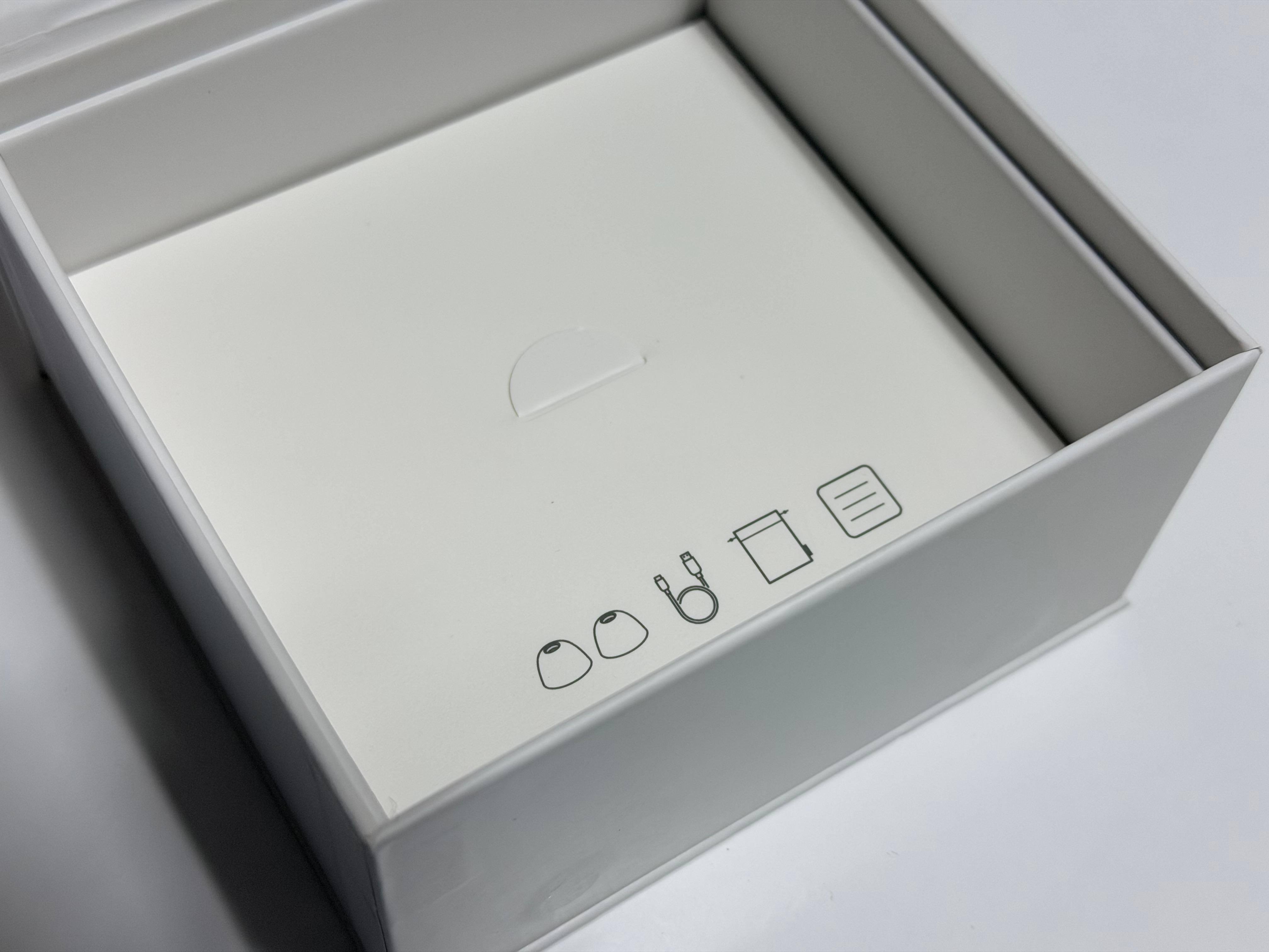 Neobuds Planar는 속박스가 흰색입니다. STAX SPIRIT S10의 속박스는 좀 더 두꺼운 검은색이었던 걸 감안하면 박스에서도 원가 절감은 이루어진 것 같습니다. 물론 그렇다고 하더라도 포장이 부실하거나 아쉬움이 느껴지진 않습니다. 포장은 그 어떤 제품보다 만족감이 높은 편입니다. 18만원이라는 공동구매 가격을 감안하면 오히려 훌륭한 편입니다. 전체적으로 흰색이라 그런지 깔끔해 보입니다. 이어폰 케이스를 꺼내고 아래에 받치고 있는 종이판을 걷어내면 그 아래에 구성품이 담겨 있는 종이상자가 있습니다.
