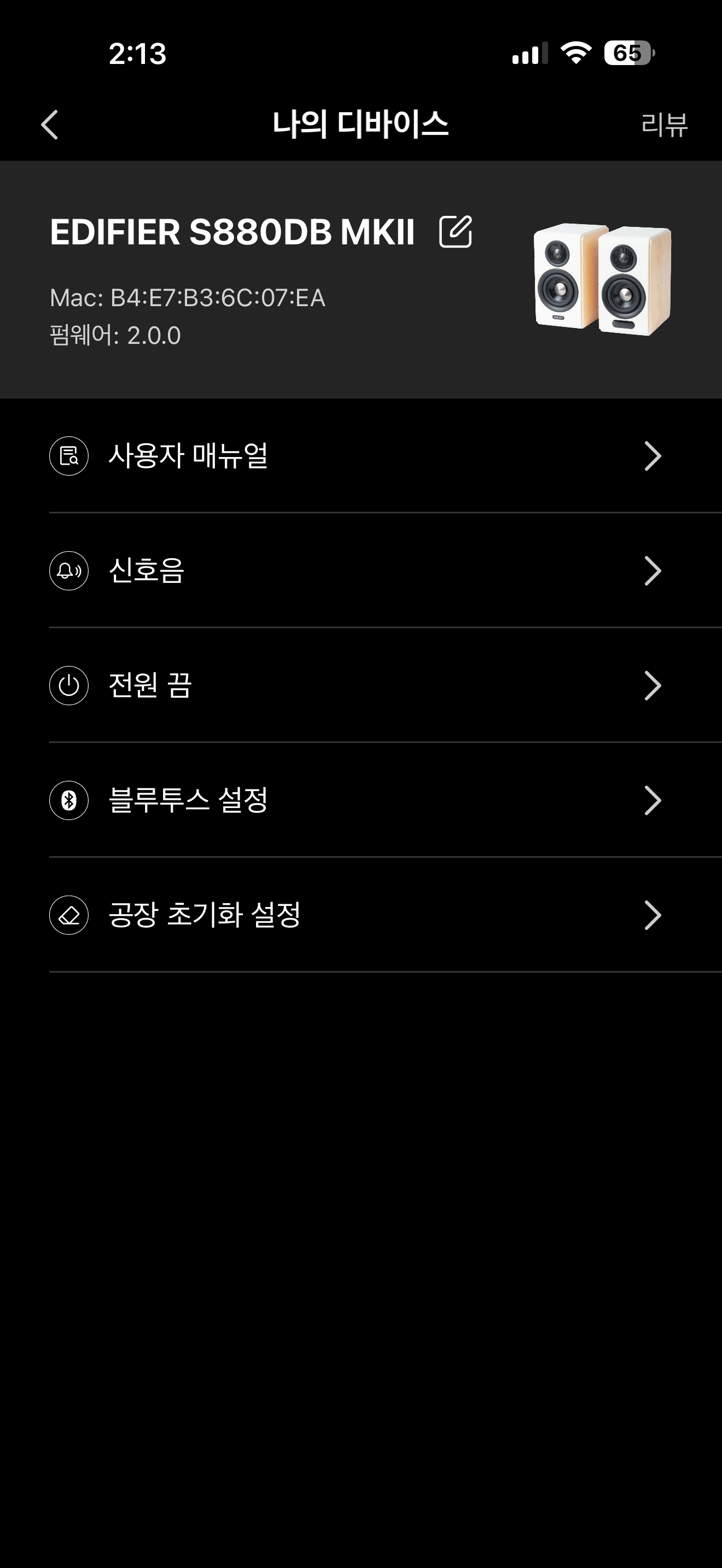 에디파이어 S880DB MKII를 블루투스로 연결하면 앱을 사용할 수가 있습니다. 블루투스로 들어 가면 EQ 프리셋이 존재합니다. 저는 모니터링으로 설정해서 음악을 재생했습니다. QCC Questyle Pro 동글과 페어링을 했더니 LDAC으로 연결을 할 수 있었습니다. 어차피 실내에서만 들을 거니 LDAC의 연결성이 문제가 되진 않을 겁니다. 데스크파이용으로 사용할 때는 블루투스가 큰 의미는 없겠지만 스피커를 다소 멀리서 사용하는 장소에서는 블루투스의 연결이 아주 반갑긴 합니다.
