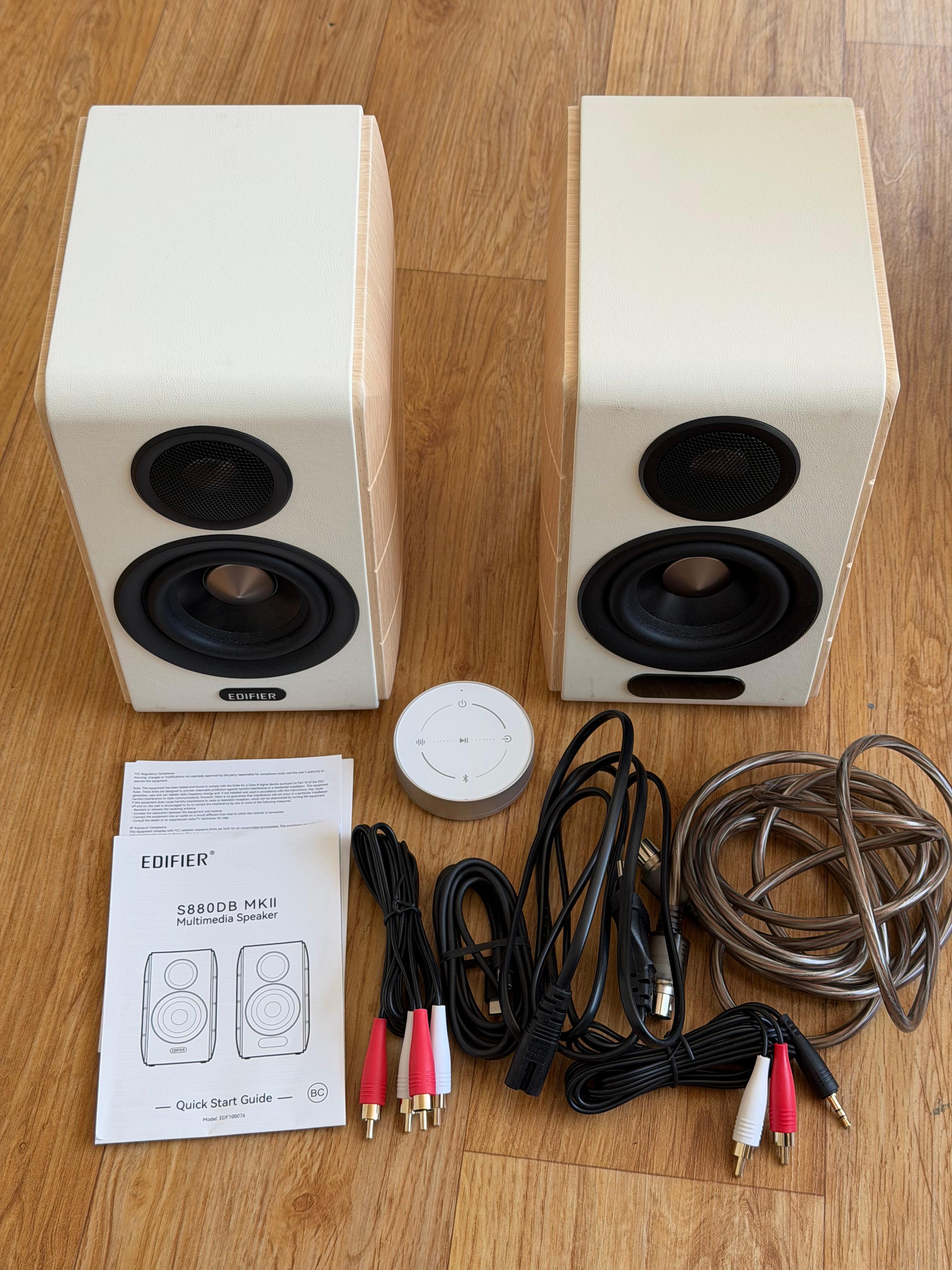 에디파이어 S880DB MKII는 이제는 더 이상 무시할 수 없는 에디파이어에서 출시한 중급기 북쉘프 스피커입니다. 디지털, 아날로그, 블루투스까지 다양한 입력을 지원하는 액티브 스피커인 에디파이어 S880DB MKII는 총 88W의 정격 출력을 지원하는 음악 감상용 제품입니다. 기본적으로 모니터 성향의 제품은 아니기 때문에 플랫한 소리를 재생해 주진 않지만 미드우퍼의 펀칭감이 좋은 편이어서 음악 감상이나 영화 감상에서 충분한 만족감을 줍니다.