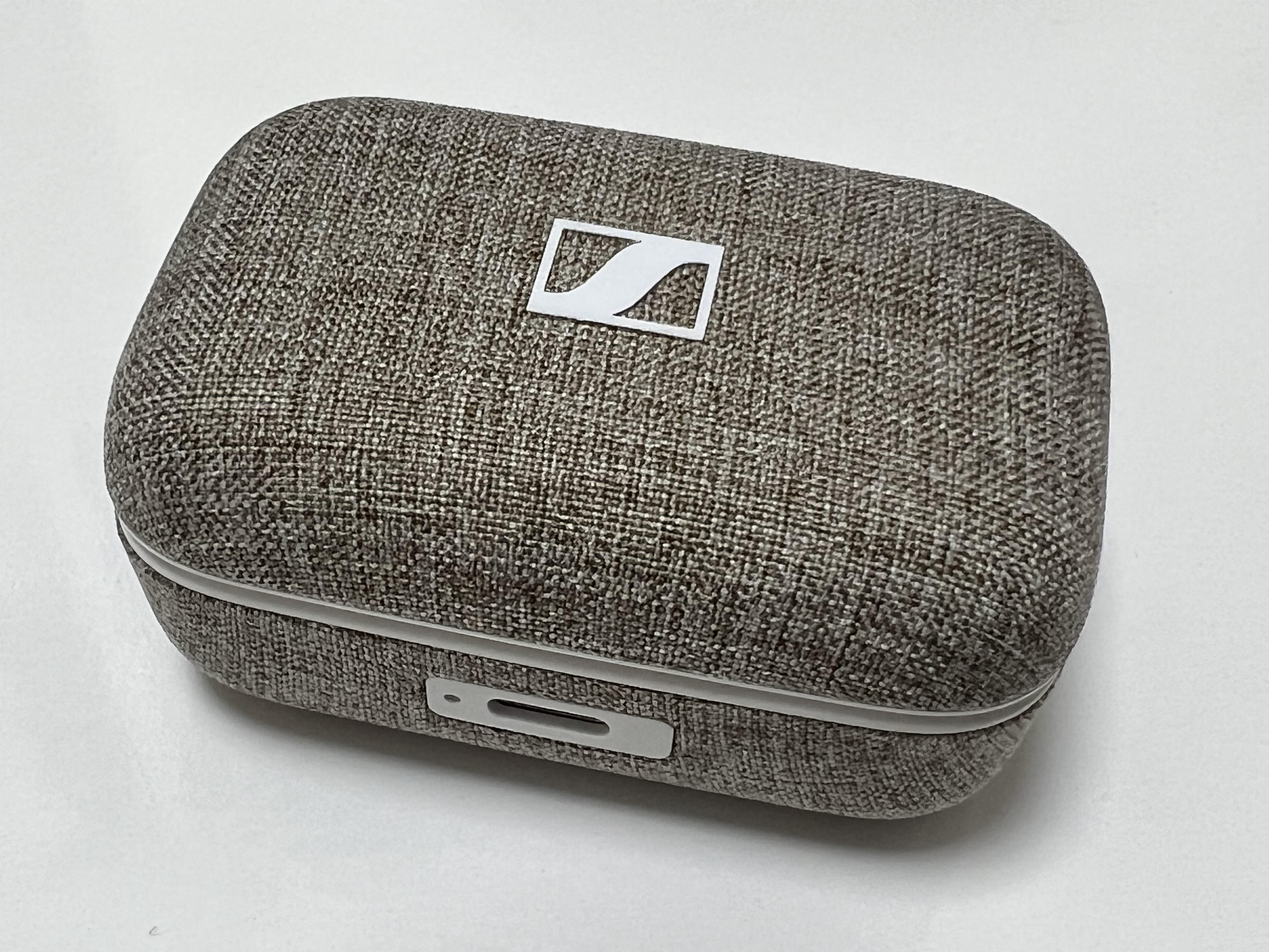 젠하이저 MTW3의 본체는 재질이 평범하지는 않습니다. 데님 재질 같기도 하고, 팽팽하게 당겨진 천 재질이 굉장히 고급스럽게 느껴집니다. 사진에는 거칠게 표현이 됐는데 실제 손에 잡히는 느낌은 일반 면티나 셔츠 질감입니다. 이어폰의 색상에 따라 본체의 색상도 달라집니다. 저는 흰색 이어폰을 구입했더니 본체의 색상도 밝은 색이 됐습니다.