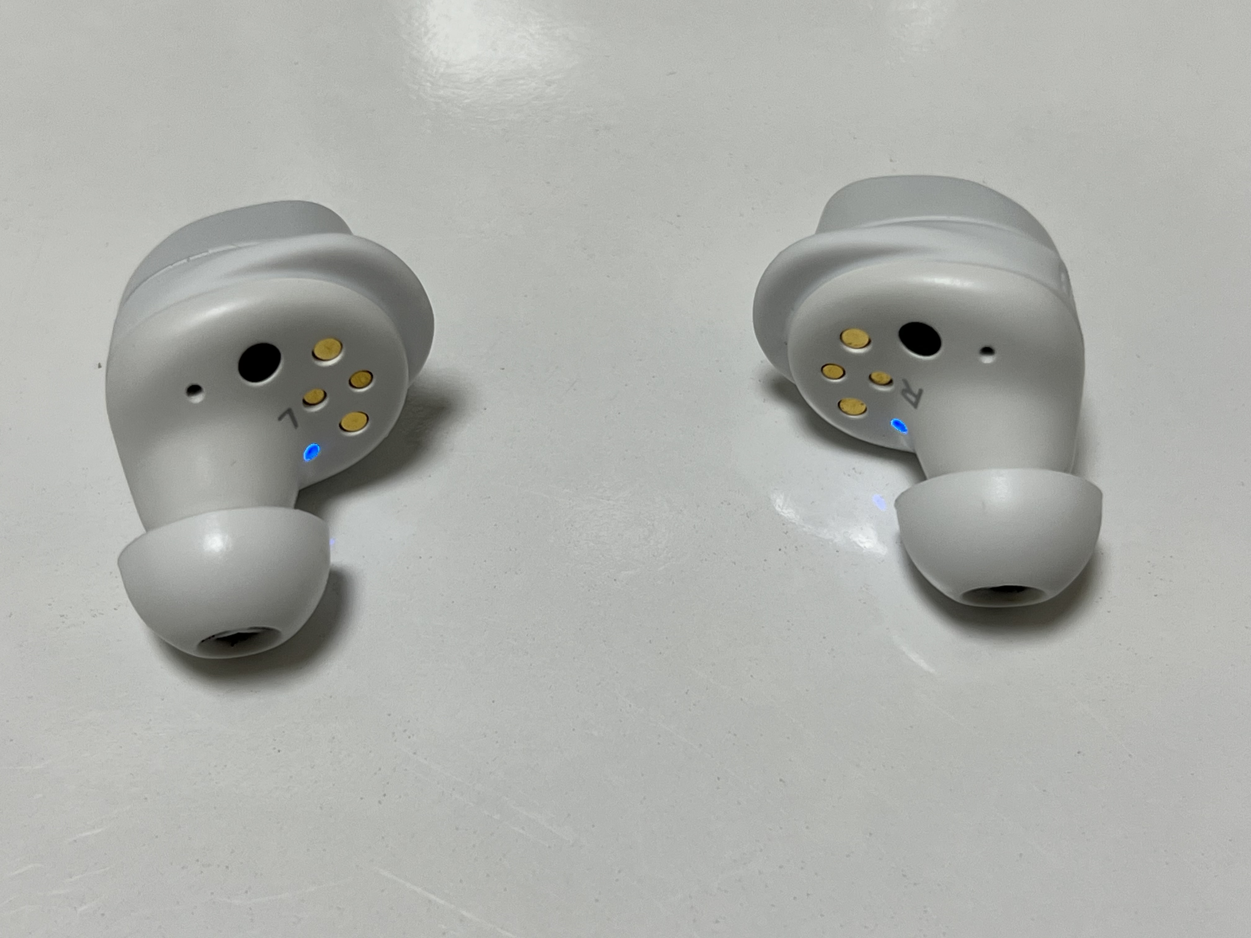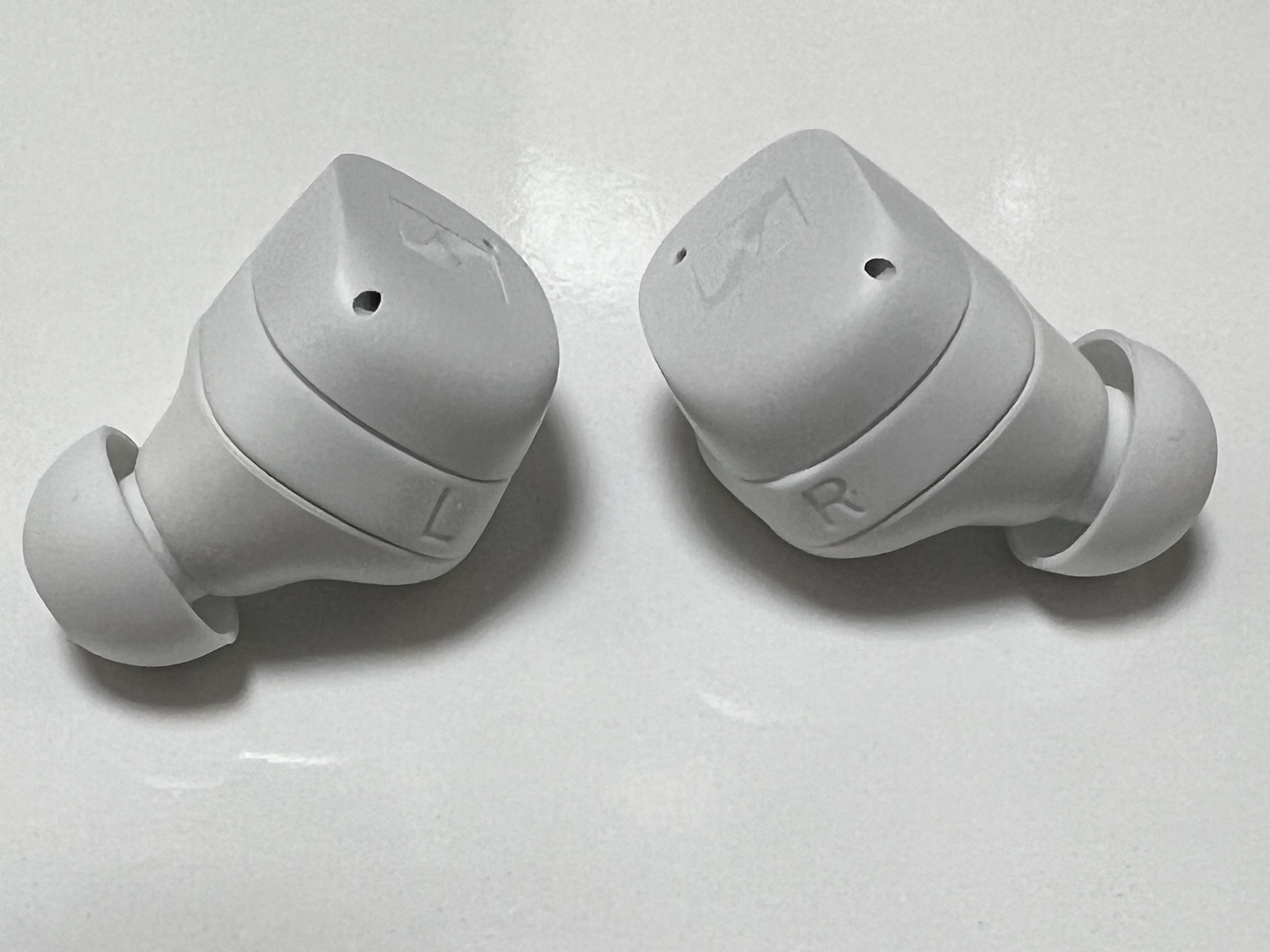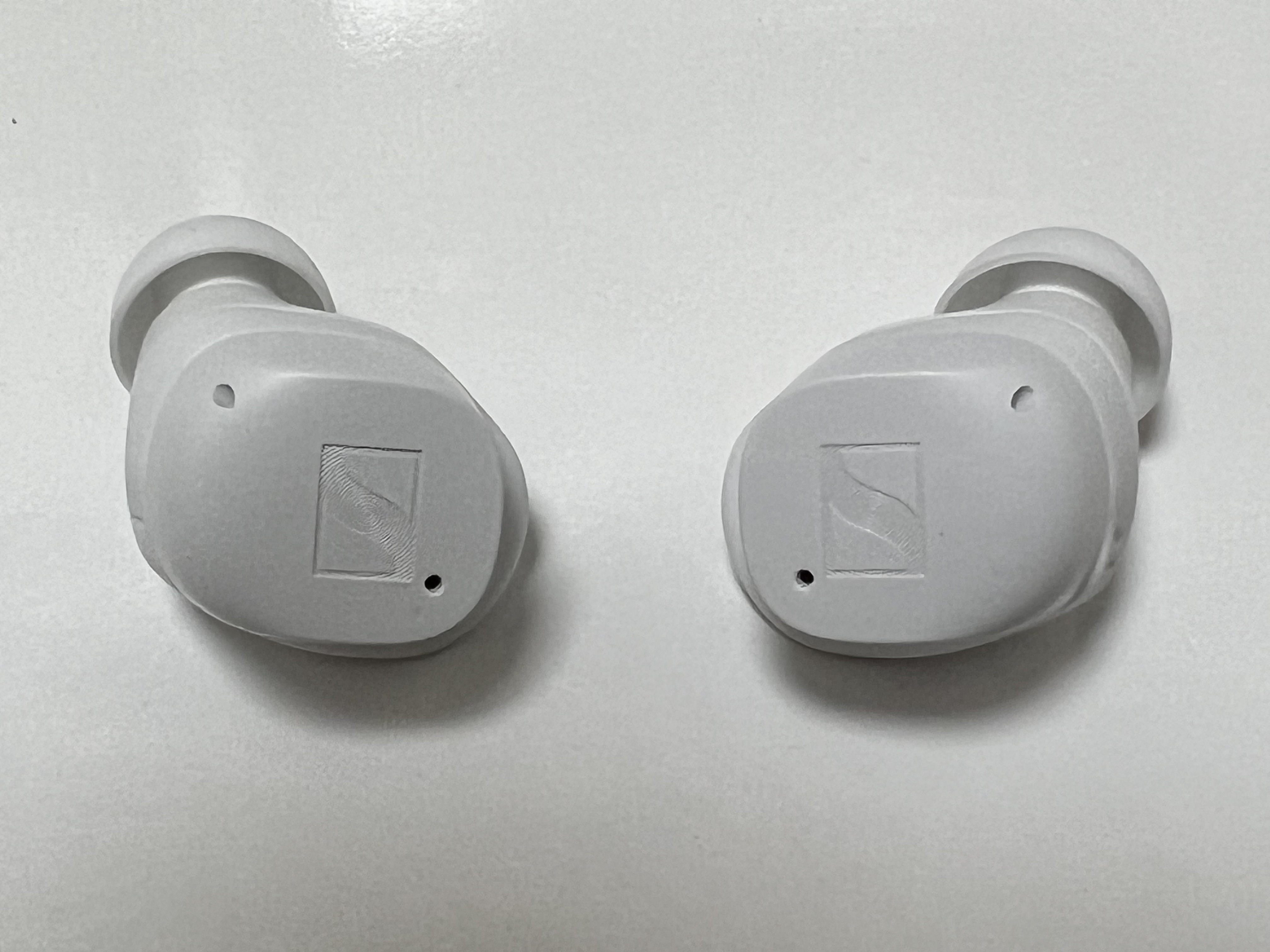 젠하이저 MTW3의 이어버즈에는 이어윙에도 L,R 표시가 되어 있고, 이어버즈 안쪽에도 L,R 표시가 되어 있습니다. 왼쪽 오른쪽 헷갈려서 잘못 꽂을 일은 없어 보입니다. 물론 이어윙의 경우는 착용시에 헷갈리지 말라고 표시를 해 놓은 것이겠지만 그래도 많이 써 있으면 좋은 거지요. 이어버즈의 디테일은 꽤 훌륭합니다. 젠하이저 MTW3은 3가지 색상(블랙, 화이트, 그라파이트)으로 출시가 되고 있지만 어두운 색을 선택하지 않은 건 손기름이 많이 묻어 나올까 싶어서였습니다. 흰색이 매트한 재질로 되어 있어서 손때가 가장 적게 묻어날 것 같았거든요. 맥북에어를 스페이스그레이로 구입하고나니 이 손기름이 엄청 신경이 쓰입니다.
