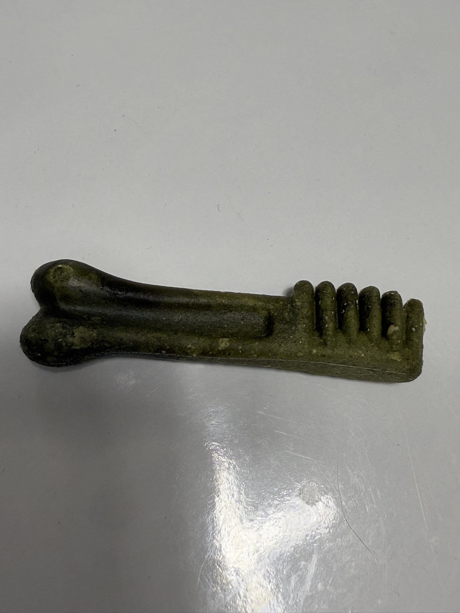 개껌은 새우깡 들어 있듯이 그냥 마구잡이로 들어가 있습니다. 개별 포장 같은 건 따로 없습니다. 하루에 한 개 정도 먹이고 있으니 약 석 달 분량입니다. 개껌의 크기는 약 5cm 정도입니다. 개껌이 녹색인 건 식물성 원료(라고 쓰고 풀떼기라고 읽는)가 들어가 있는 것 때문일 수도 있겠다는 추측을 했습니다만 실제로는 밀과 글루텐 등이 들어 있다고 하네요. 일단 저는 못 먹겠습니다. 저는 글루텐 먹으면 설사를 할 가능성이 높거든요(아까비)