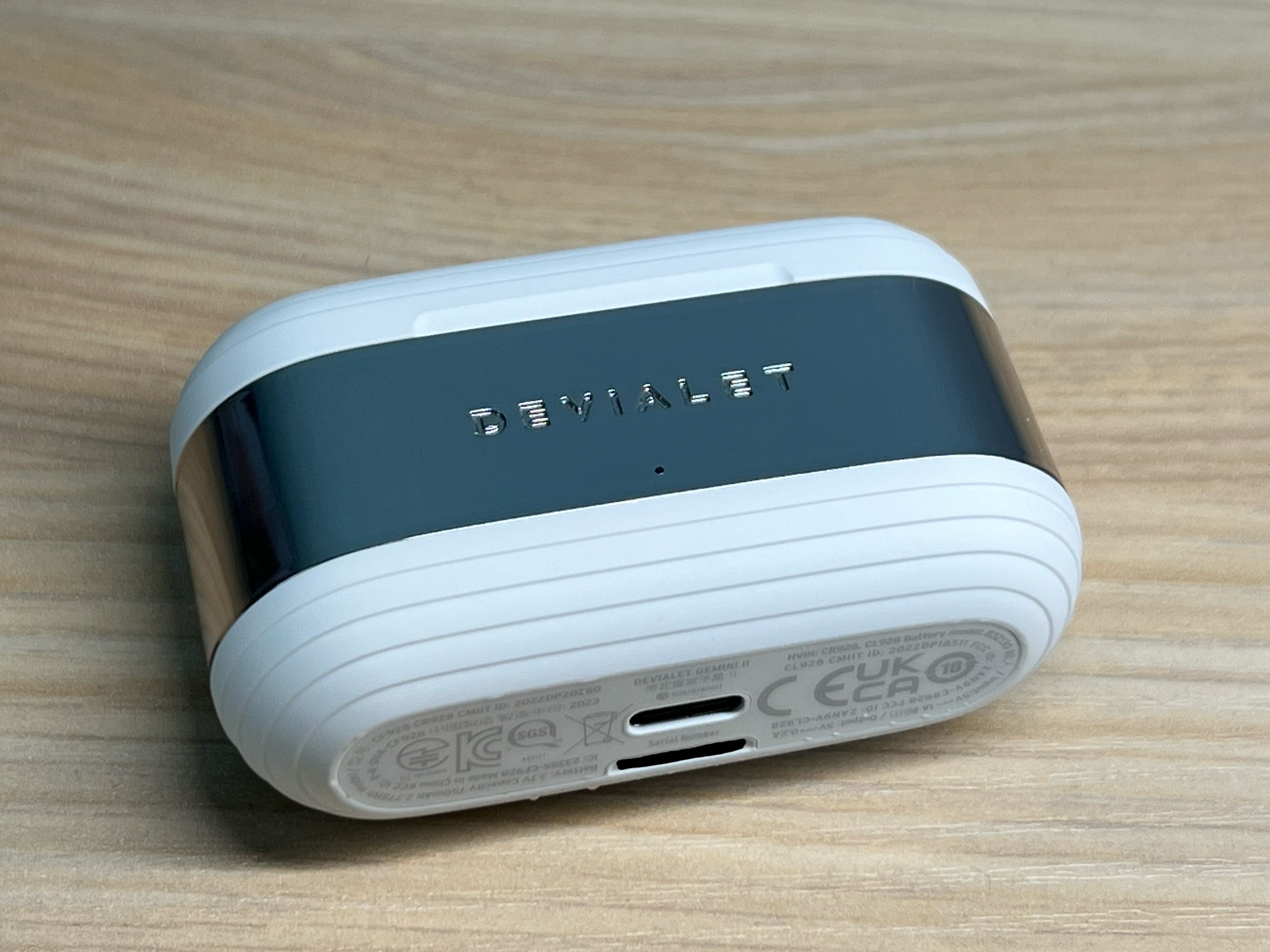 드비알레 로고가 한가운데 떠억하니 박혀 있는 본체입니다. 본체의 크기는 에어팟 프로2의 좌우 폭과 비슷하고, 위아래는 0.6cm 가까이 짧습니다. 위와 같이 눕혀 놨을 때의 높이는 0.6cm 더 높습니다. 전체적인 부피로는 에어팟 프로2의 케이스와 비슷한 크기라고 할 수 있습니다. 본체는 다른 기기와 마찬가지로 이어버즈의 충전기 용으로 사용이 되며, 17시간 가량의 추가 사용을 가능하게 해 줍니다. 기본 이어버즈의 사용시간이 5시간으로 타사 제품 대비 짧은 편이지만 본체의 충전 용량을 포함하면 22시간까지 사용할 수 있습니다.