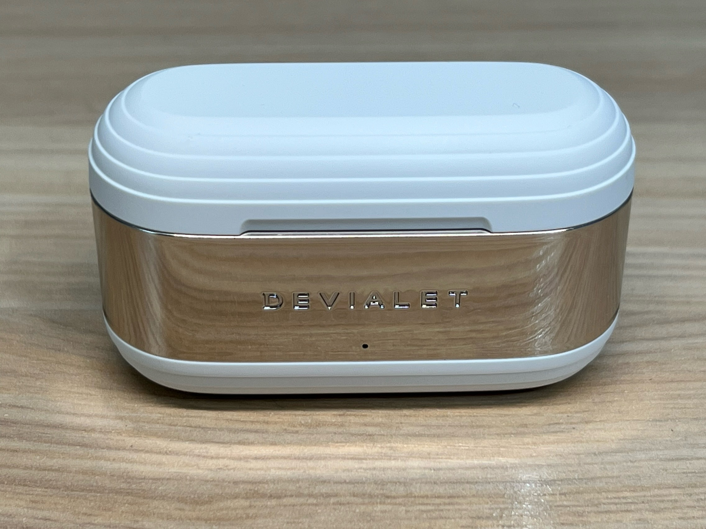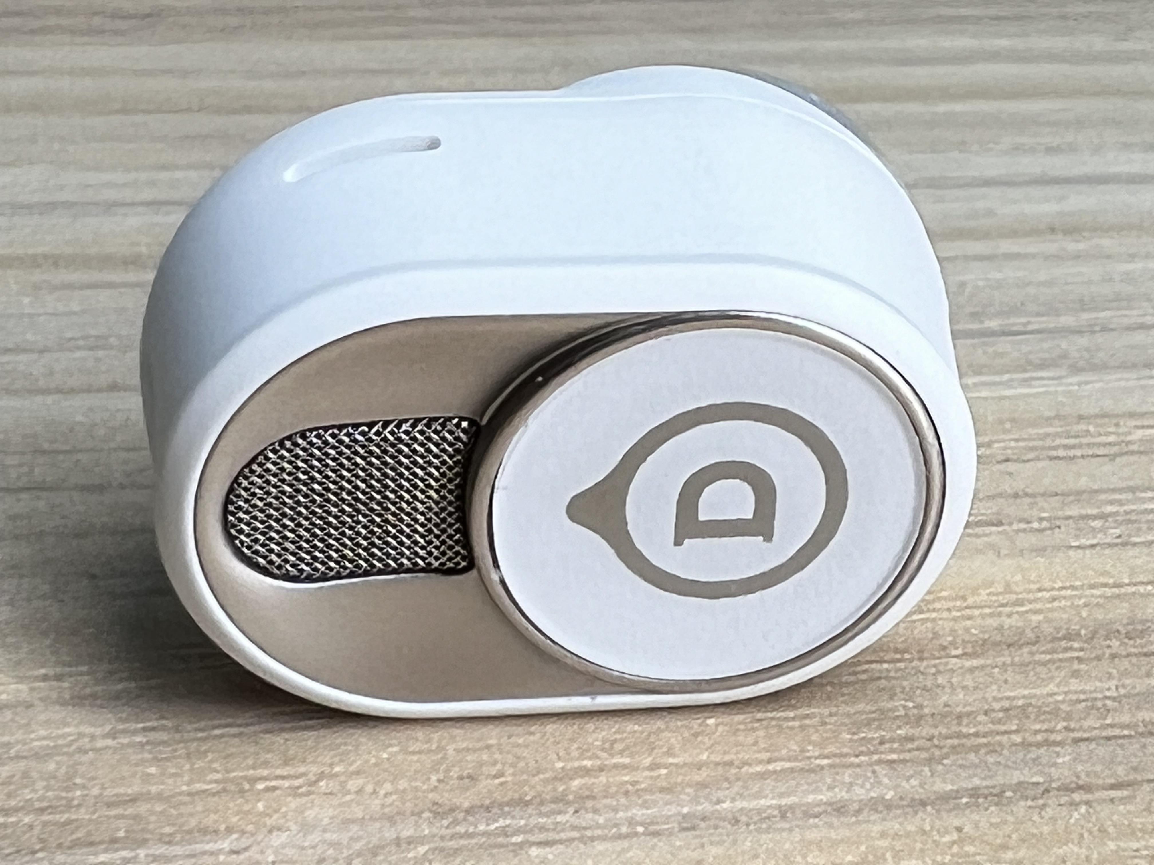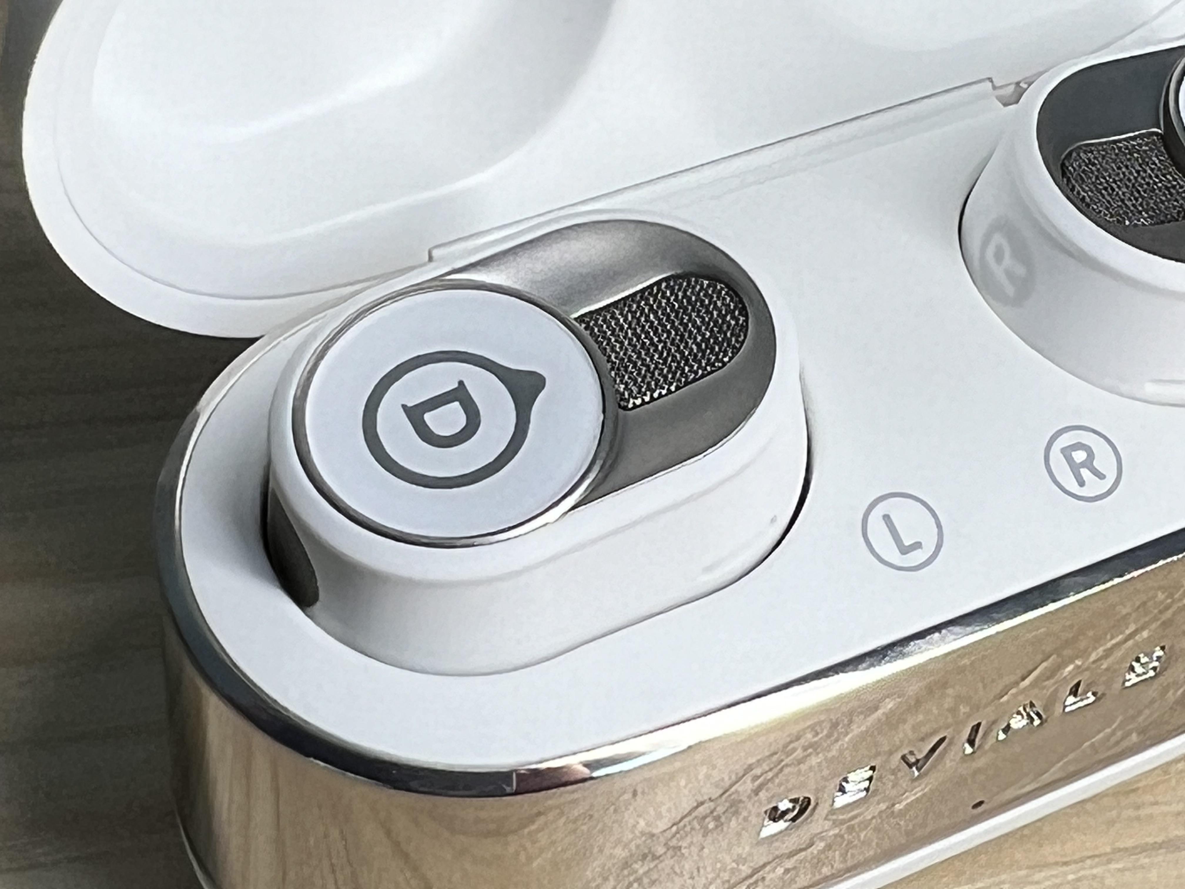 이어버즈에는 드비알레의 로고와 함께 역시 금속성 도료가 발라져 있고, 커다란 크기의 그릴이 장착되어 있습니다. 사진 상으로 보면 동글고 두툼해서 흡사 보스의 QC 이어버즈2와 비슷하게 보이지만 실제 크기는 그리 크지 않습니다.