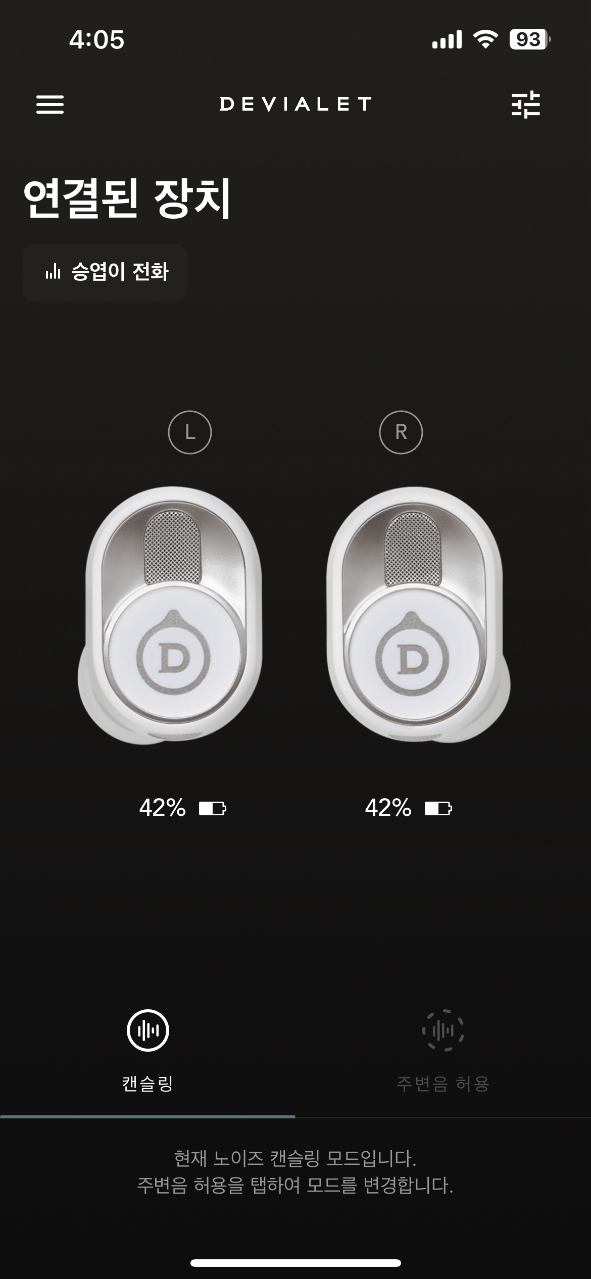 드비알레 앱을 설치하면 자동으로 제미니2의 기기를 찾습니다. 설정의 블루투스 항목에는 'Devialet Gemini II'로 뜹니다. 제품을 연결하자마자 앱에서 업데이트를 하라고 하네요. 업데이트는 이어버즈와 본체의 펌웨어 별로 업데이트가 되며 다른 기기에 비해서 비교적 자주 업데이트가 되고 있습니다. 좋게 보면 제품 지원이 좋은 것이고, 나쁘게 보면 제품의 완성도가 떨어지는 것이겠지요. 저는 지원이 좋은 편이라고 생각하고 싶습니다. 펌웨어 업데이트는 버그 수정 뿐만 아니라 기능도 향상되는 경우가 많기 때문입니다. 실제로 업데이트 내용을 보면 자잘한 호환성 버그 수정에 더해 본체의 이어버즈 감지 기능 향상, 이어버즈 배터리 소진 시 셧다운 개선, 스태바이 세팅 개선, 미세 조정 가능한 사운드 렌더링, 투명도(주변소리 듣기 기능) 향상 등의 기능적인 향상도 이루어졌습니다.