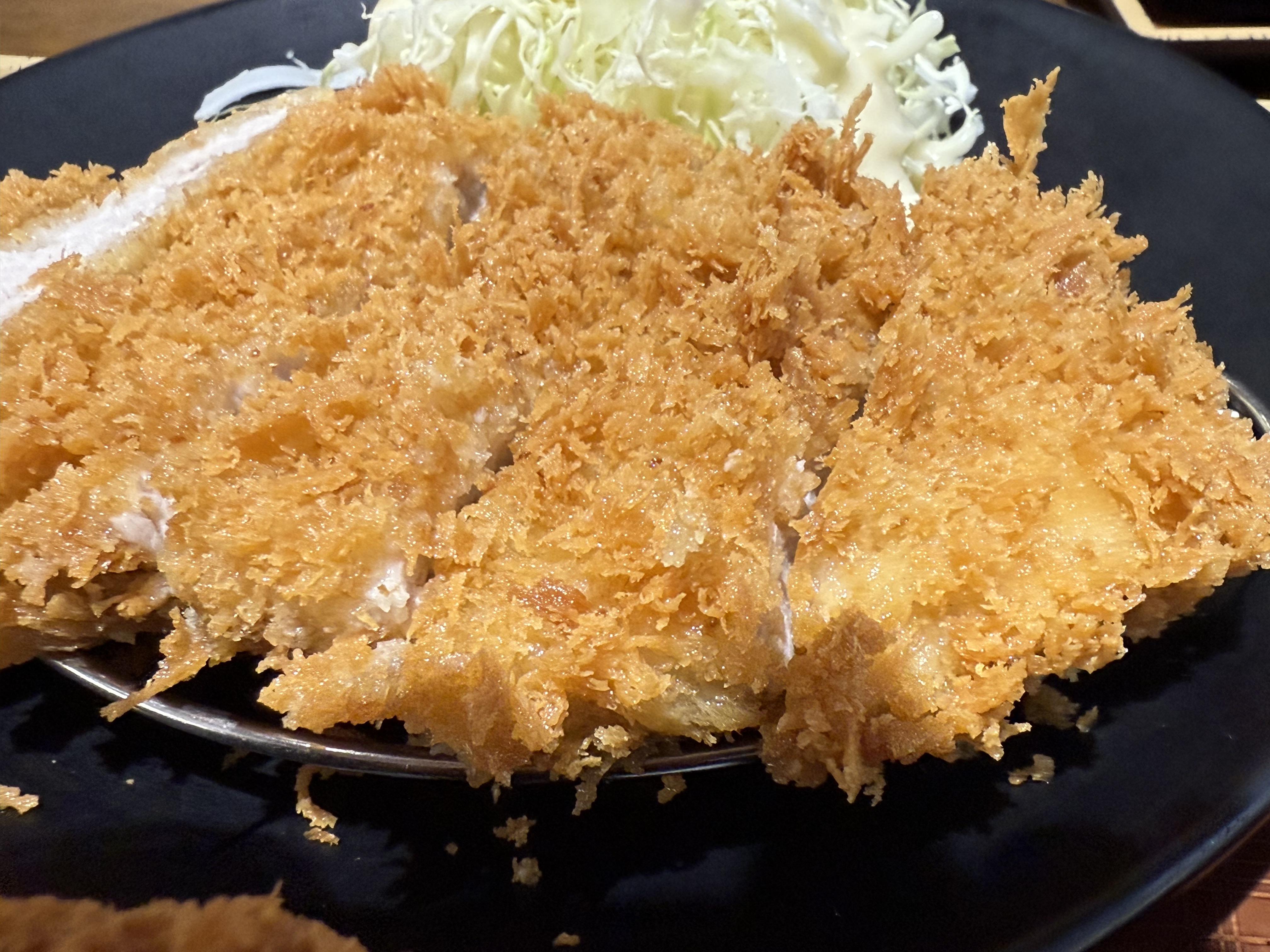 사진에서는 조명이 많이 밝지 않아 충분히 그 기름기가 다 담기지는 않았는데 한 조각 입에 물고 씹으면 바삭한 튀김옷과 고기의 씹는 맛이 아닌 바삭한 튀김옷과 함께 느끼한 기름맛이 확 올라왔습니다. 돈가스를 씹는 내내 바삭한 튀김옷 안에 숨겨진 기름이 쭉쭉 배어 나와서 입안이 기름 코팅이 되는 느낌이었습니다.