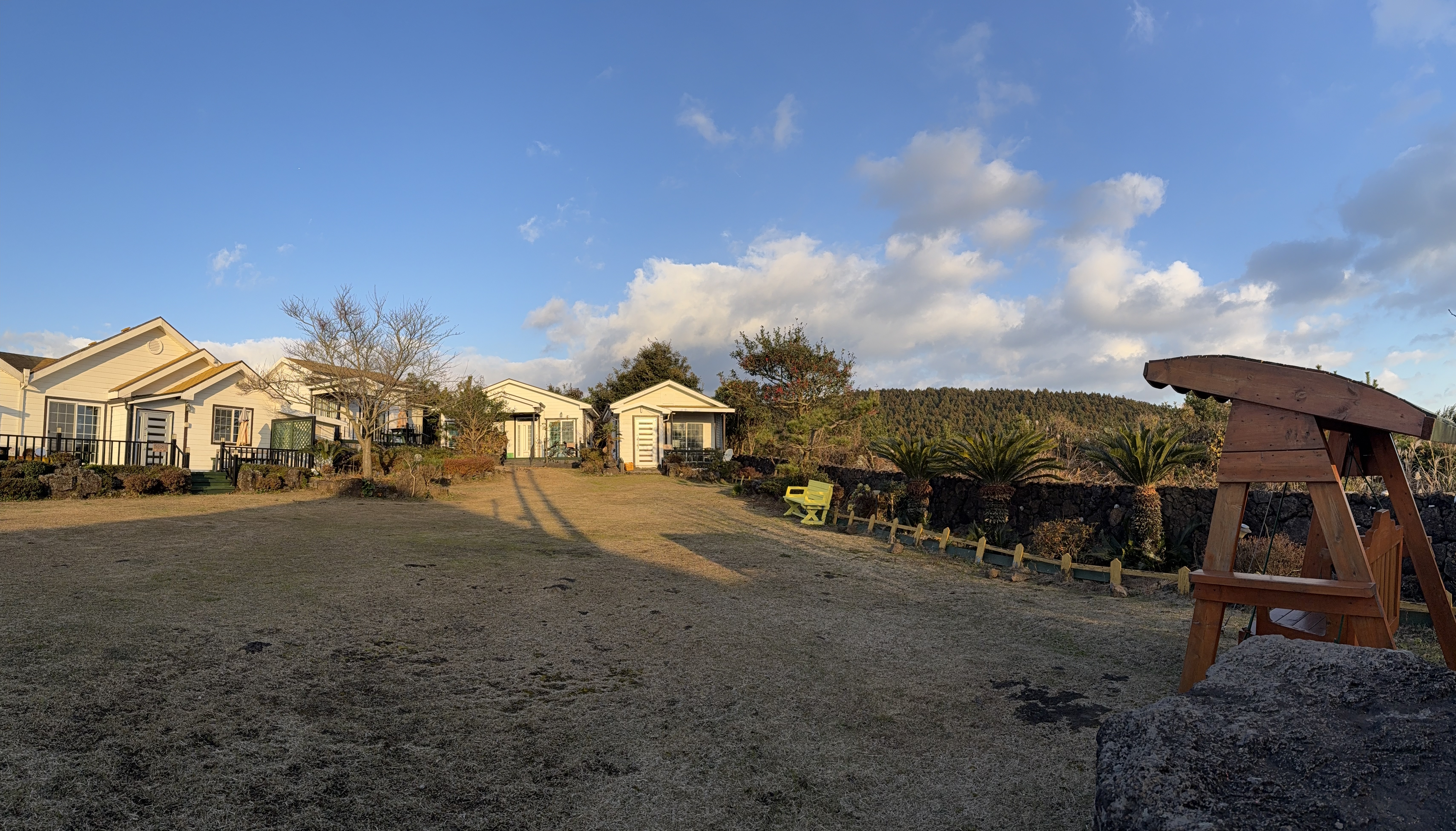 펜션을 알아 본 기준은 매우 단순했습니다. 3박 4일의 여행기간 동안 편하게 쉴 수 있어야 했고 그러기 위해서는 관광지 근처보다는 조금은 한적한 곳이 낫겠다 싶었습니다. 물론 함께 여행하고 있는 강아지도 머물 수 있어야 했습니다. 그러면서도 가격은 비싸지 않아야 했죠. 후보군은 꽤 많았습니다만, 성산일출봉에서의 일출과 섭지코지에서의 일몰을 계획하고 있었기 때문에 두 곳과 멀지 않은 곳에서 결정했습니다.