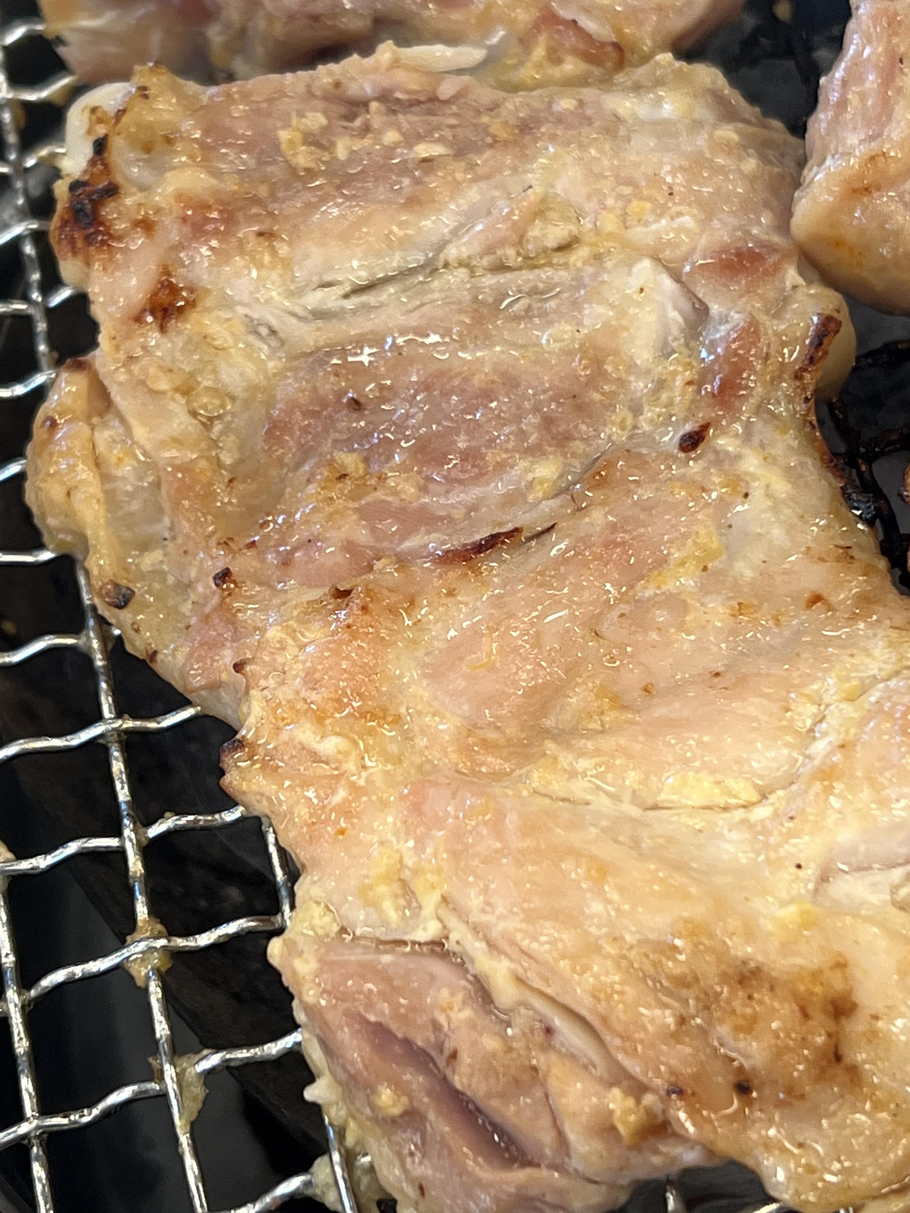 껍질에서 흘러 나온 닭기름으로 인해 껍질은 바삭하게 튀겨지듯 구워지고, 그 안에 숨은 닭다리 살은 완전 보들보들한 식감으로 입에서 사르르 녹습니다.