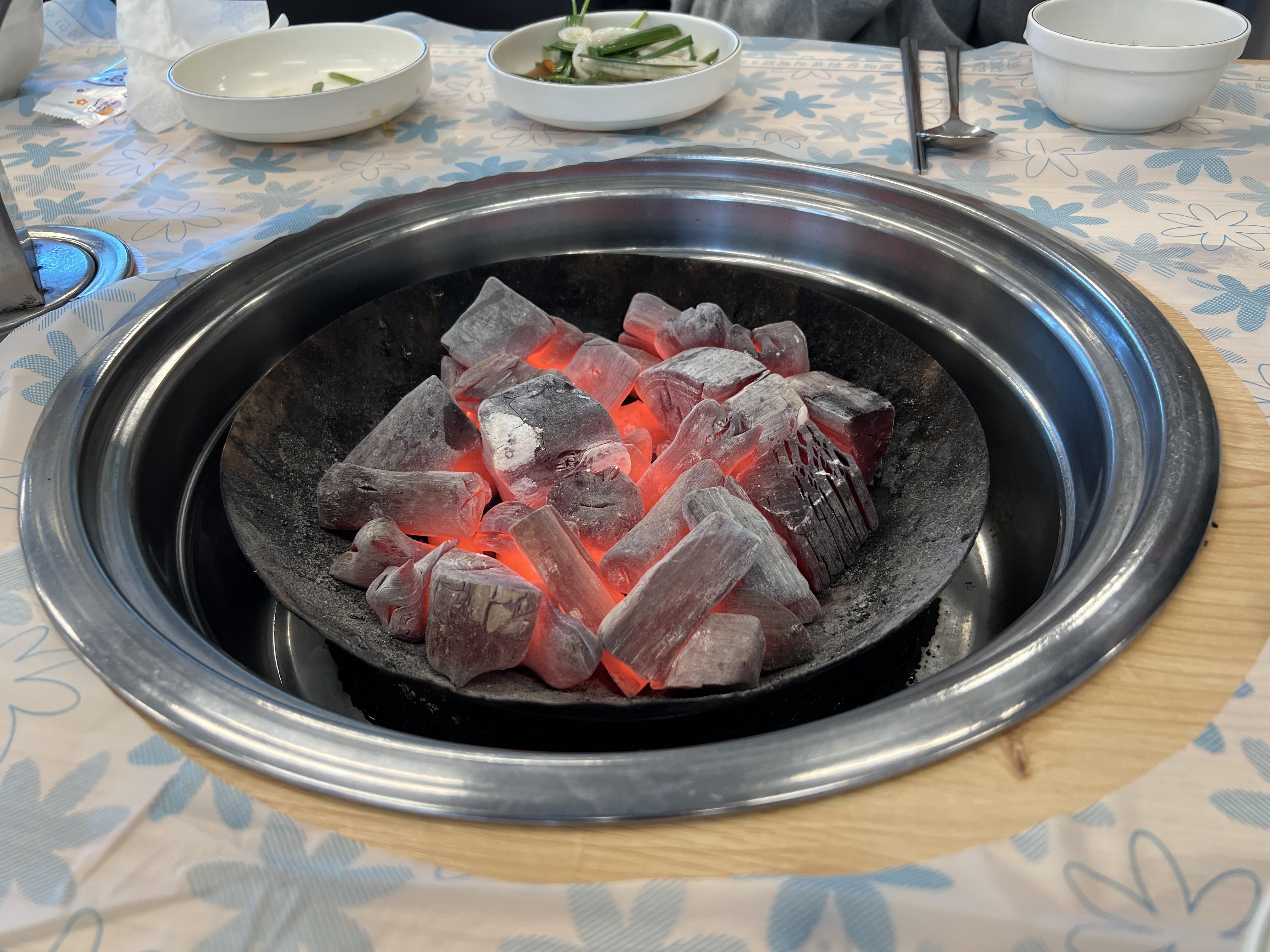 < 숯불에 구워 먹습니다 >