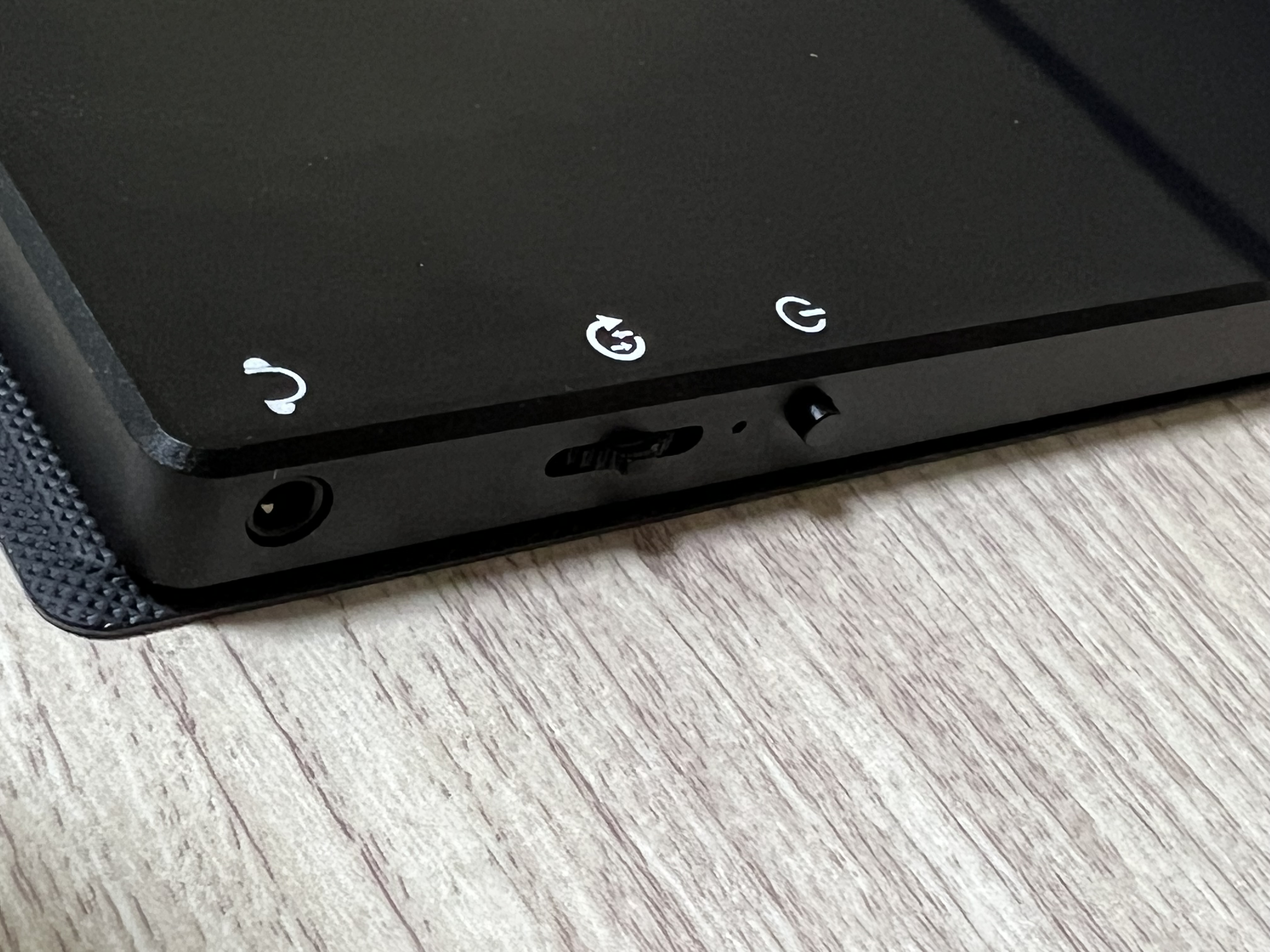 모니터 오른쪽에는 mini HDMI, USB2, USB1 단자(위에서부터)가 있습니다. 신호입력은 어떤 걸로 해도 무방합니다. 다만 OSD에서 입력 신호를 선택해 줘야 합니다. USB 입력 시에는 별도의 전원이 필요가 없습니다만, HDMI를 선택하게 되면 반드시 어댑터나 노트북 등에서 USB 입력을 통해 별도 전원을 연결해 줘야 합니다. 아, 물론 USB로 연결했을 때 전원을 연결해 주지 않으면 화면의 밝기가 70~80%로 낮아집니다.