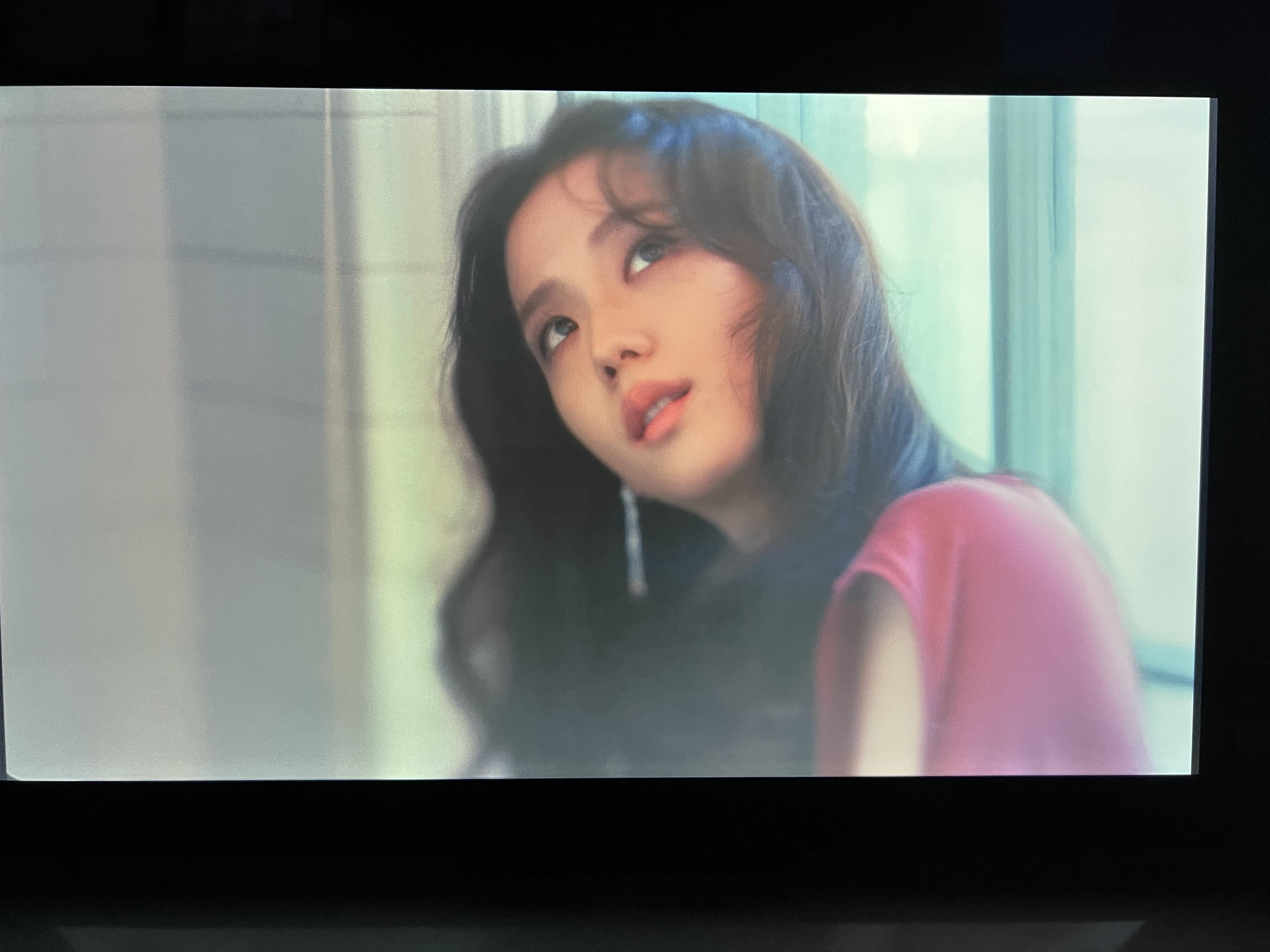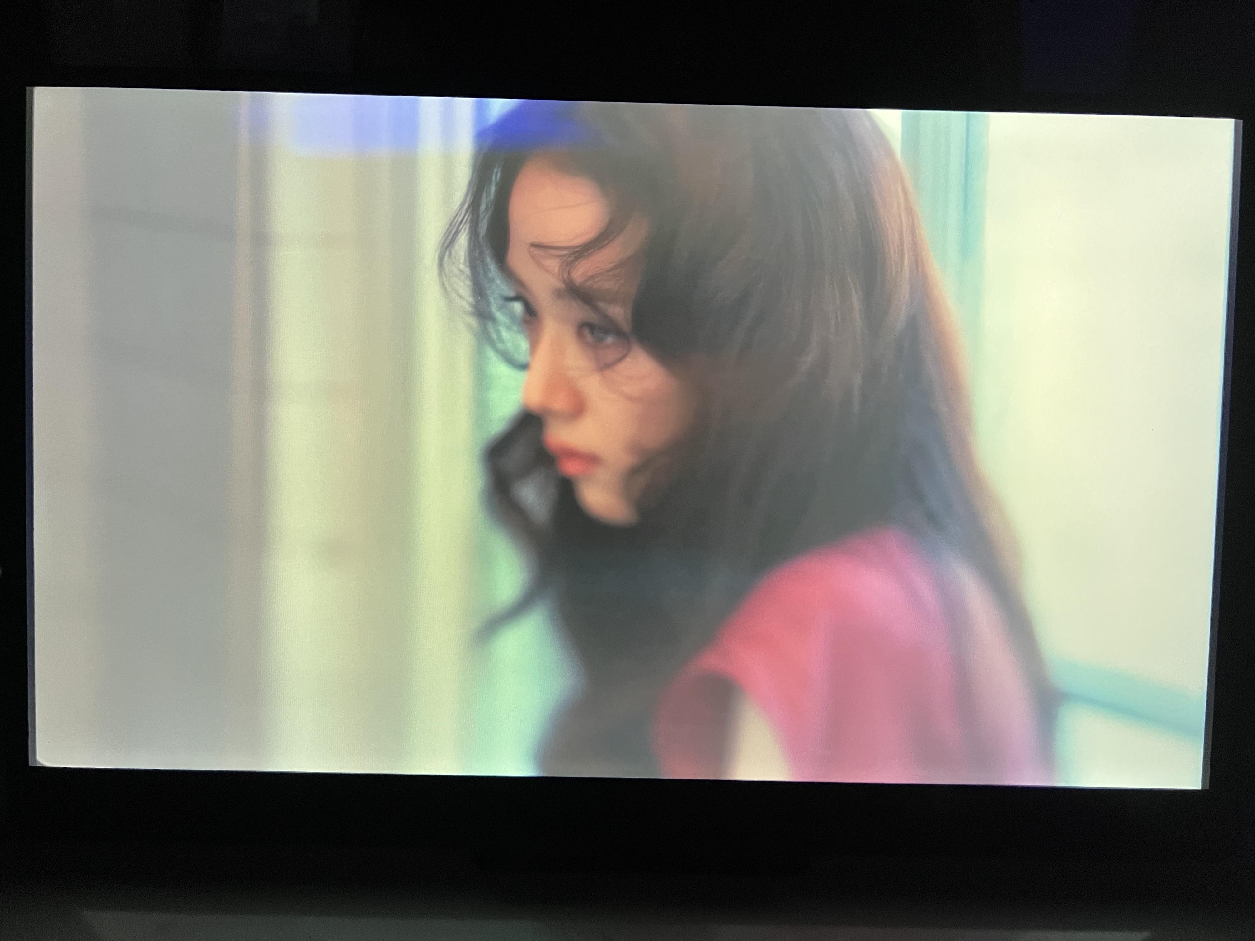 그런데 영상을 보다 보니까 언뜻 색상의 변화가 눈에 띕니다. 시선을 가운데 두면 가운데는 제 색상이 나오는데, 좌우는 미세하게 색상이 달라지는 것처럼 보이는 겁니다. 그래서 사진 몇 장을 찍어 봤습니다.