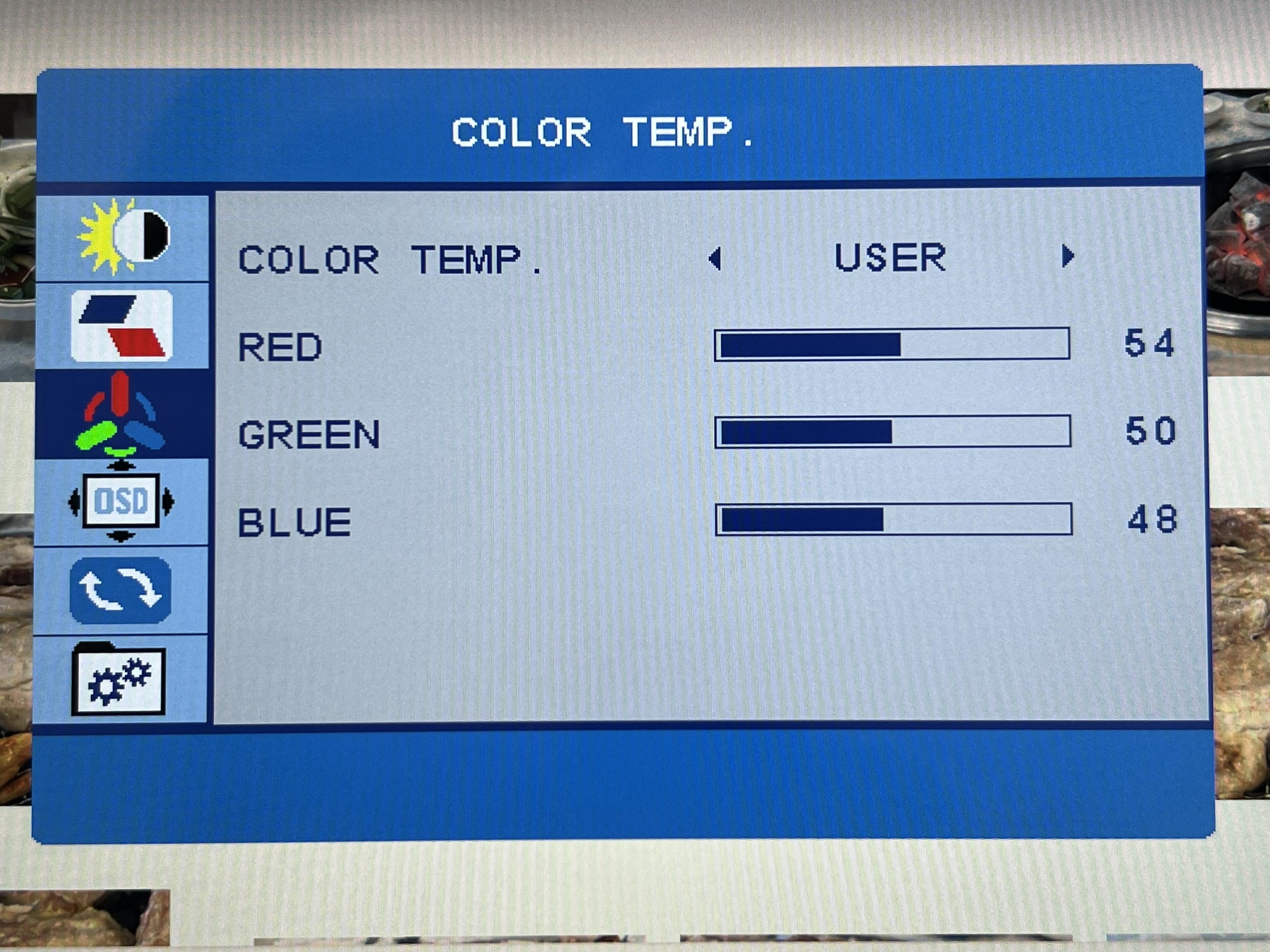 RGB의 세팅을 바꾸니 조금은 흰색이 흰색으로 보입니다. 근데 완벽한 흰색이 나오진 않더라고요. 푸른색을 낮추니 녹색이 두드러지고, 녹색을 낮추니 붉은색이 두드러집니다. 그래도 최대한 흰색에 가깝게 맞춰 봤는데요, 위쪽에 보이는 푸른색보다는 보기가 훨씬 자연스럽습니다.