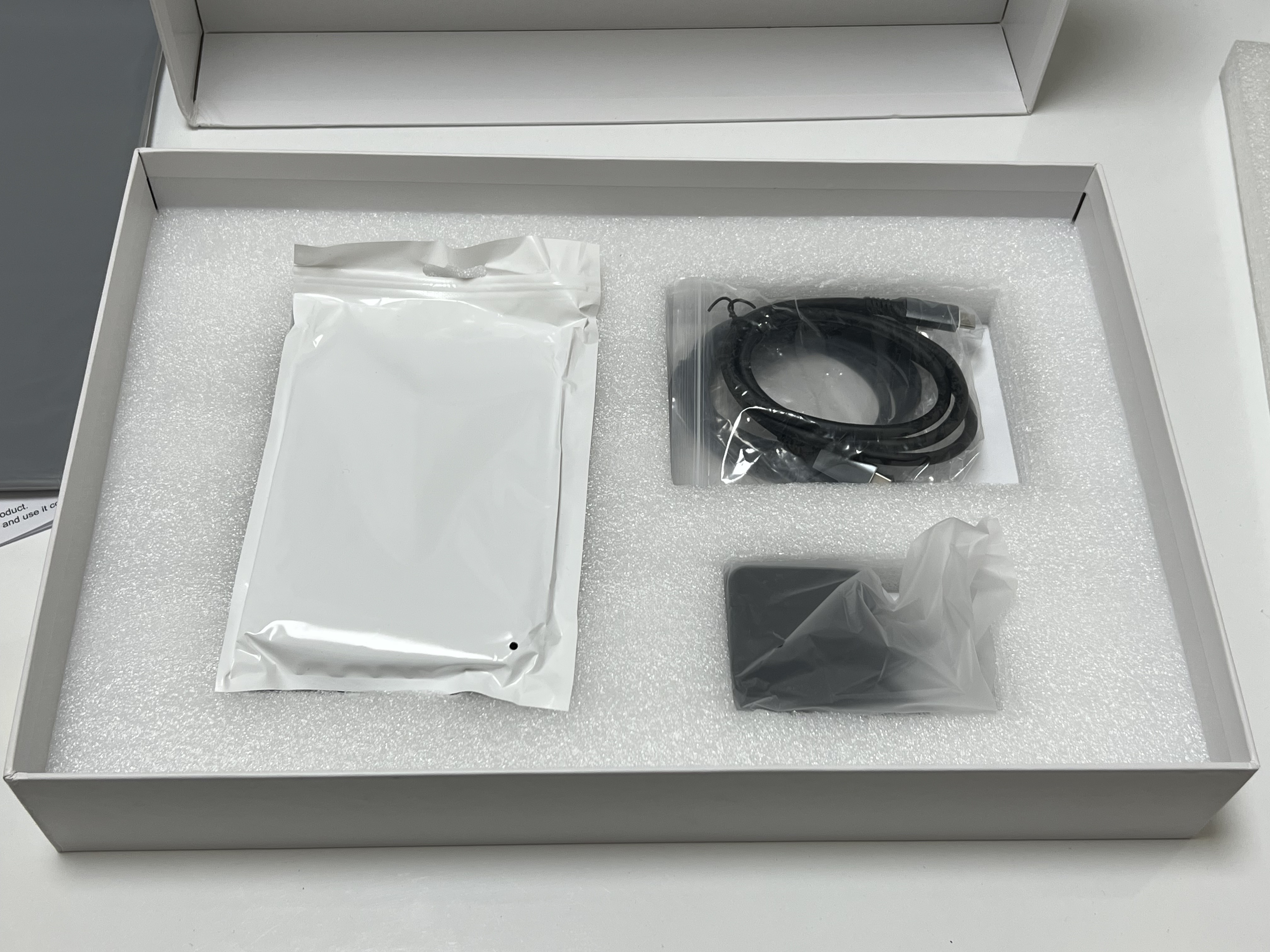 박스를 열면 마치 노트북을 꺼내는 것 같은 느낌이 들 만큼 포장을 신경써서 해 준 티가 납니다. 가장 위에 있는 스티로폼을 제거하면 역시 스티로폼 위에 휴대용 케이스에 들어 있는 모니터가 들어 있고, 모니터와 스티로폼을 빼내고 나면 휴대용 스탠드와 케이블, 어댑터가 들어 있습니다. 적어도 외부에서 엄청난 충격이 가해지지 않는 이상 파손에 대한 걱정은 하지 않아도 될 것 같습니다. 이런 포장에서 파손이 된다면 그건 운이 없어도 너무 없거나 택배를 몇 미터 위에서 패대기쳤다고밖에 생각할 수 없을 겁니다.