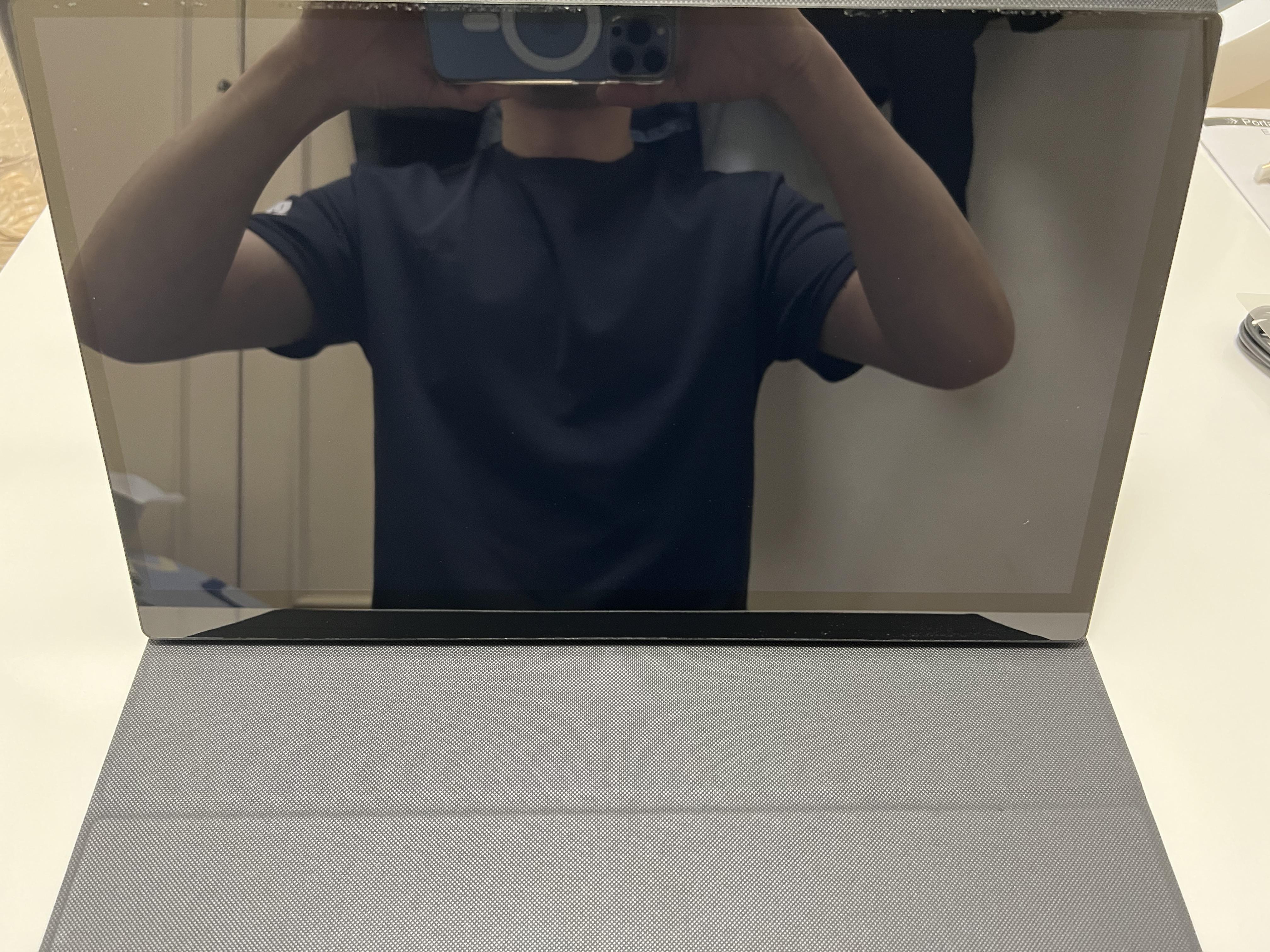 모니터는 터치 기능을 지원합니다. 그래서인지 글레어 패널이 됐습니다. 사실 터치 기능을 지원해도 안티 글레어 패널이 있긴 한데 장단점은 있습니다. 글레어 패널은 화질이 밝고 쨍한 느낌을 주지만 저것처럼 거울이 되기도 하며, 안티글레어 패널은 빛반사는 적어지지만 화질이 상대적으로 약간 어두워지며 민감하신 분들은 자글거리는 느낌을 받기도 합니다. 물론 저는 안티글레어 패널을 더 선호합니다. 그러나 어차피 맥북에어도 글레어 패널이기 때문에 거울을 양쪽으로 놓고 쓴다고 생각하며 그러려니~ 하고 있네요.