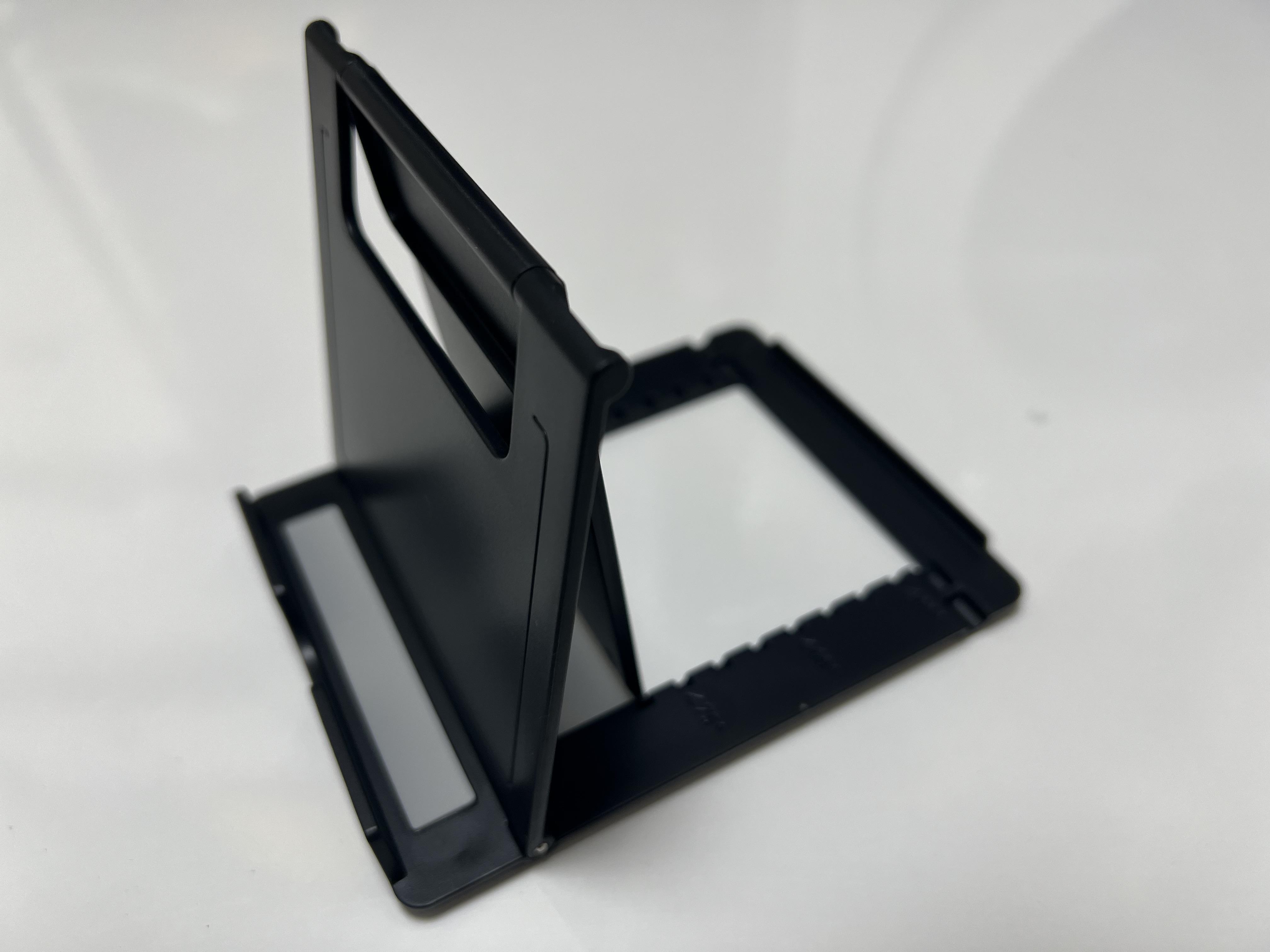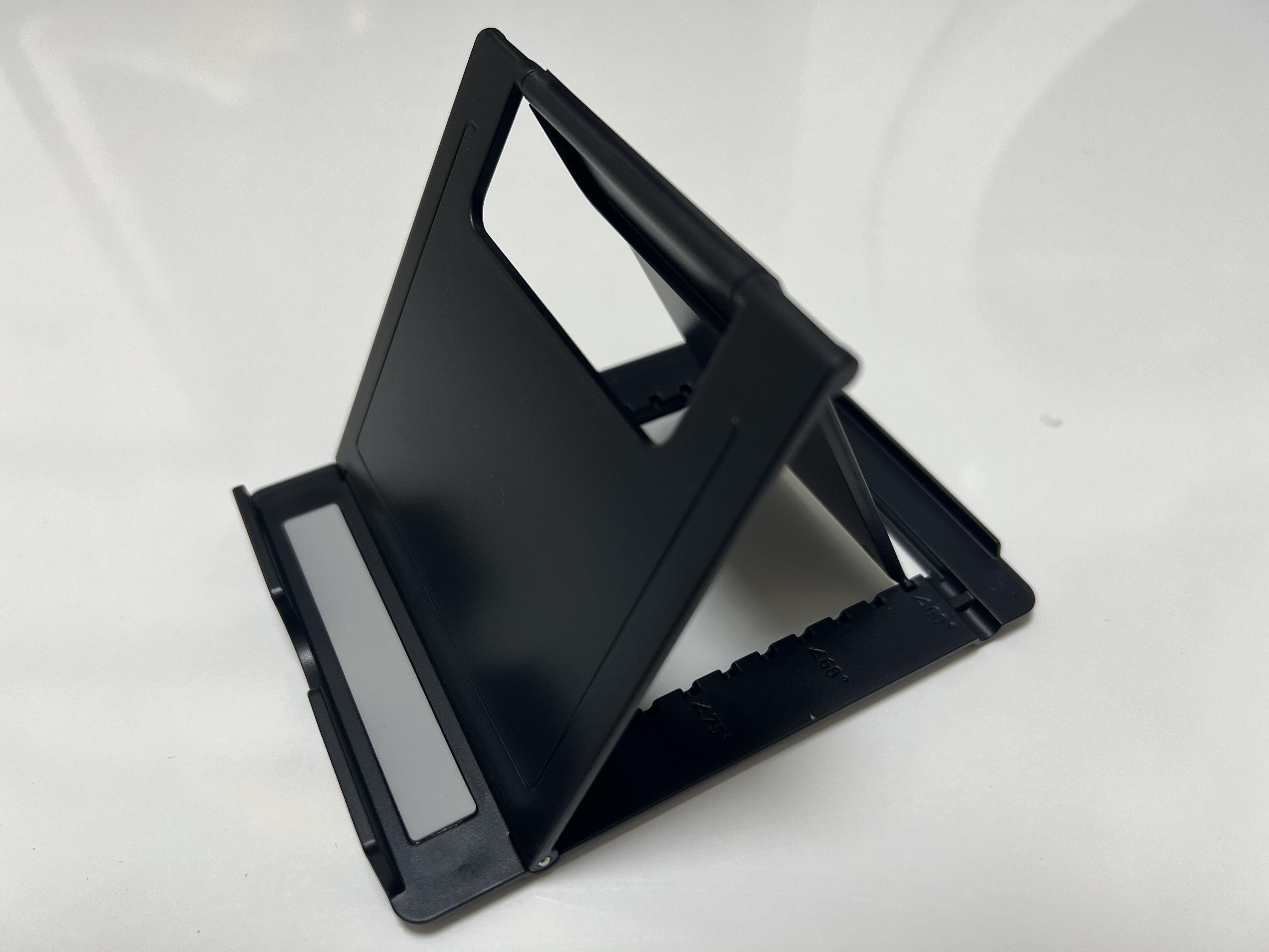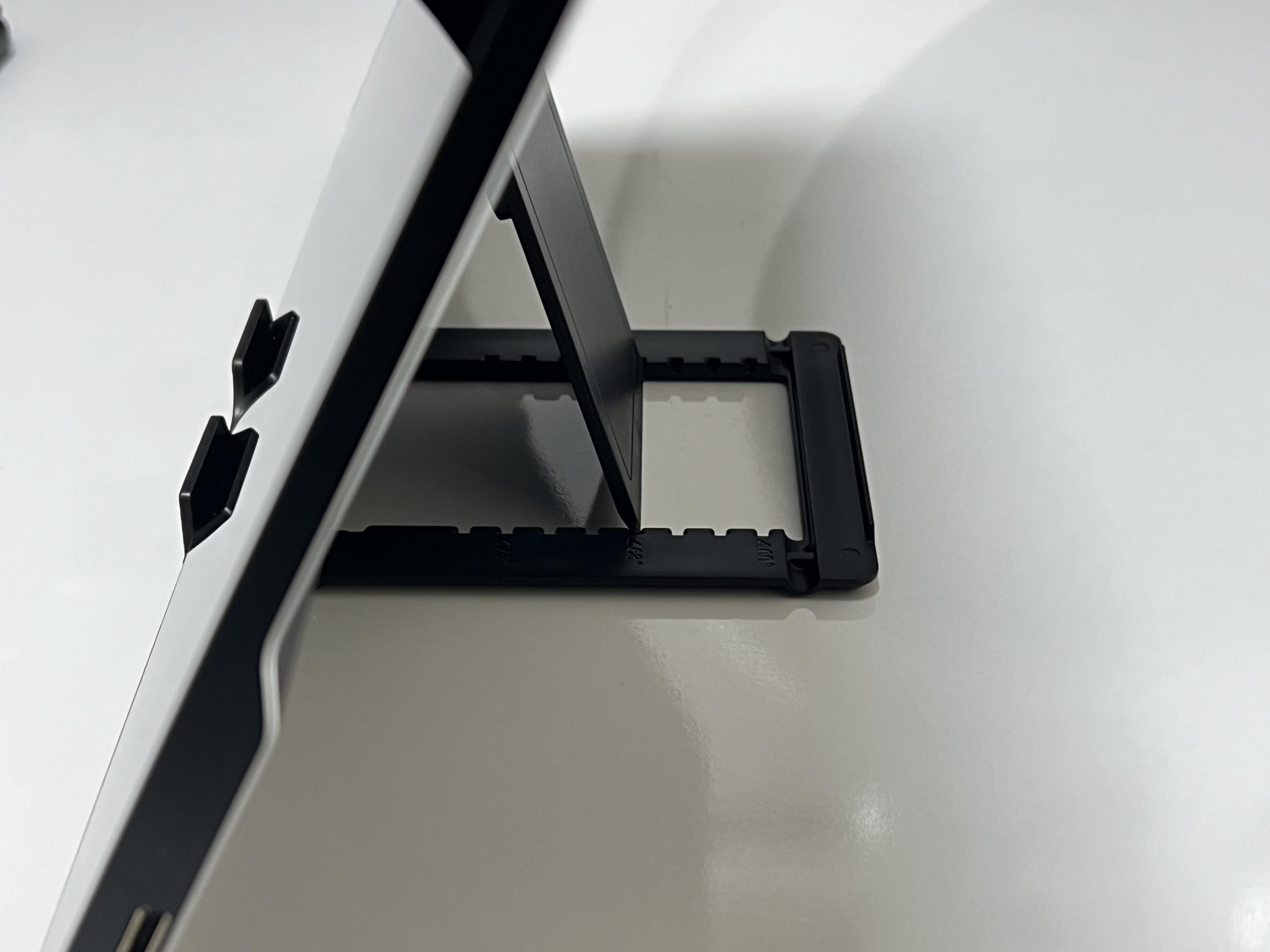사실 휴대용 케이스로도 간이 스탠드 목적으로 사용을 할 수는 있습니다. 그러나 지난 번 사용 때 모니터를 살짝만 건드려도 뒤로 자빠지는 등 사용에 불편함을 느껴 이번에는 아예 스탠드도 함께 구입을 했습니다. 그냥 플라스틱 쪼가리 같지만 이게 또 정말 괜찮습니다.