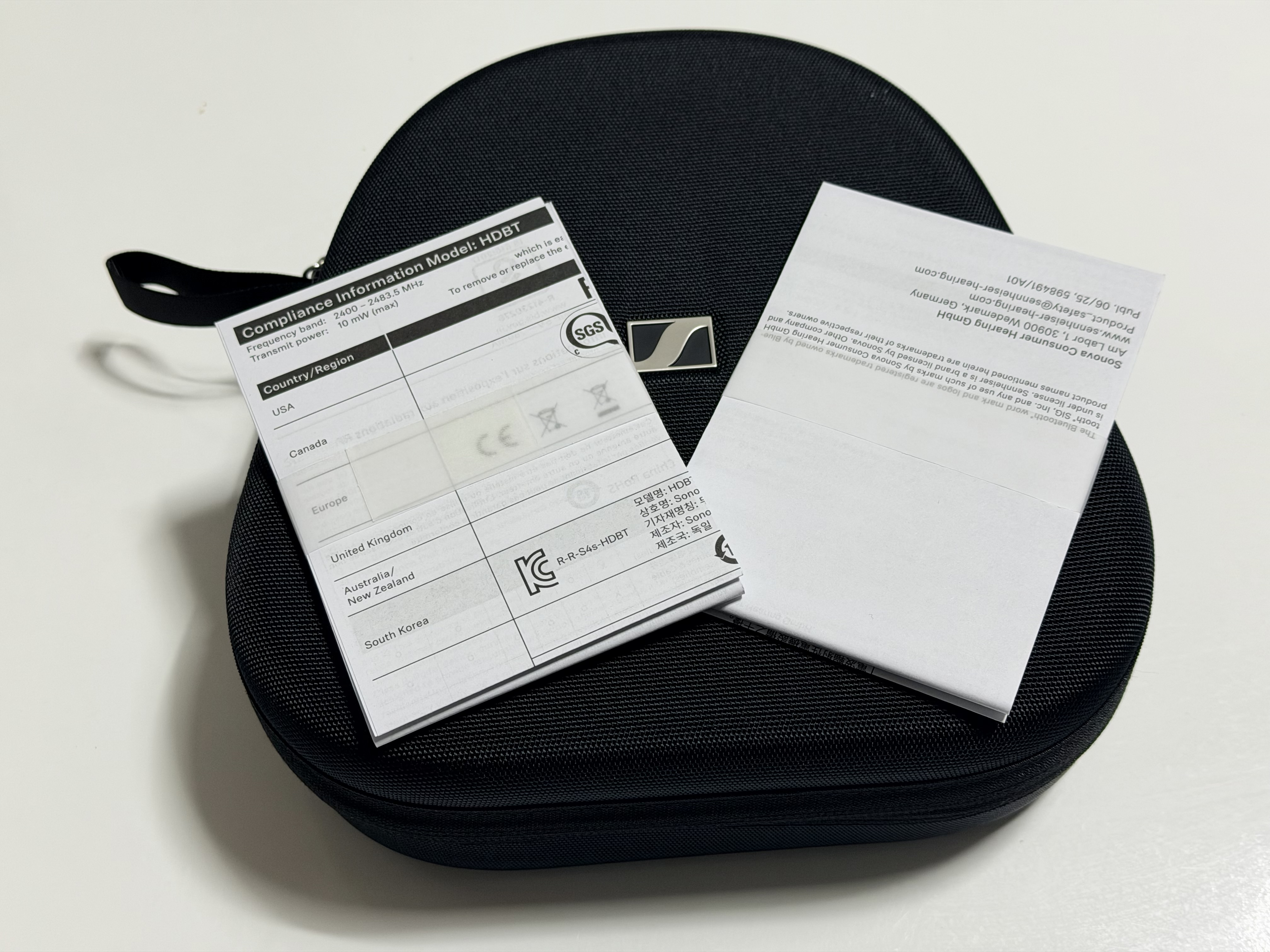 제품 상자는 전형적인 젠하이저입니다. 늘 그렇듯이 파란색 테두리에 제품 이미지가 떠억하니 있지요. 상자를 개봉하면 얇은 습자지에 둘러싸인 캐링 케이스가 있습니다. 캐링 케이스는 꽤 튼튼한 직물 재질로 만들어져서 제품을 가지고 다니는 목적으로 알맞아 보입니다. 색상은 검은색이고, 헤드폰 디자인과 매우 잘 어울립니다.