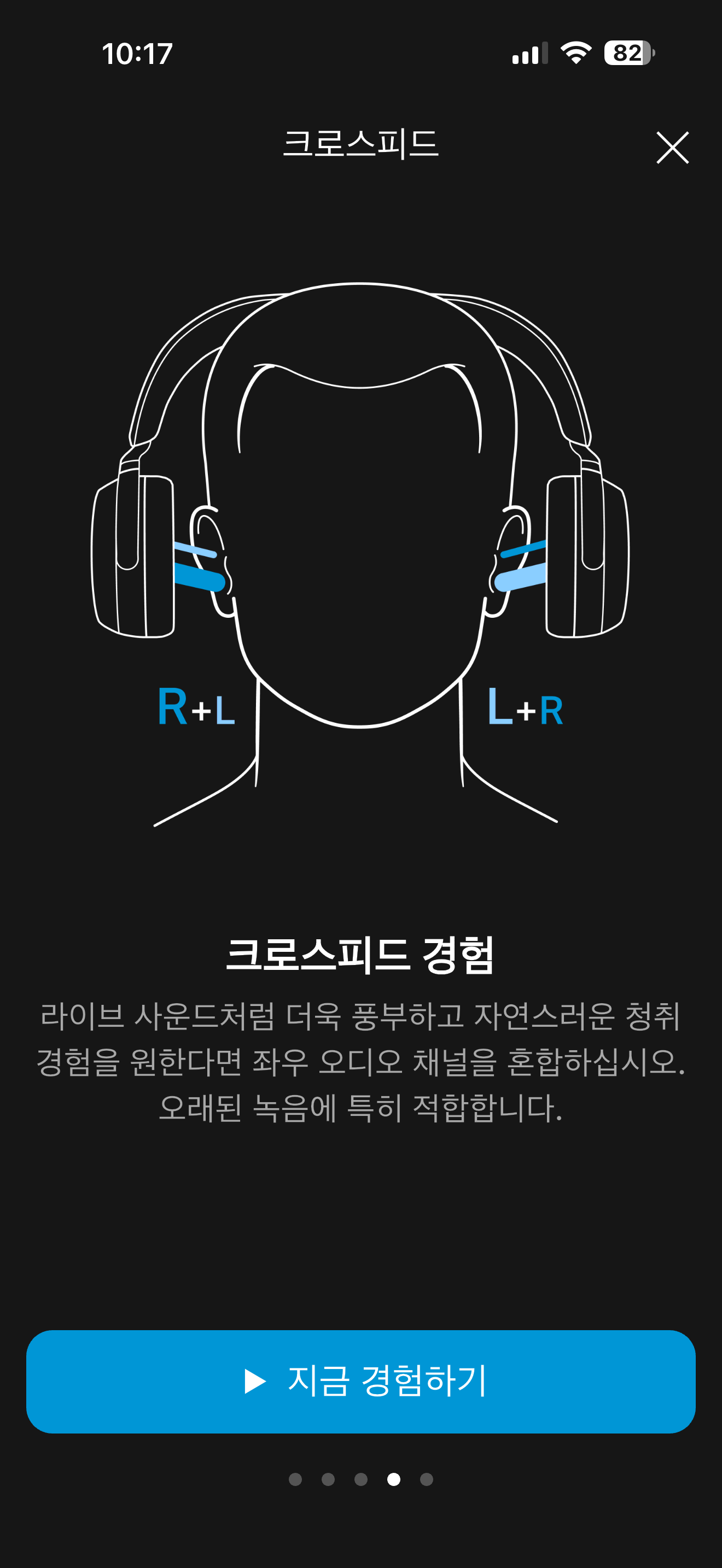 블루투스 무선 헤드폰으로서는 최초로 크로스피드를 지원하는 것도 특징입니다. 크로스피드는 일종의 스피커와 같은 효과를 주기 위한 기능입니다. 좌우가 완전히 독립적으로 동작하는 이어폰과 헤드폰은 처음 들으면 다소 인위적이기까지 할 만큼 왼쪽과 오른쪽이 극단적으로 소리가 납니다. 하지만 스피커는 오른쪽 스피커에서만 소리가 난다고 해서 우리 왼쪽 귀에는 소리가 안 들리지 않습니다. 다소 멀게는 들리지만 그래도 좌우 소리가 적당히 섞여서 자연스런 소리를 들려 주게 됩니다.