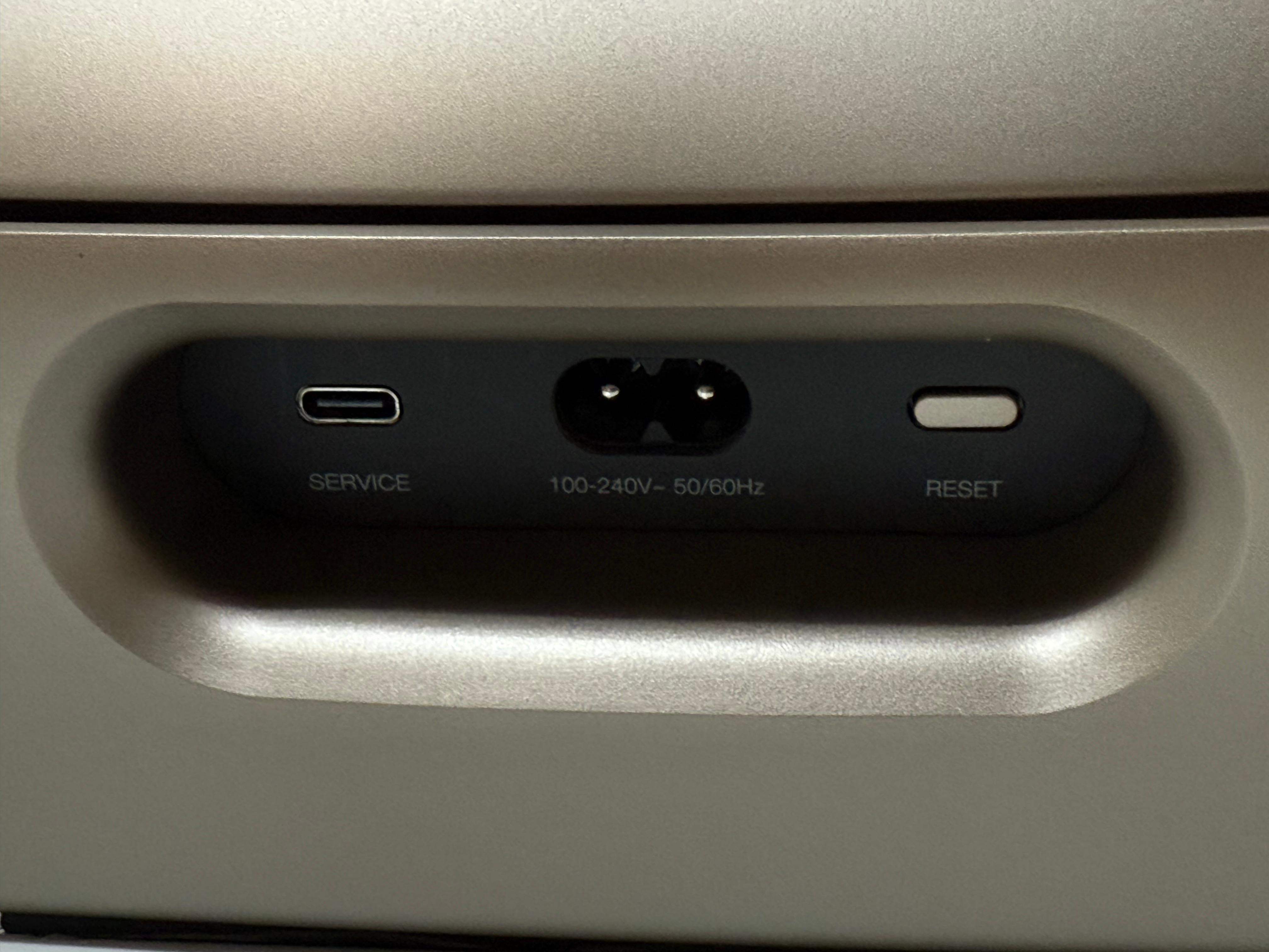 뒷면에는 우퍼 덕트로 보이는 구멍이 보이지만 자세히 들여다 보면 덕트가 아니라 전원 케이블 단자, 업그레이드를 위한 USB 단자, 리셋버튼이 존재할 뿐입니다. 별도의 덕트가 보이지는 않습니다만 덕트가 없다고 해도 이상하진 않습니다. 그런 제품들은 의외로 많으니까요.