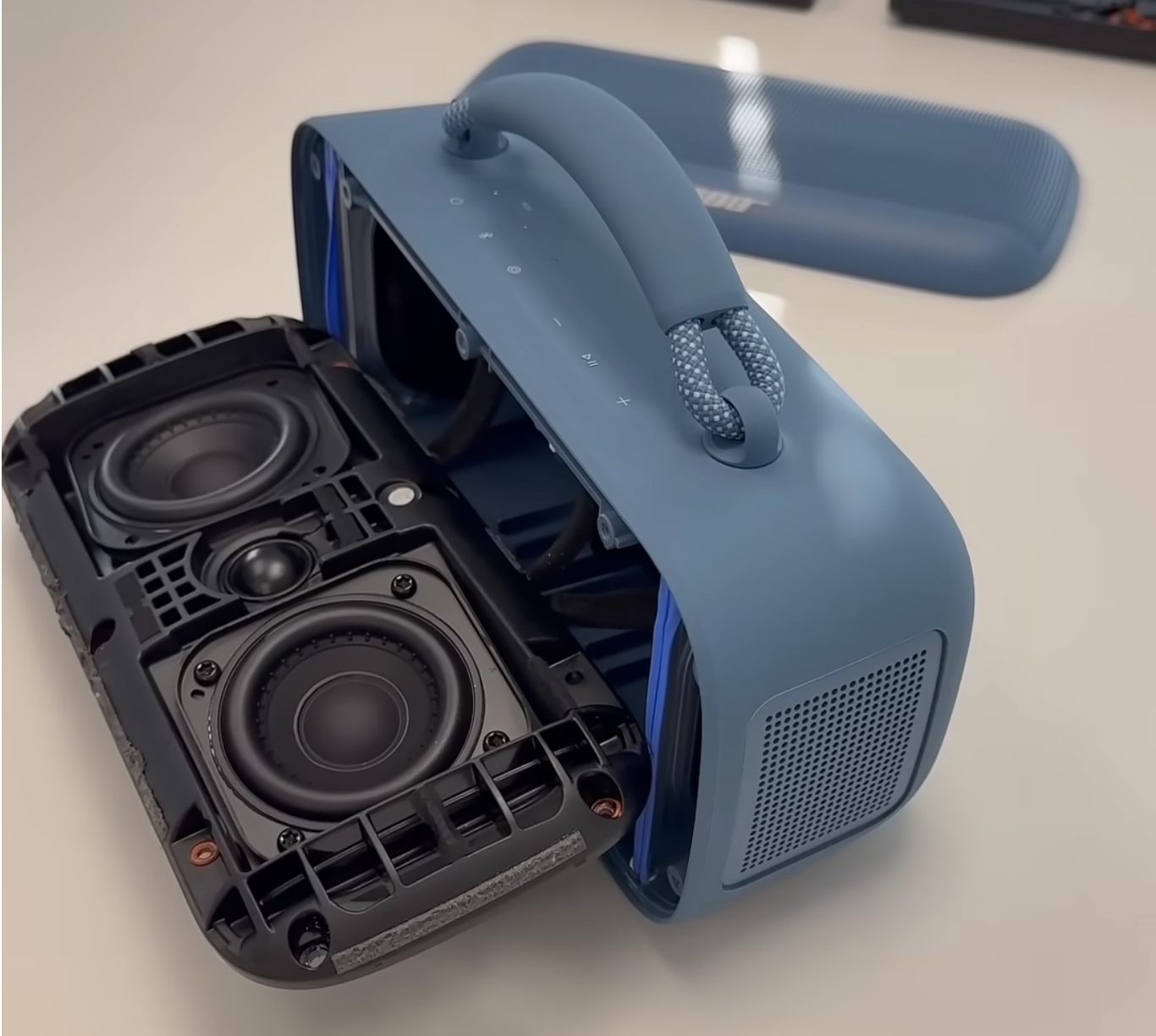 물론 우퍼 유닛이 2개라고 해서 저음만 스테레오로 나오는 건 아닙니다. 트위터가 보컬 영역 이상의 고영역을 담당할 뿐 블루투스 스피커의 우퍼는 저음과 중음까지 담당하는 드라이브 유닛에 더 가깝습니다. '저음의 보스' 답게 미드우퍼 유닛을 2개 넣고, 좌우로 패시브라디에이터도 2개를 넣어서 저음역을 더욱 부스팅해 줍니다.