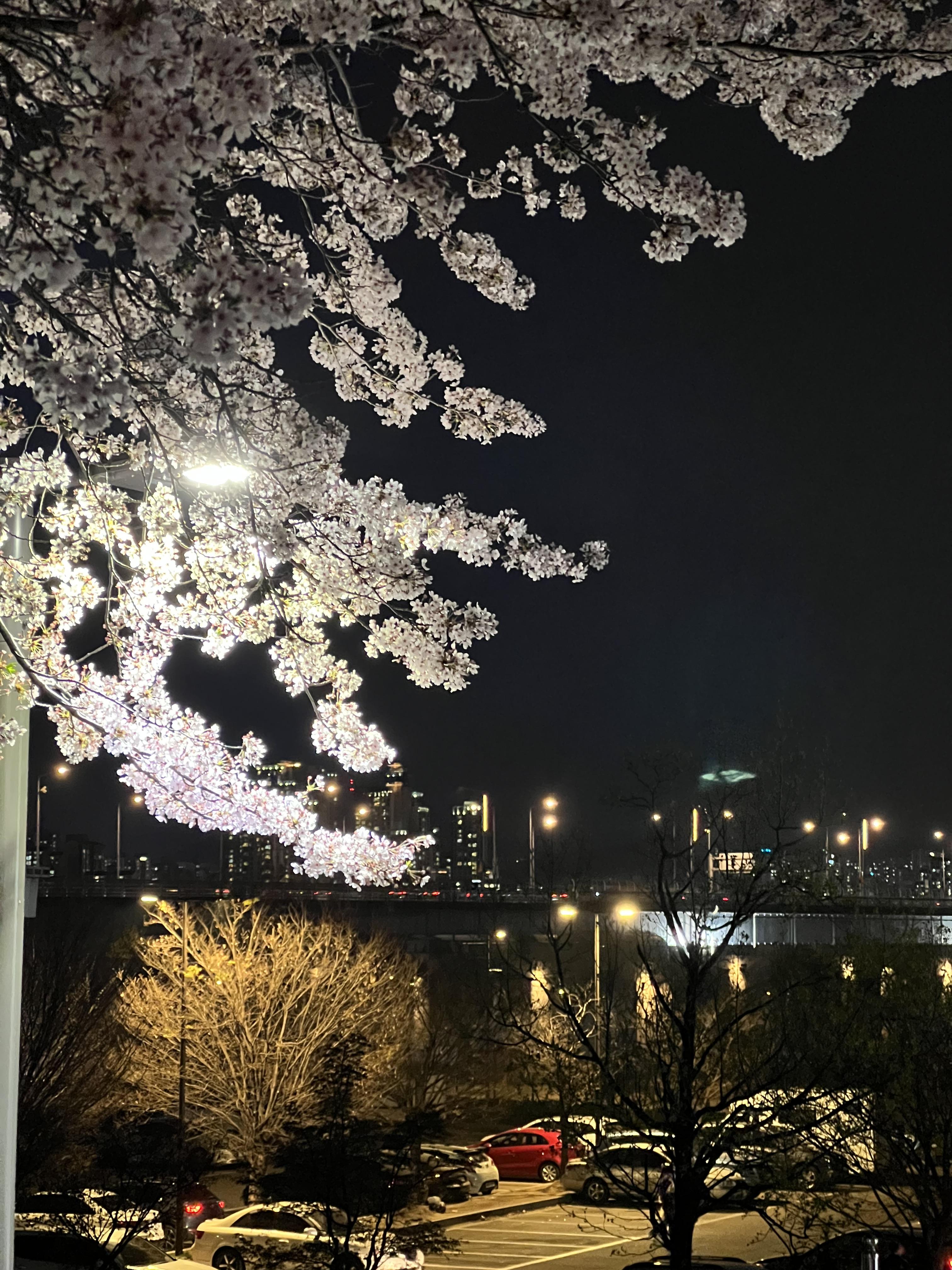 5호선 여의나루 역 인근은 벚꽃이 만개했으나 조명이 전혀 없어서 밤에는 예쁘지가 않습니다.
