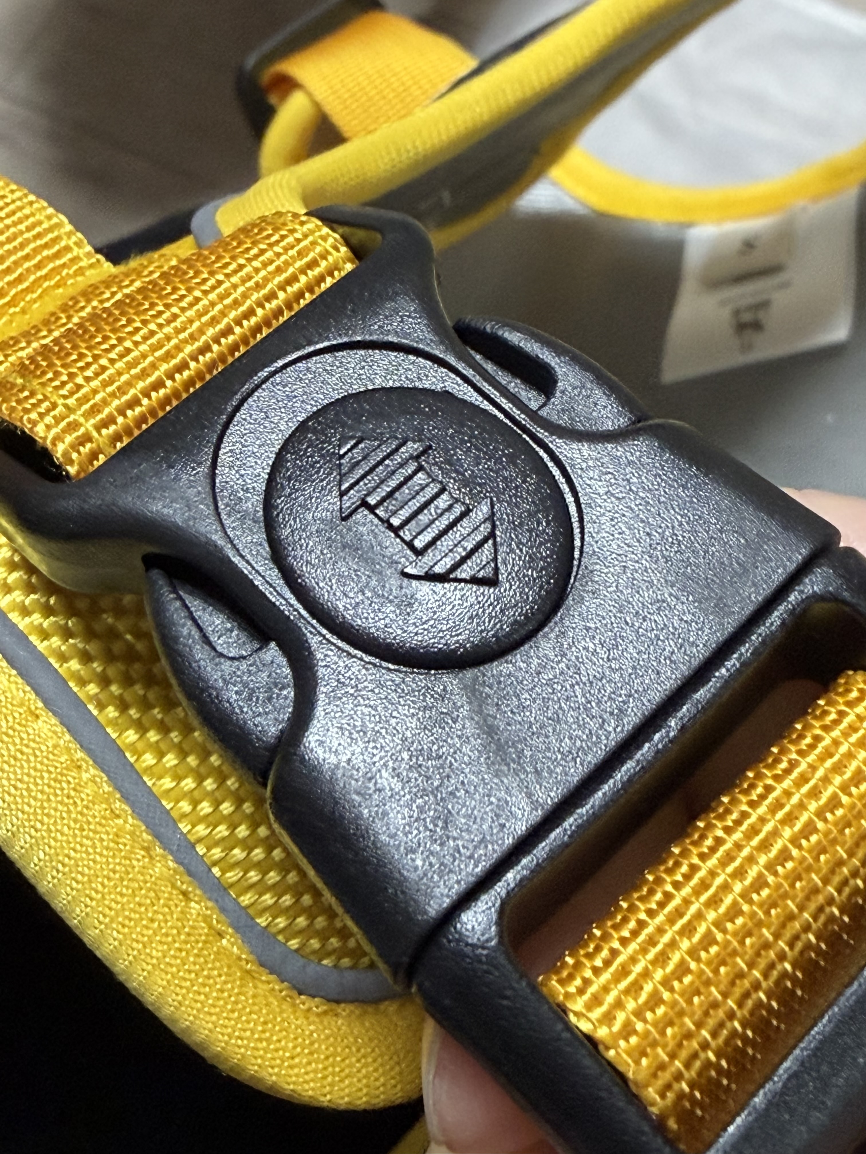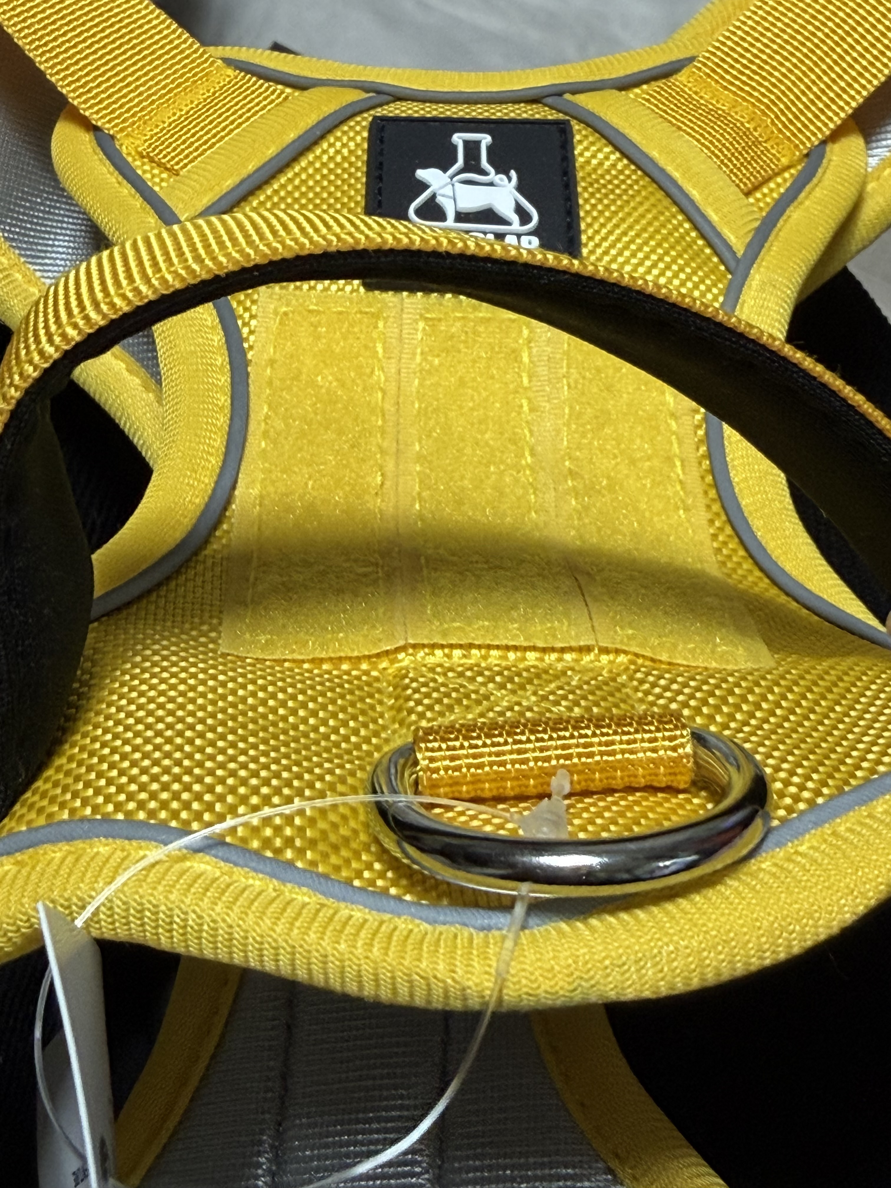 제품을 보다 자세히 들여다 보면 하네스 상단에 리드줄을 연결할 수 있는 고리가 매우 단단하게 연결되어 있습니다. 그리고 그 위로는 반려견을 번쩍 들 수 있을 손잡이가 있습니다. 손잡이로 강아지를 이동해서는 안 되겠지만 순간적으로 반려견끼리의 다툼이 있거나 할 때 제재를 하기 위해서는 필요할 것 같습니다.