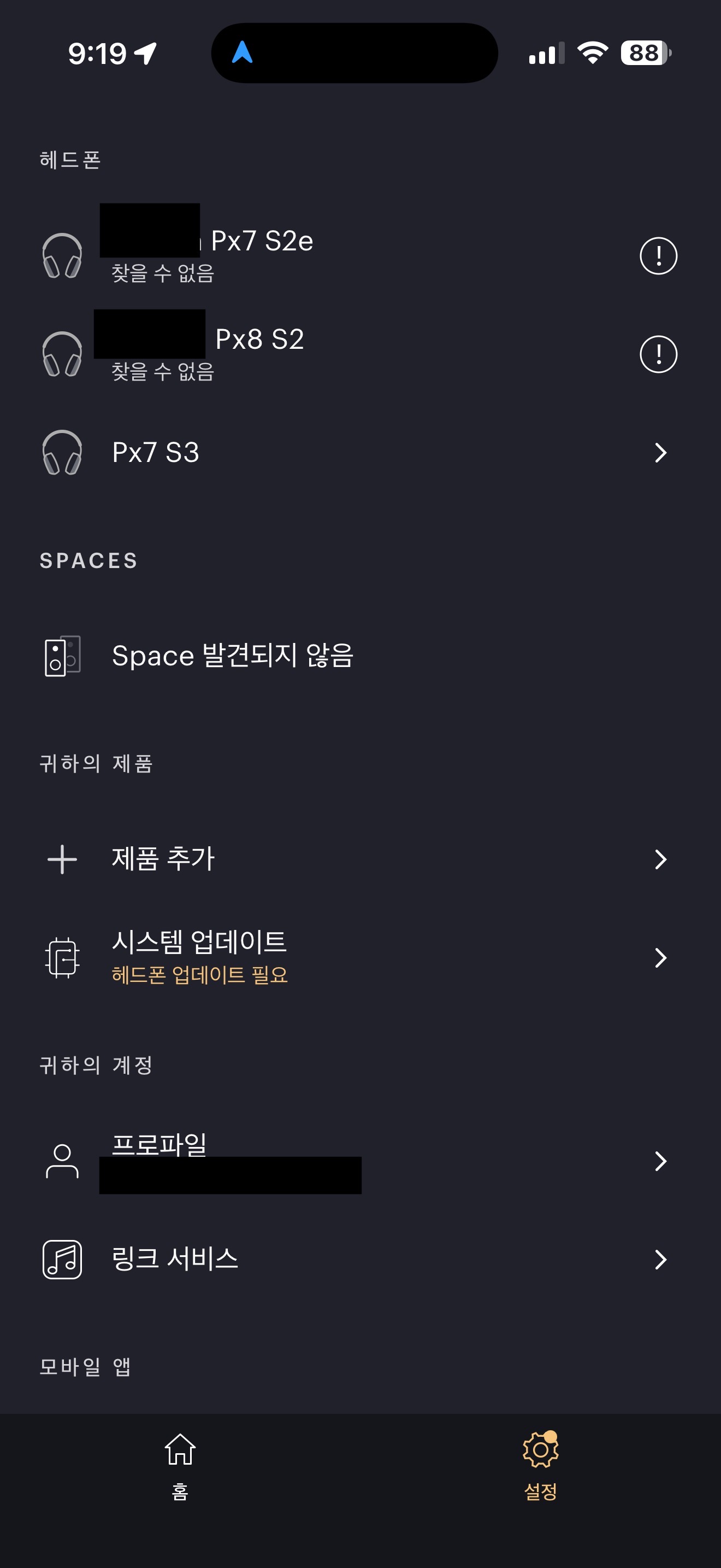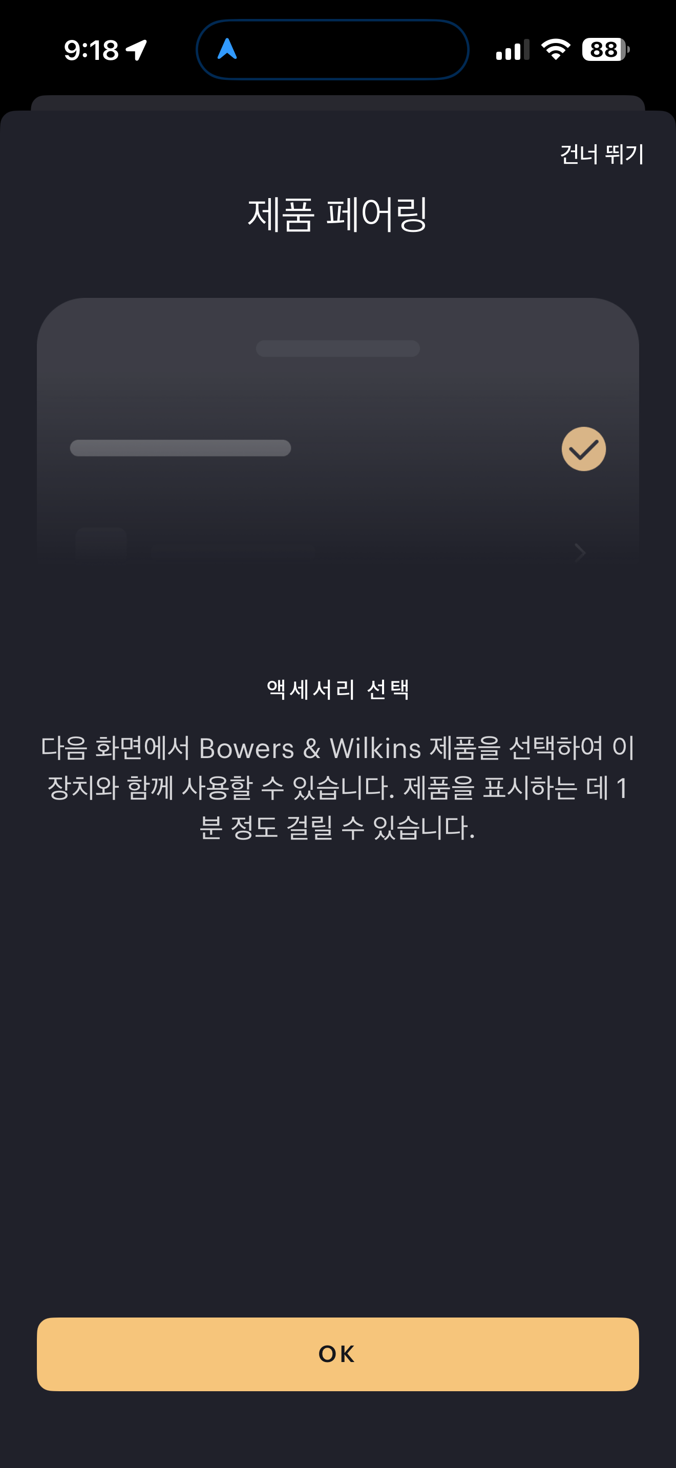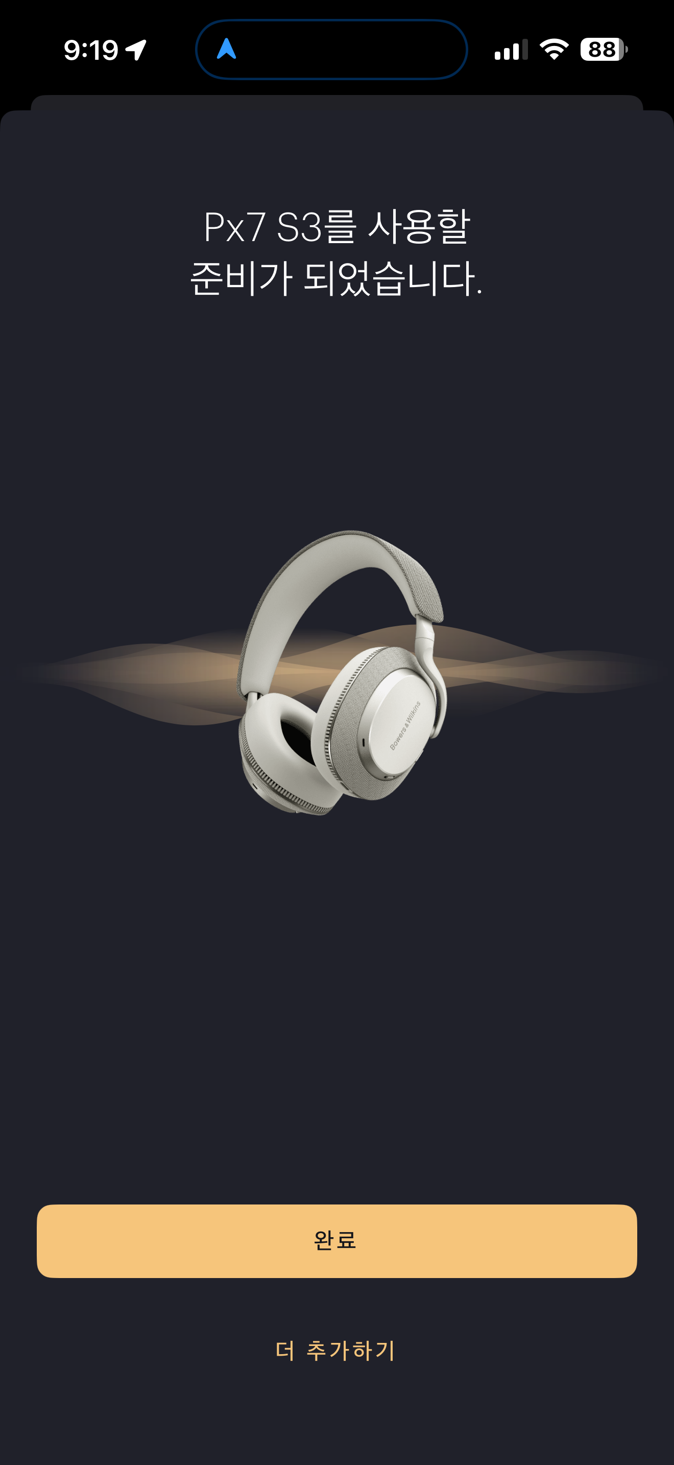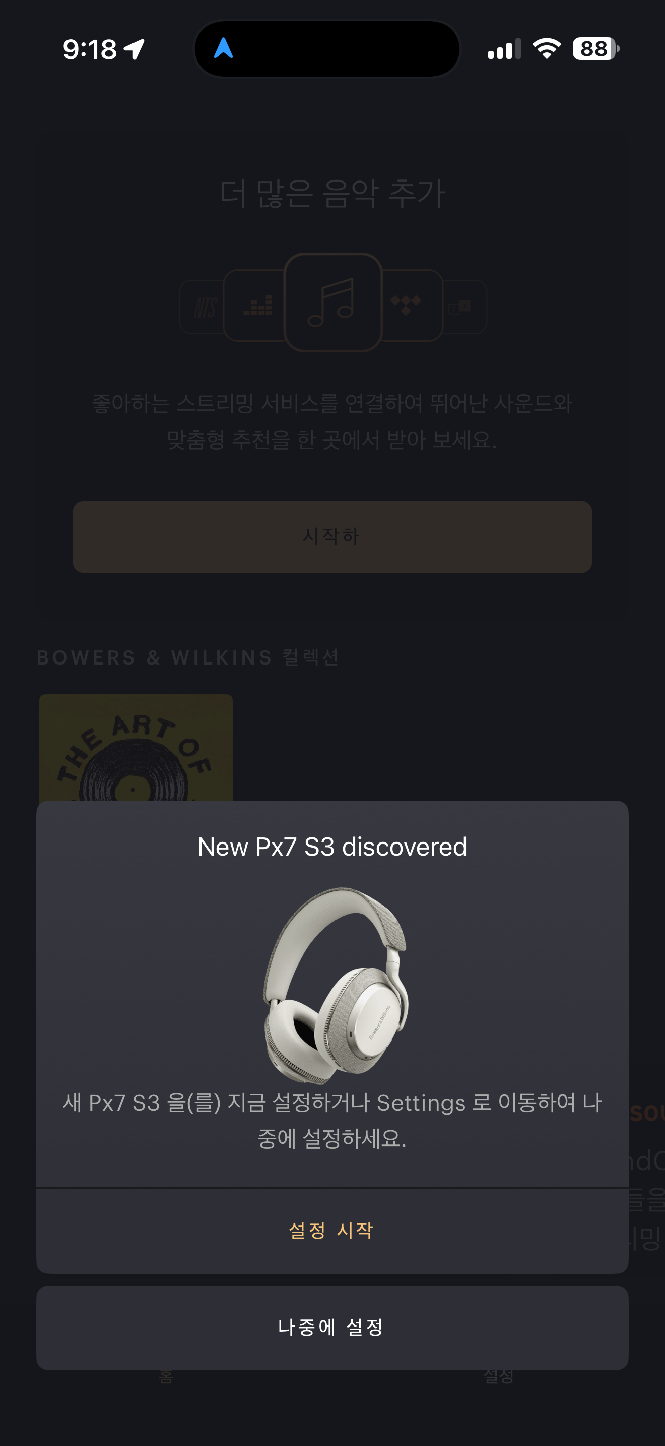 앱 설치 및 제품 페어링은 딱히 걸리는 부분 없이 한 번에 쭈욱 이어지면서 연결이 됩니다. 확실히 세대를 거듭할수록 무선 기기로서의 완성도도 높아지는 것 같습니다. 물론 이건 다른 브랜드에서는 '당연히', '마땅히' 되어야 하는 것인데 그것이 새삼스레 언급되는 게 민망한 부분이긴 합니다. 무선 연결성에 있어서 워낙에 악명 높았던 B&W여서 더욱 그렇습니다.
