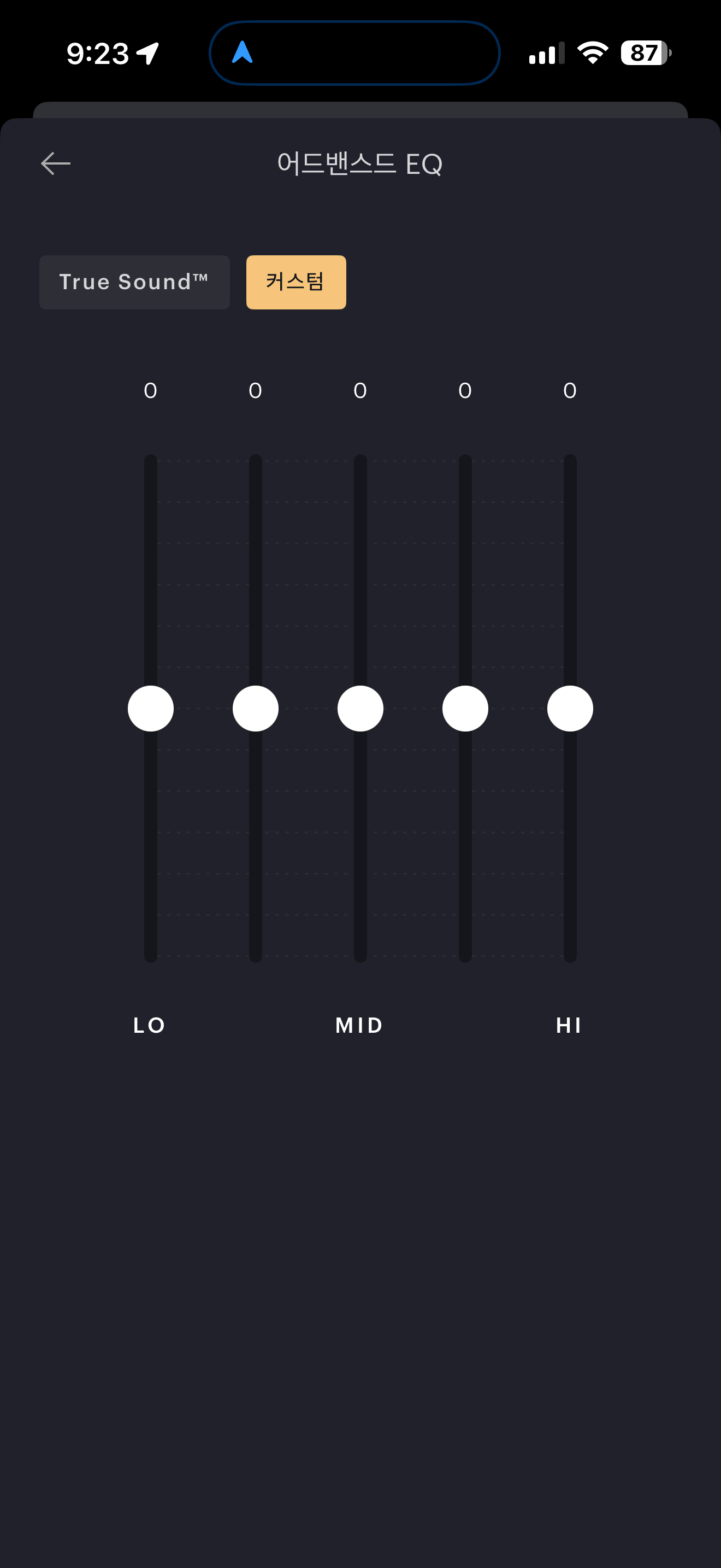 하지만 여전히 앱 상에서 건드릴 만한 게 거의 없는 건 동일합니다. 노이즈 캔슬링을 켜고 끄고 주변소리듣기로 바꾸는 것, 프리셋은 전혀 없는 5밴드 EQ, 미사용시 자동 전원 OFF 시간 설정, 착용센서 민감도 설정 정도가 고작입니다.