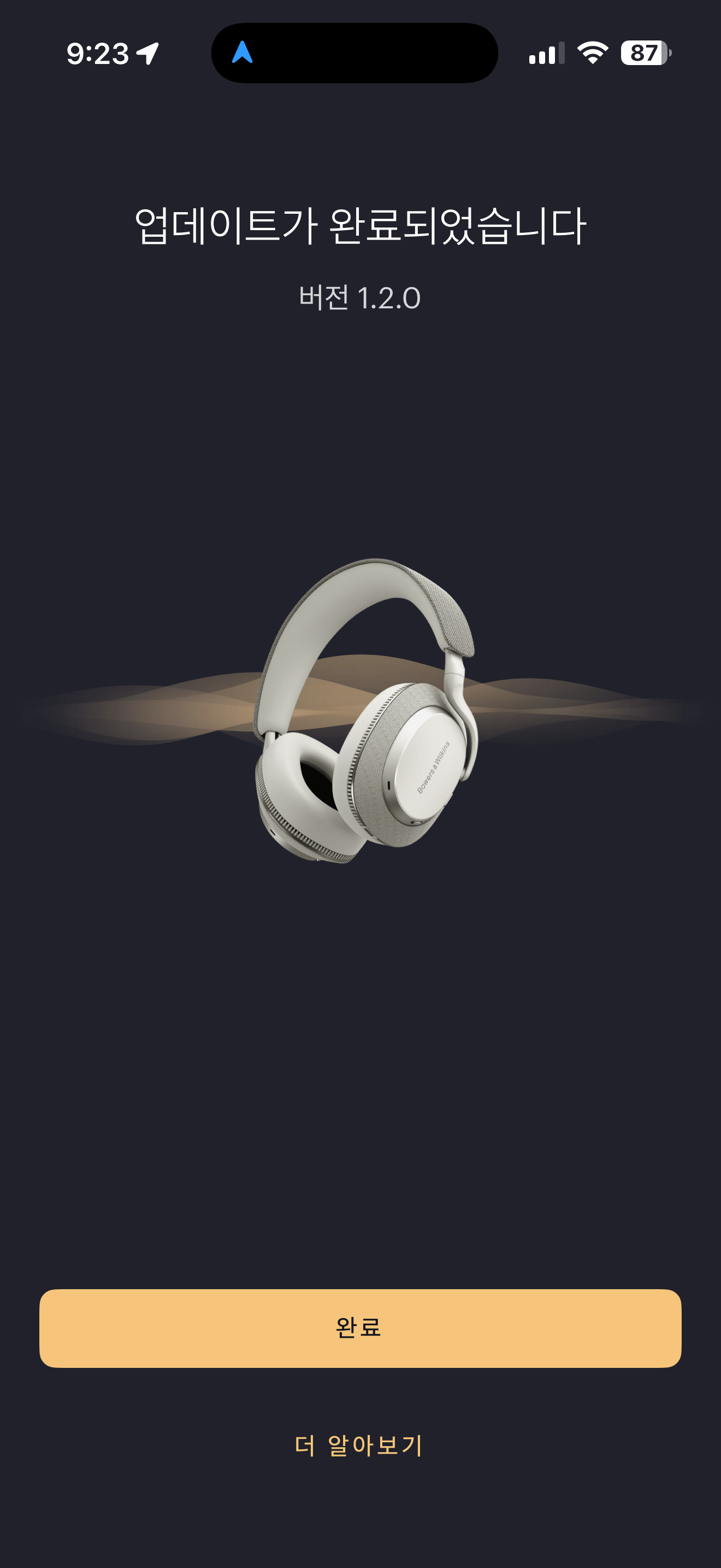 앱 설치 및 제품 페어링은 딱히 걸리는 부분 없이 한 번에 쭈욱 이어지면서 연결이 됩니다. 확실히 세대를 거듭할수록 무선 기기로서의 완성도도 높아지는 것 같습니다. 물론 이건 다른 브랜드에서는 '당연히', '마땅히' 되어야 하는 것인데 그것이 새삼스레 언급되는 게 민망한 부분이긴 합니다. 무선 연결성에 있어서 워낙에 악명 높았던 B&W여서 더욱 그렇습니다.