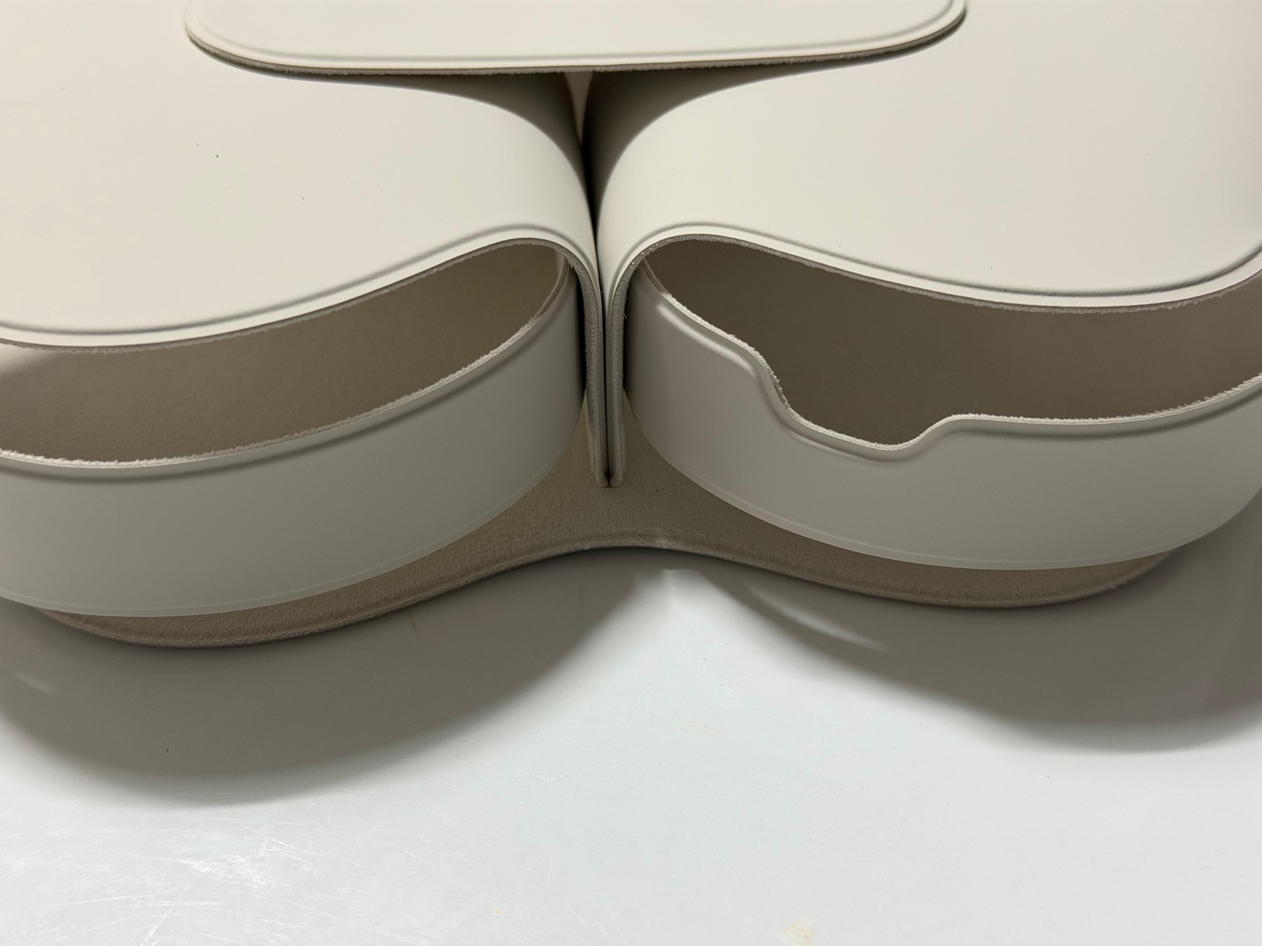 이어컵의 패드는 플라스틱으로 고정되는 방식이 아니라 애플이 사랑해 마지않는 자석으로 떼었다 붙였다 할 수 있는 방식입니다. 다른 회사의 제품들이 이어패드를 분리할 때 강한 힘을 줘야하고, 분리될 때 따다다닥 플라스틱이 부러지진 않을까 염려가 되는 다소 불안감을 주는 소리를 내는 것에 비해 에어팟 맥스는 어렵지 않게 붙였다가 뗄 수 있습니다. 찰칵 찰칵 하는 소리도 듣기 좋고요.