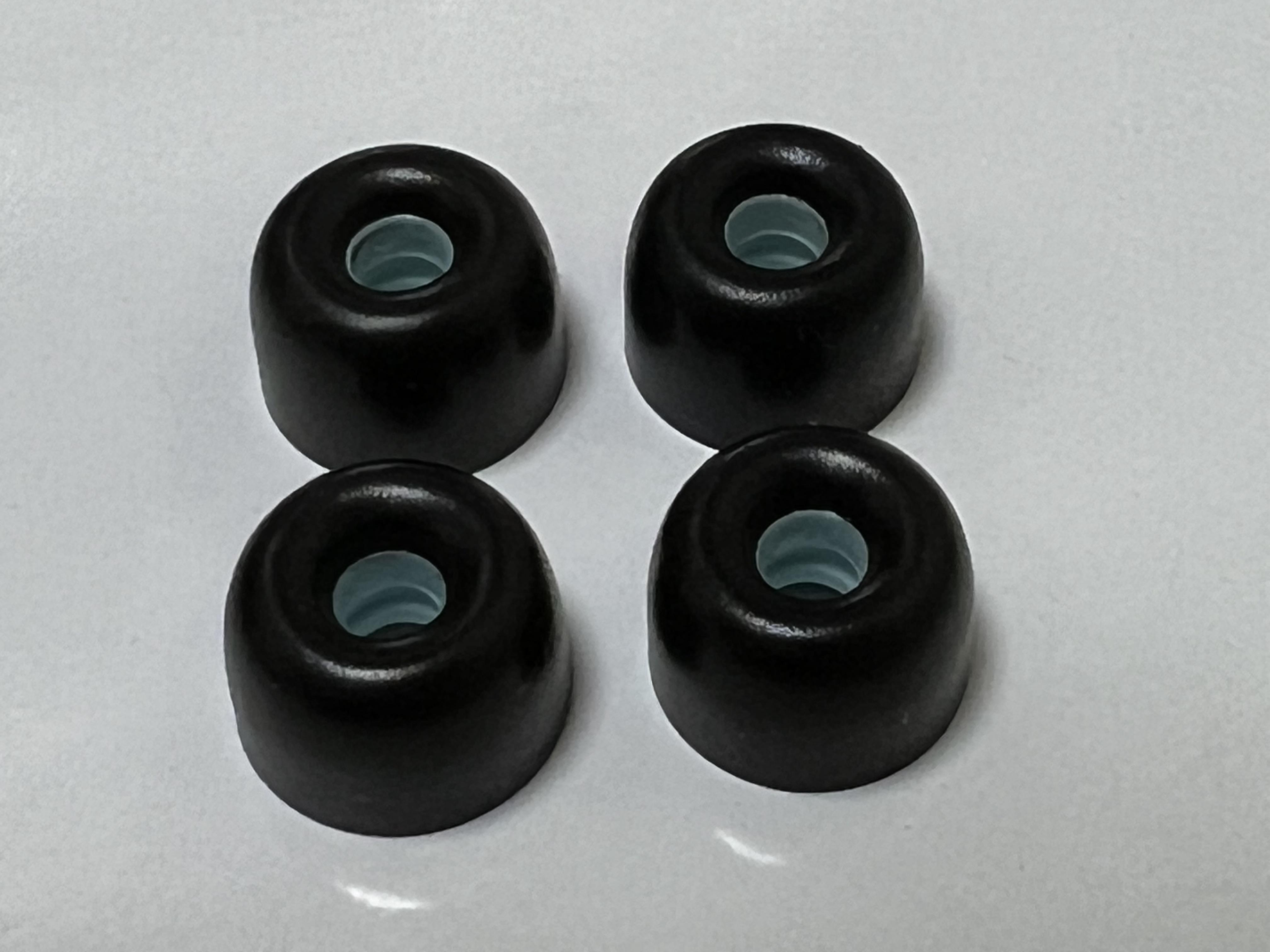분명 L 사이즈로 2조를 시켰는데 사진을 찍어 봤더니 오른쪽 뒤편의 폼팁의 크기가 M 사이즈 같아 보이기만 합니다. 육안으로 보면 4개의 폼팁 사이즈가 조금씩 모두 다르다는 것을 알 수가 있는데요, 사진상으로는 왼쪽 편의 위아래가 L 사이즈로 보이고, 오른쪽 아래는 M-L 중간 사이즈, 그리고 오른쪽 위는 M 사이즈 같기만 합니다. 아무래도 품질이 고르지는 못한 모양입니다.