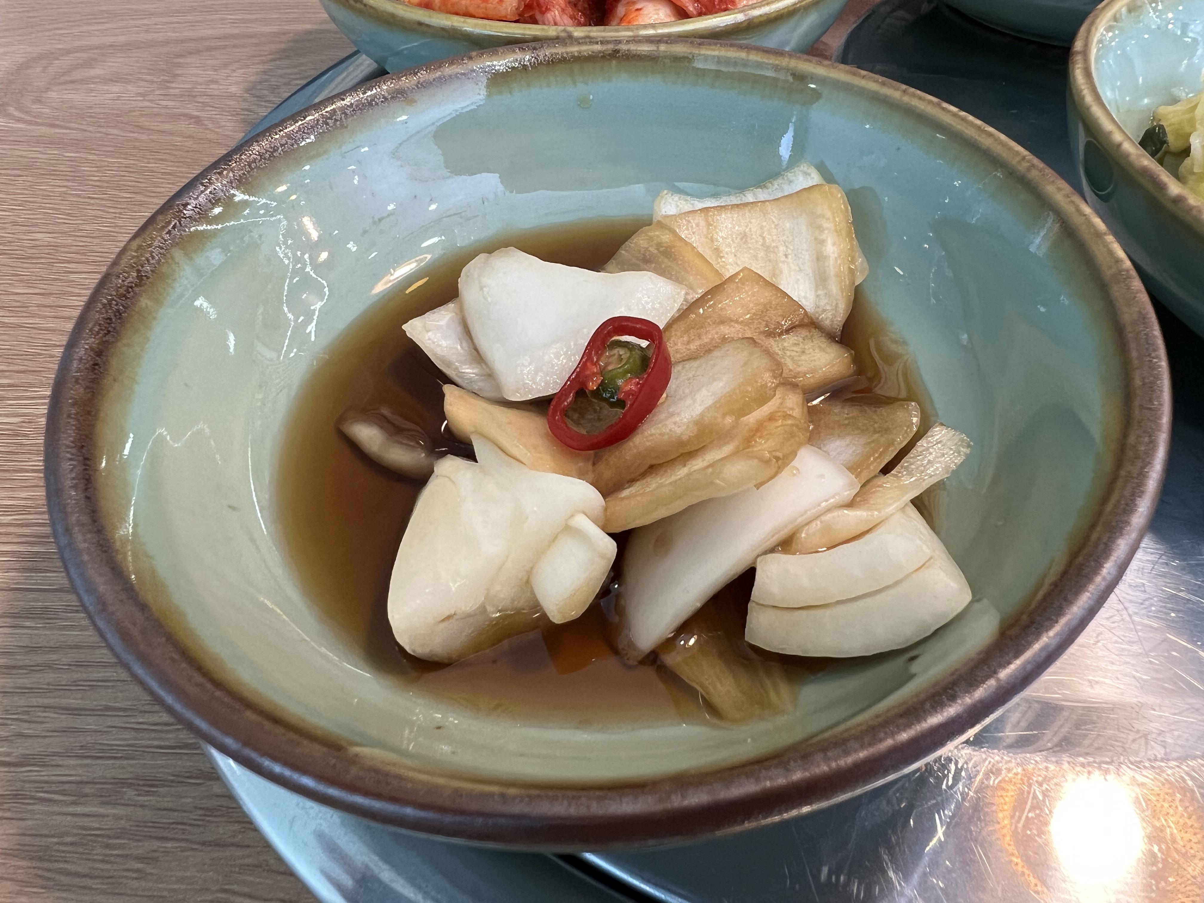 백김치는 미적지근한데, 단맛보다는 짠맛이 굉장히 강한 편이었고, 깍두기와 배추김치는 기본은 하는데 그렇다고 썩 맛있다는 생각이 들진 않았습니다. 배추김치와 깍두기는 갈비탕을 시켜야만 주는 반찬인가 봅니다. 전반적으로 반찬이 많이 짰습니다.