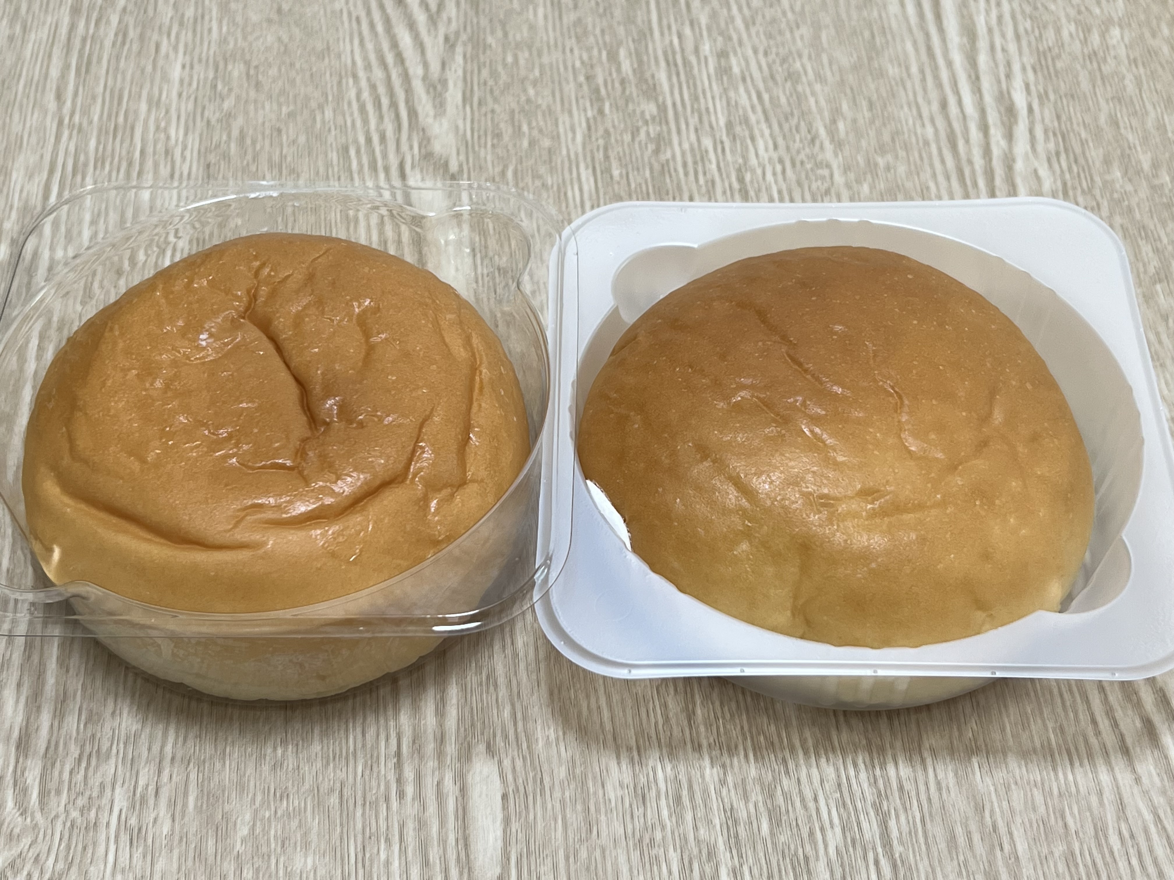 포장지에서 꺼내면 이런 모습입니다. 연세우유 생크림빵은 위가 납작하게 눌려 있고요, 반면 브레디크 우유생크림빵은 위가 볼록하니 모양이 잡혀 있습니다. 이건 아마 적재하는 과정에서 발생한 문제일 것 같습니다. 처음부터 저렇게 납작하니 빵을 만들지는 않을 테니까요. 모양은 브레디크 생크림빵이 더 좋습니다. 다만, 제작 과정 중에 브레디크 생크림빵에는 생크림이 저렇게 흘러 나와 플라스틱 내장 케이스에 묻어 있는 게 확인이 됐습니다. 저건 눌려서 찍힌 게 아니겠죠. 모양은 완벽하잖아요. 이건 제작 과정 중에 크림을 제대로 다 넣지 않은 채로 포장을 했다는 뜻이 될 겁니다. 그래도 일단 모양은 브레디크가 예쁘므로 1:1.