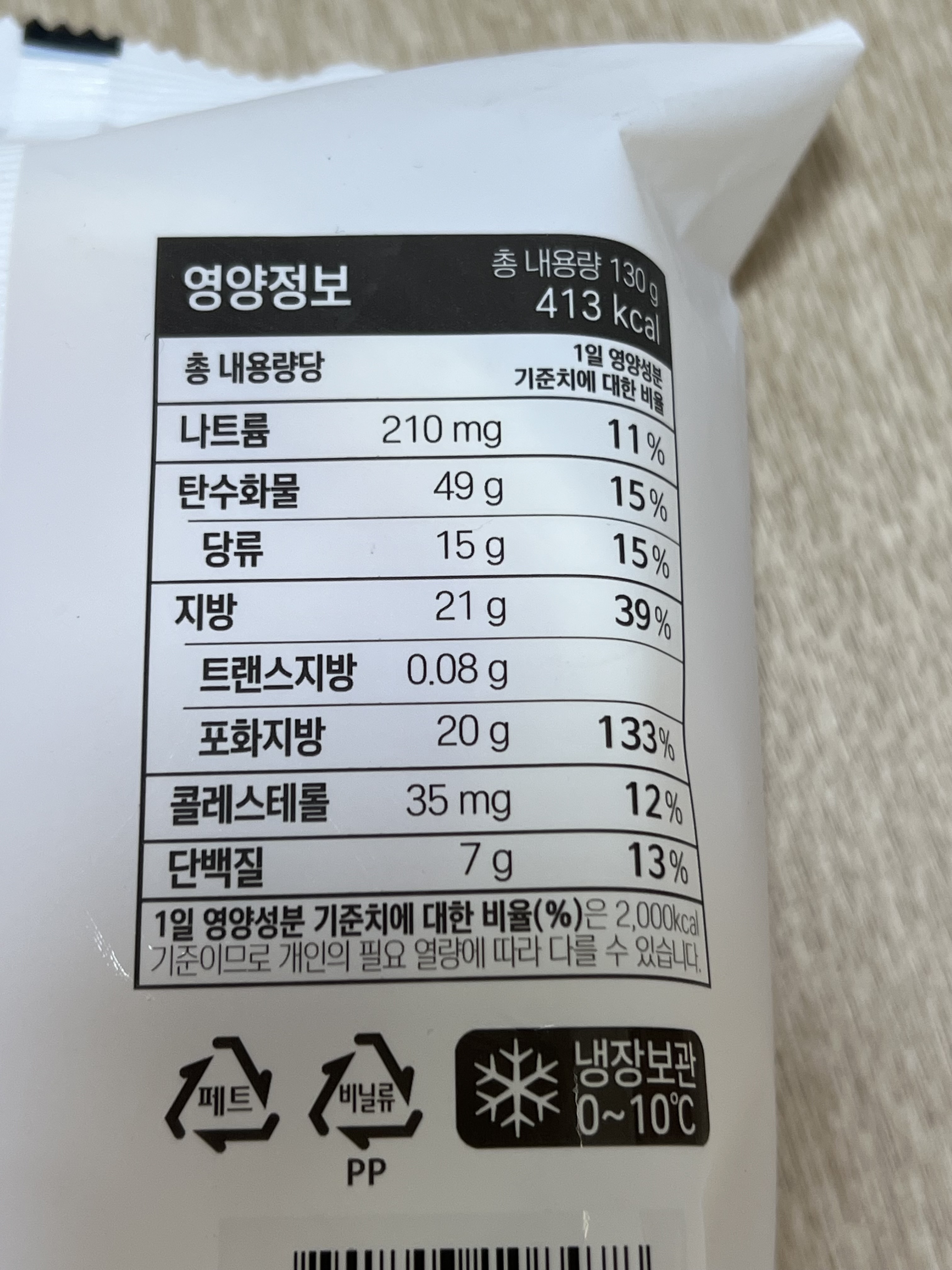 두 제품 모두 냉장보관(0~10도씨)을 권장하고 있고, 연세우유 생크림빵이 130그램, 브레디크 우유생크림빵이 135그램으로 양 자체는 브레디크 우유생크림빵이 더 많습니다. 하지만 5그램 차이라면 정말 미미하기 때문에 그것 때문에 한쪽이 더 배부르고 다른쪽은 양이 부족해지는 상황은 아닙니다. 사실 거의 같다고 봐야겠죠. 더군다나 30% 더 커져서 135그램을 맞춘 건 지극히 연세우유 생크림빵을 염두에 둔 것은 아닐까 하는 생각이 들었습니다.