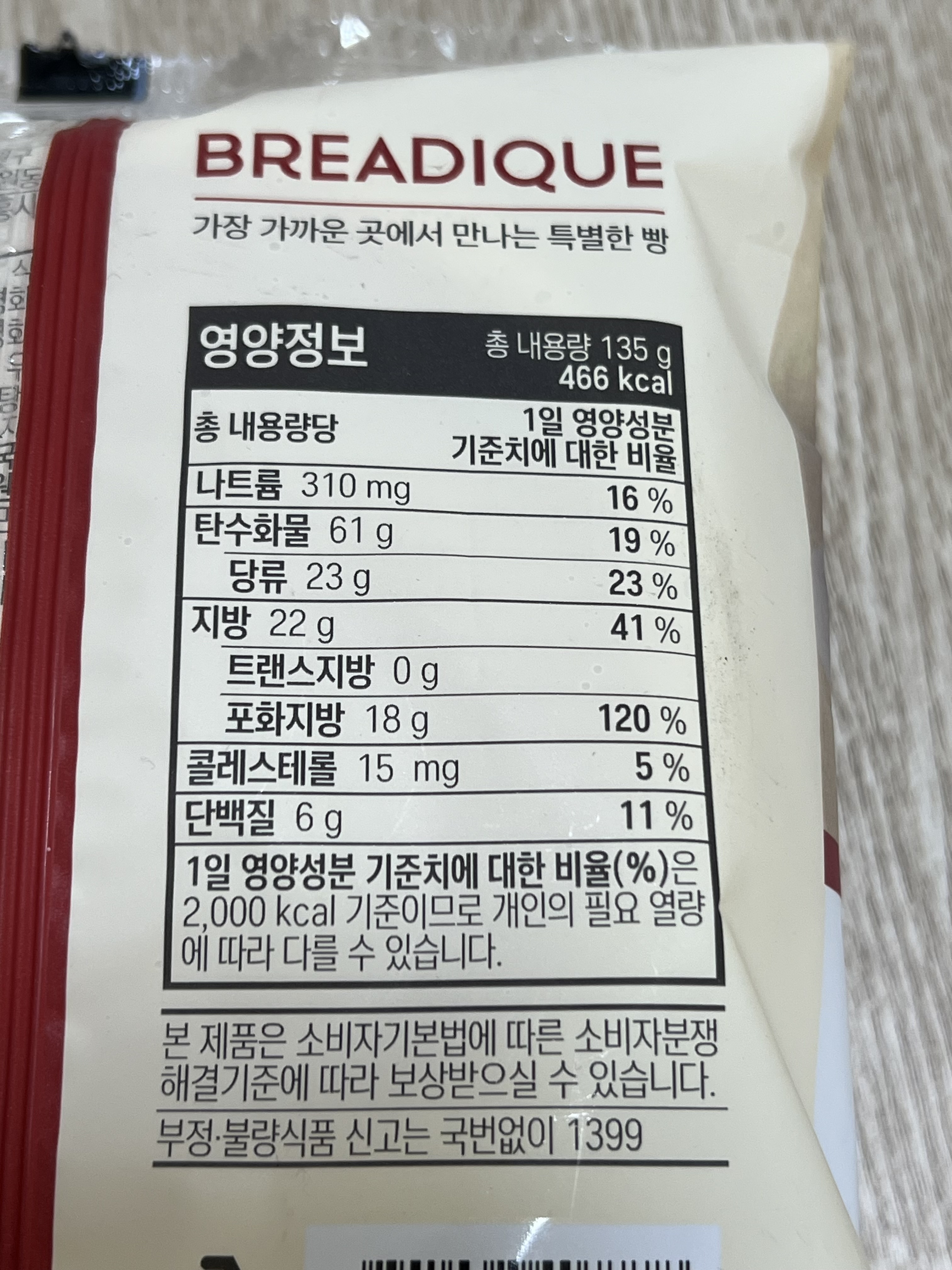 다만 양에 비해 칼로리는 53Kcal가 브레디크 우유생크림빵이 높았습니다. 탄수화물의 양이 5그램 만큼 늘었다고 한다면 약 20Kcal가 증가했어야 했을 텐데, 실제로는 33Kcal가 더 높았습니다. 좋게 생각하면 브레디크 쪽이 우유 함량이 높아서 우유단백질의 양이 더 늘었거나 유지방이 더 많이 들었을 수도 있겠지만, 나쁘게 생각하면 설탕을 더 많이 넣어서 칼로리를 높였을 수도 있습니다. 이건 영양정보를 봐야 정확히 알 수 있겠네요.