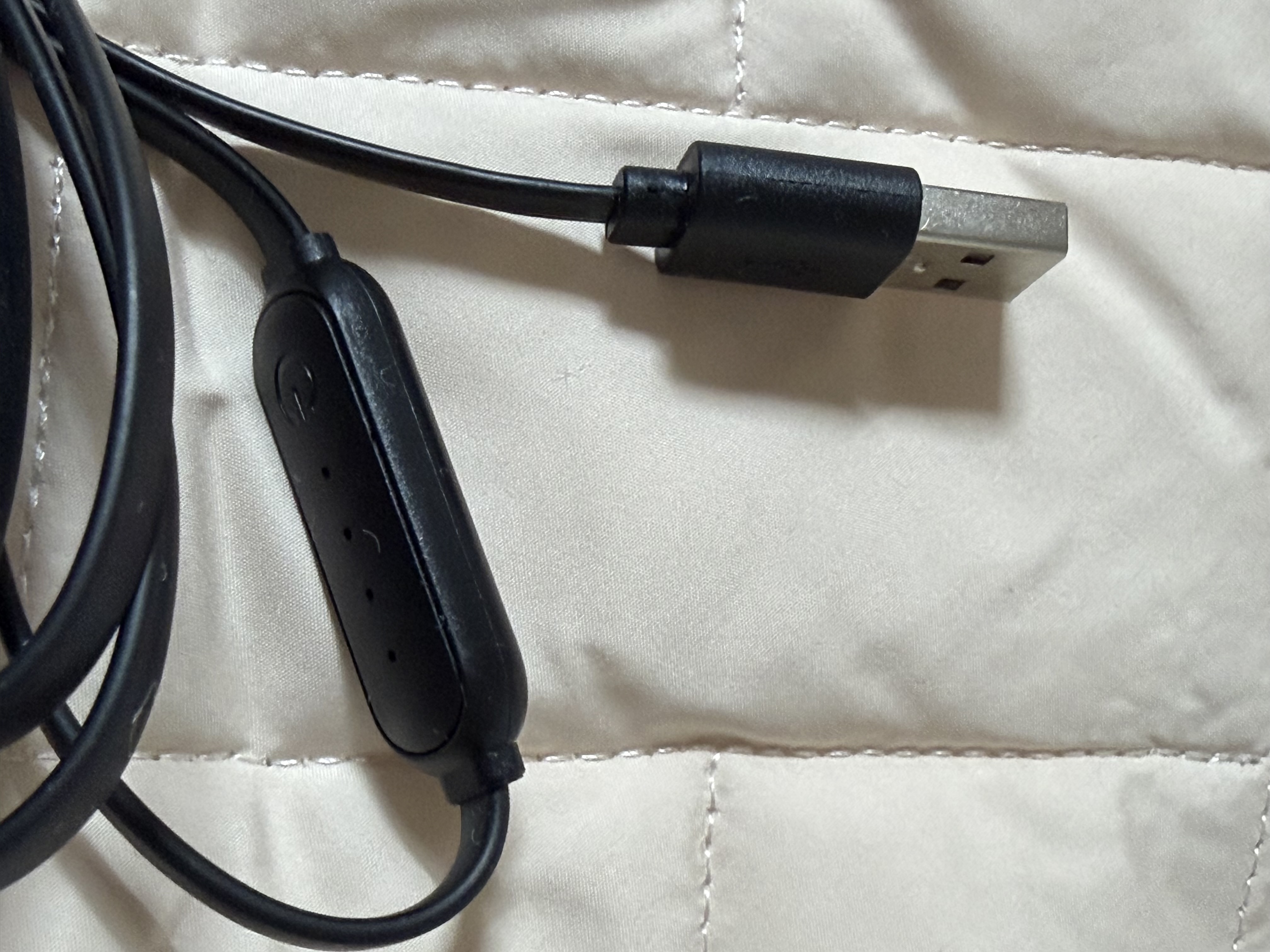 넥스코 DC 포근 탄소 방석은 USB A 단자가 달린 케이블이 기본 장착되어 있습니다. 케이블의 길이는 약 1.3m 정도여서 사용하는 데는 불편함을 주지는 않습니다. 다만 2026년에도 USB A 단자를 가지고 있는 건 다소 아쉽습니다. 메이드 인 코리아라기보다는 차이나 냄새가 폴폴 납니다. 2026년에 판매되는 제품이라면 USB C 단자로 교체하는 게 맞을 것 같습니다. USB A 단자도 10W 입력이야 얼마든지 받을 수 있지만 최근 판매되는 충전기에서는 점점 A 단자가 없어지는 추세인 데다가 작년 출시된 EV3만 하더라도 이미 USB A 단자는 더 이상 제공되지 않아서 젠더를 이용해야 합니다. 이 부분은 향후 꼭 업그레이드가 되면 좋겠습니다.