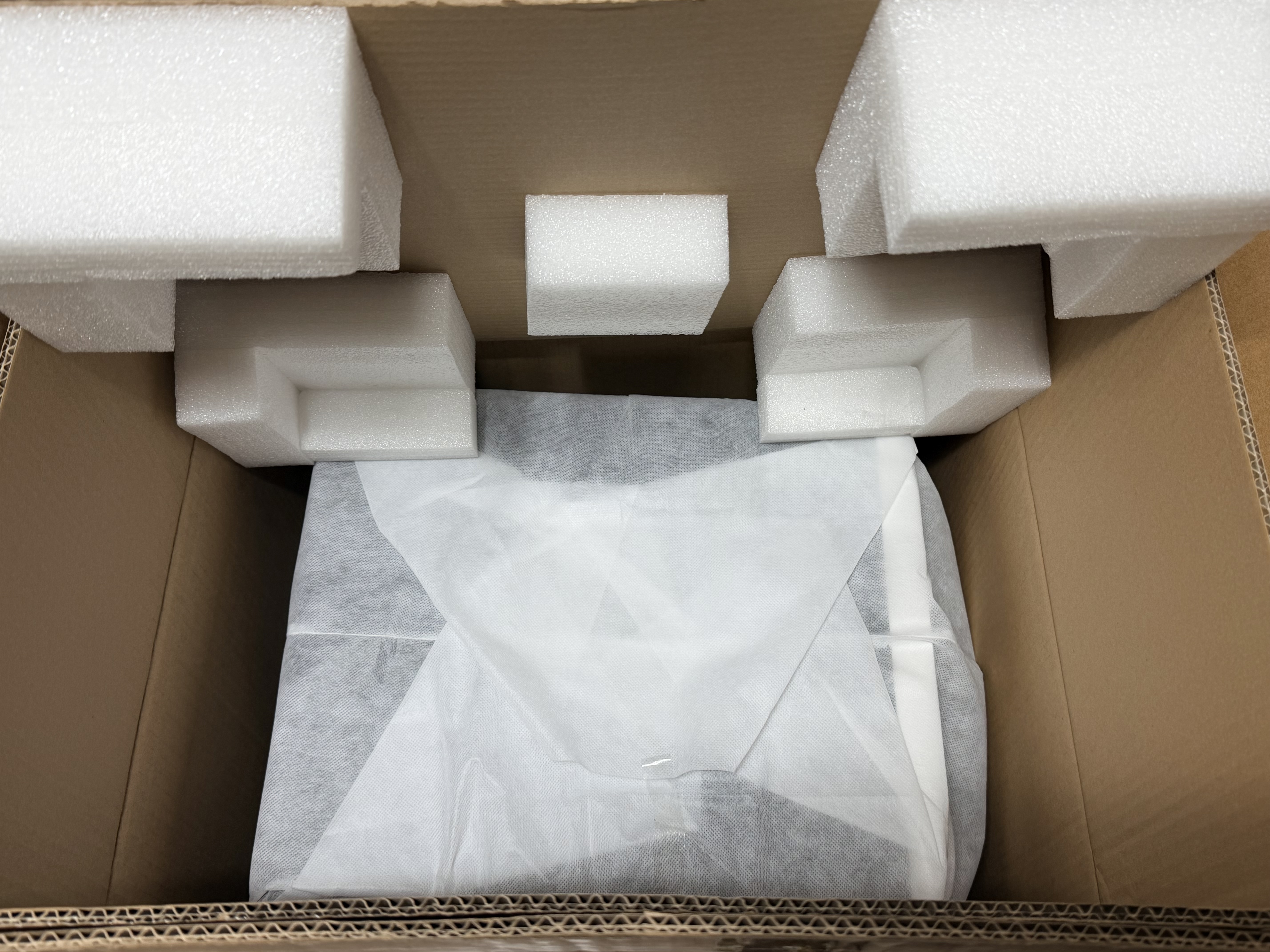 가락전자의 MV10은 10인치라는 제법 큰 우퍼 유닛을 가지고 있기 때문에 사이즈 자체가 크고, 무게 또한 만만치 않습니다. 박스 포함 무게가 17Kg이고, 제품 무게만 14Kg가 넘습니다. 힘없는 사람은 우퍼 설치도 못하겠습니다. 우퍼 역시 MV6와 마찬가지로 골판지 포장이 이중으로 되어 있습니다. 안전을 위해서는 확실히 도움이 되는 포장 방식입니다. 그리고 제품이 박스 내부에서 흔들리지 말라고 스폰지로 상부를 고정하게끔 골판지 뚜껑이 덮여 있습니다.
