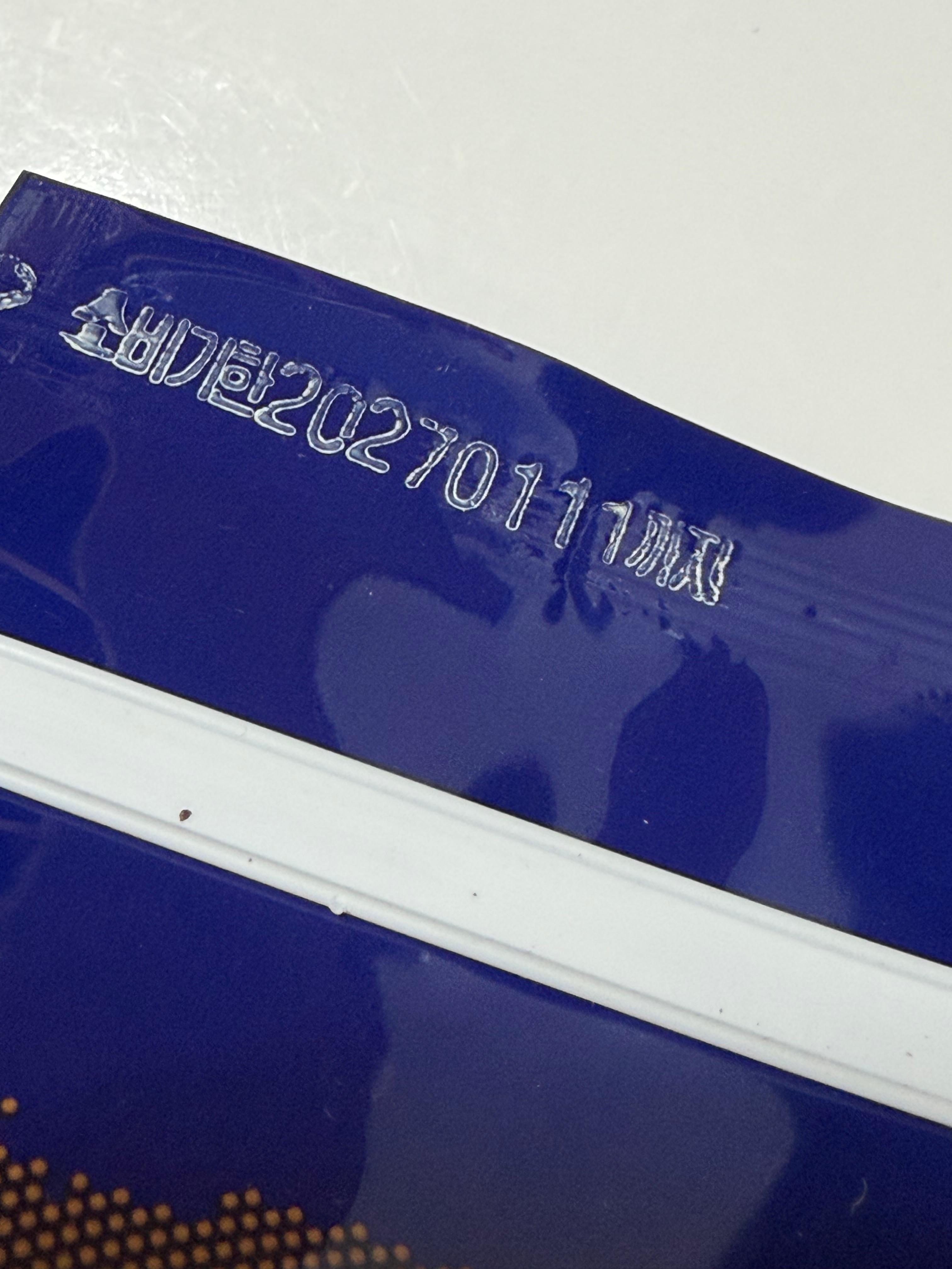 포장 상단에는 남은 제품이 흐르지 않게 봉투 입구를 막을 수 있는 철끈이 있고, 제품의 소비기한이 적혀 있습니다. 대부분의 원두가 원두의 로스팅 일자로부터 1년인 걸 감안하면 26년 1월 12일에 로스팅해서 포장한 걸로 보입니다. 개인적으로 바람이 있다면 저 철끈 대신 지퍼락 달린 포장재로 바꾸면 좋겠습니다. 철끈으로 그냥 입구만 막아 놓는 것은 밀봉 효과가 없어서 향이 금방 날아가기 때문입니다.
