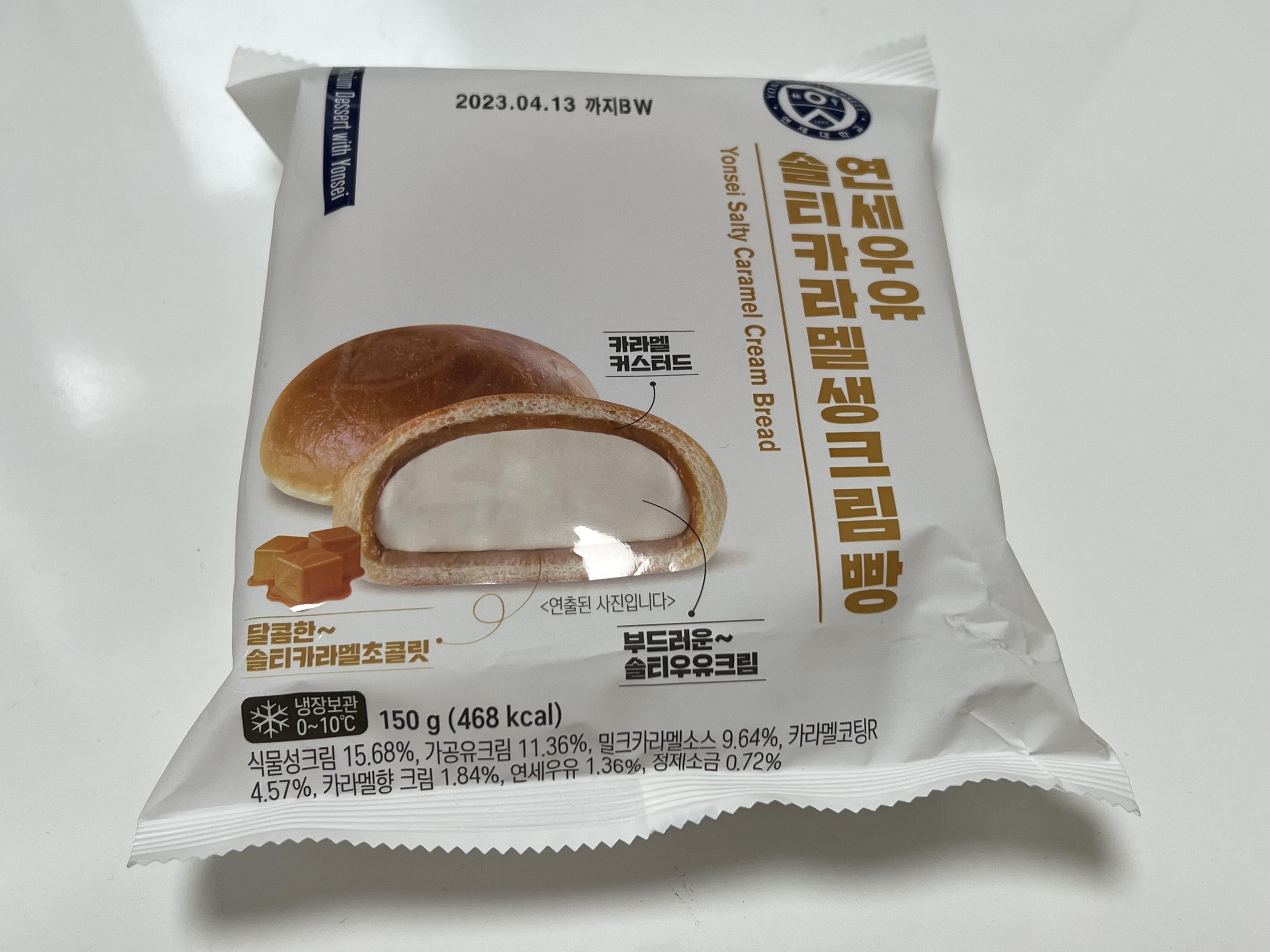 처음 예상과 다르게 CU에서 판매하고 있는 연세우유빵을 전부 구매를 해서 먹어 보게 됐습니다. 애초부터 황치즈생크림빵이 가장 맛있다는 선행정보를 알고 구입해서 먹었던 터라 다른 빵들에 대한 기대는 크지 않았거든요. 그럼에도 같은 연세우유빵이니 기본은 하겠지 하는 마음으로 한번 먹어 보자는 생각이 들어 이것저것 죄다 먹어 보고 있는 중입니다. 이번에는 연세우유 솔티카라멜생크림빵입니다.