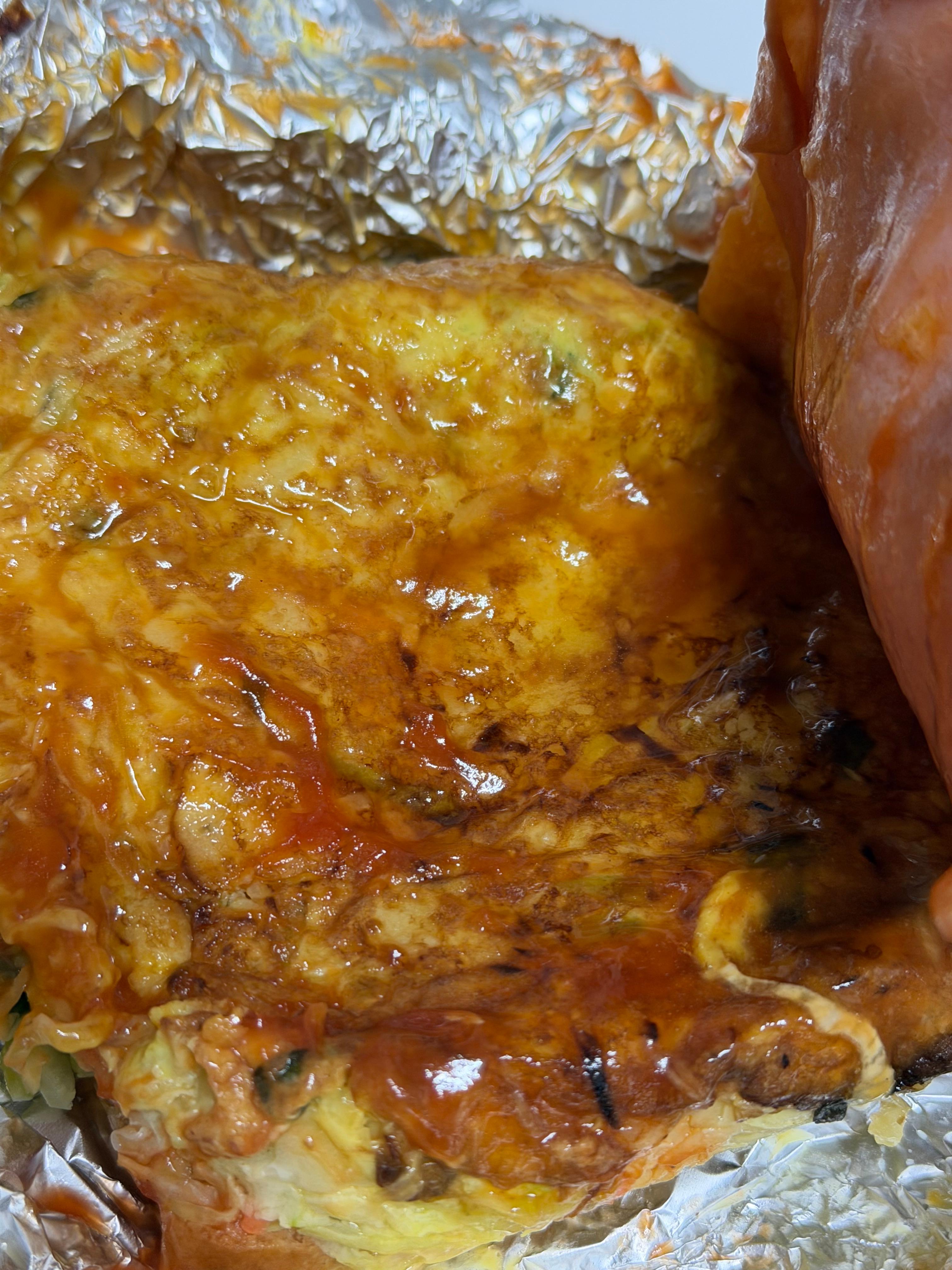 토스트가 집에 오는 20분 정도의 시간 동안에도 식지 않고 여전히 뜨끈뜨끈함을 유지해 줬습니다. 집에 와서 별도로 데우진 않고 바로 먹어 봤는데 집에 오는 시간 동안 설탕이 충분히 녹아서 빵 전체에 달달한 맛을 고르게 내 주었습니다. 두께는 약 3.5~4cm 정도였고 특히나 양배추가 듬뿍 담긴 토스트속이 두툼해서 좋았습니다.