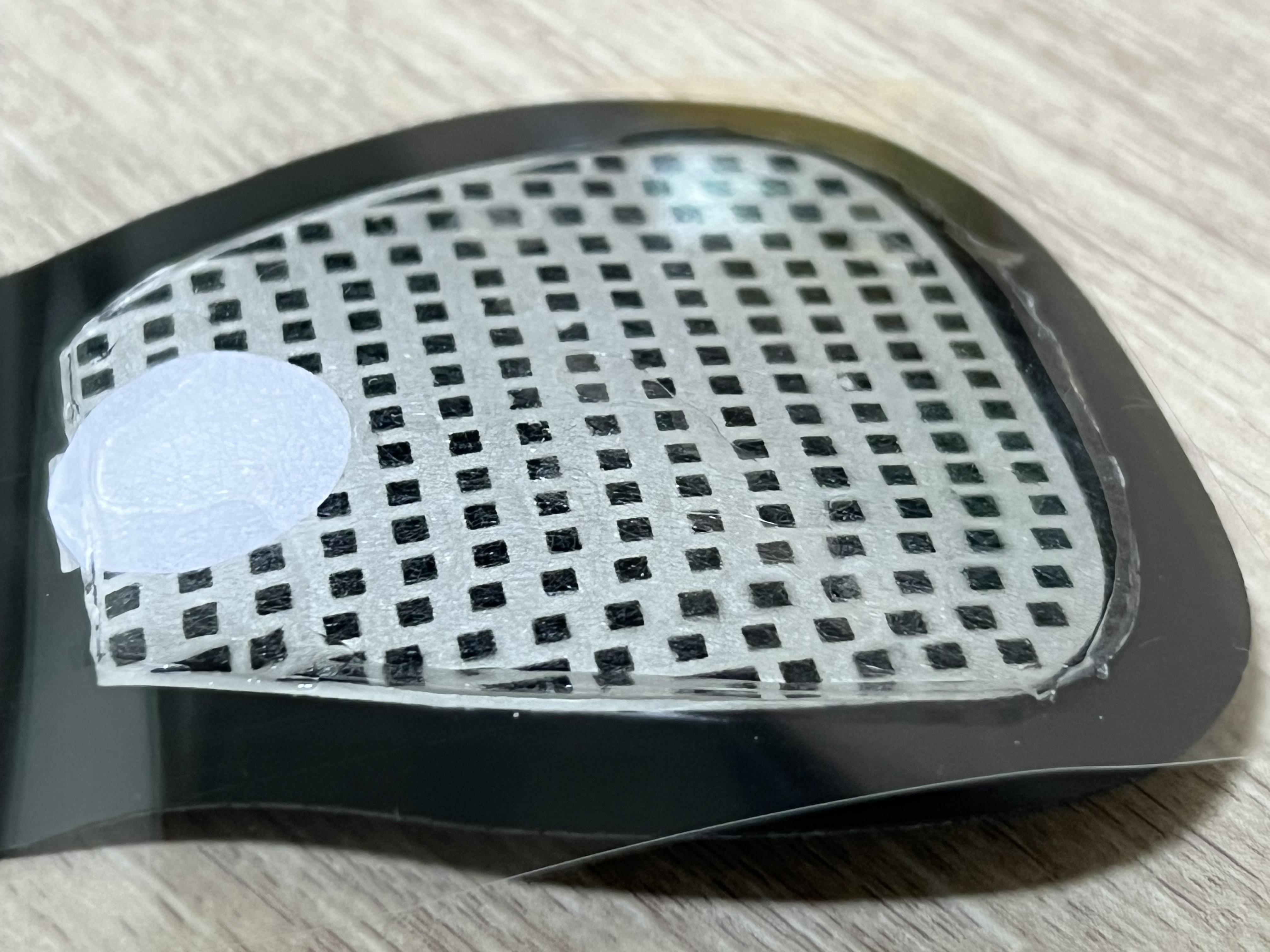 패드 아랫면에는 끈적임이 묻어나지 않도록 투명 플라스틱이 덮여 있습니다. 플라스틱을 제거하면 패드가 꽤 끈적거리는 걸 알 수 있습니다. 패드에는 검은색 점이 백 여개 찍혀 있는데, 똑딱이를 통해 들어온 전류가 이 검은색 점을 통해 피부로 전달하는 것 같습니다. 패드는 영구적으로 쓸 수 있는 건 아니고, 패드를 피부에 몇 번 붙였다가 떼고 나면 끈적거림이 줄어들면서 밀착력이 현저히 떨어지고, 그로 인해서 피부에 전류가 전달되지 않습니다. 그럴 때는 조심스레 패드 아랫부분에 물을 묻혀서 먼지 등을 닦아내면 조금은 더 쓸 수 있습니다. 그러나 이 패드는 어디까지나 소모품이고, 알리익스프레스에서 구입할 수 있으니 너무 물에 씻어내는 건 추천하고 싶지 않습니다.