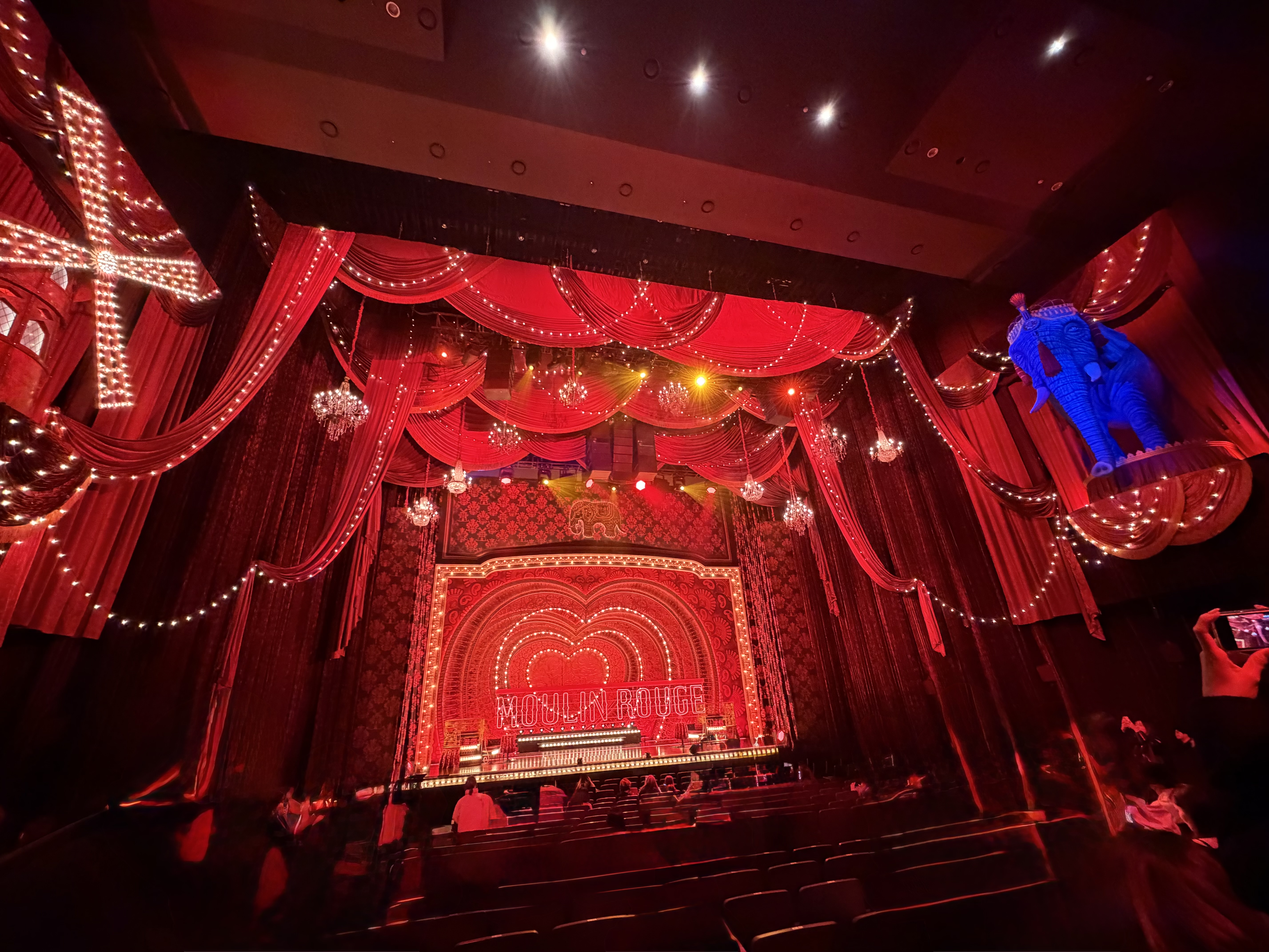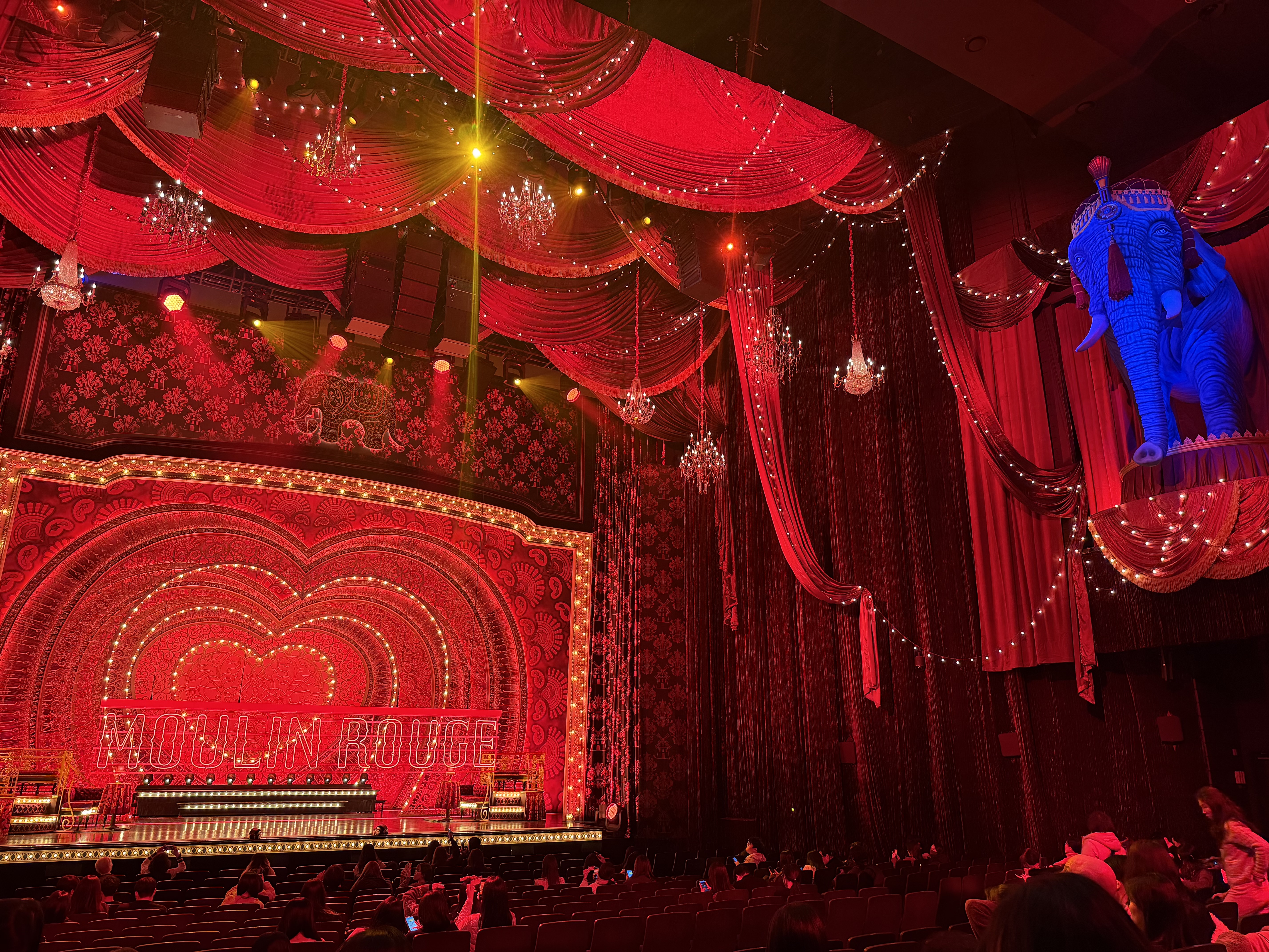 뮤지컬 물랑루즈는 국내 초연 때도, 이번 재연 때도 블루스퀘어 신한카드홀에서 공연을 하고 있습니다. 블루스퀘어 신한카드홀은 공연장도 넓고 무대도 큰 편(1766석, 3층 구조)이라 물랑루즈 같은 쇼비즈니스를 주제로 한 공연에 아주 잘 맞는 공연장입니다. 다만 공연장의 크기와 별개로 음향 성능도 그러하냐는 또 다른 문제입니다. 블루스퀘어로 여러 공연들을 검색해 보면 썩 좋은 평가를 받지는 못하고 있음을 확인할 수 있습니다. 제가 느낀 부분은 뒤에 따로 적겠습니다.