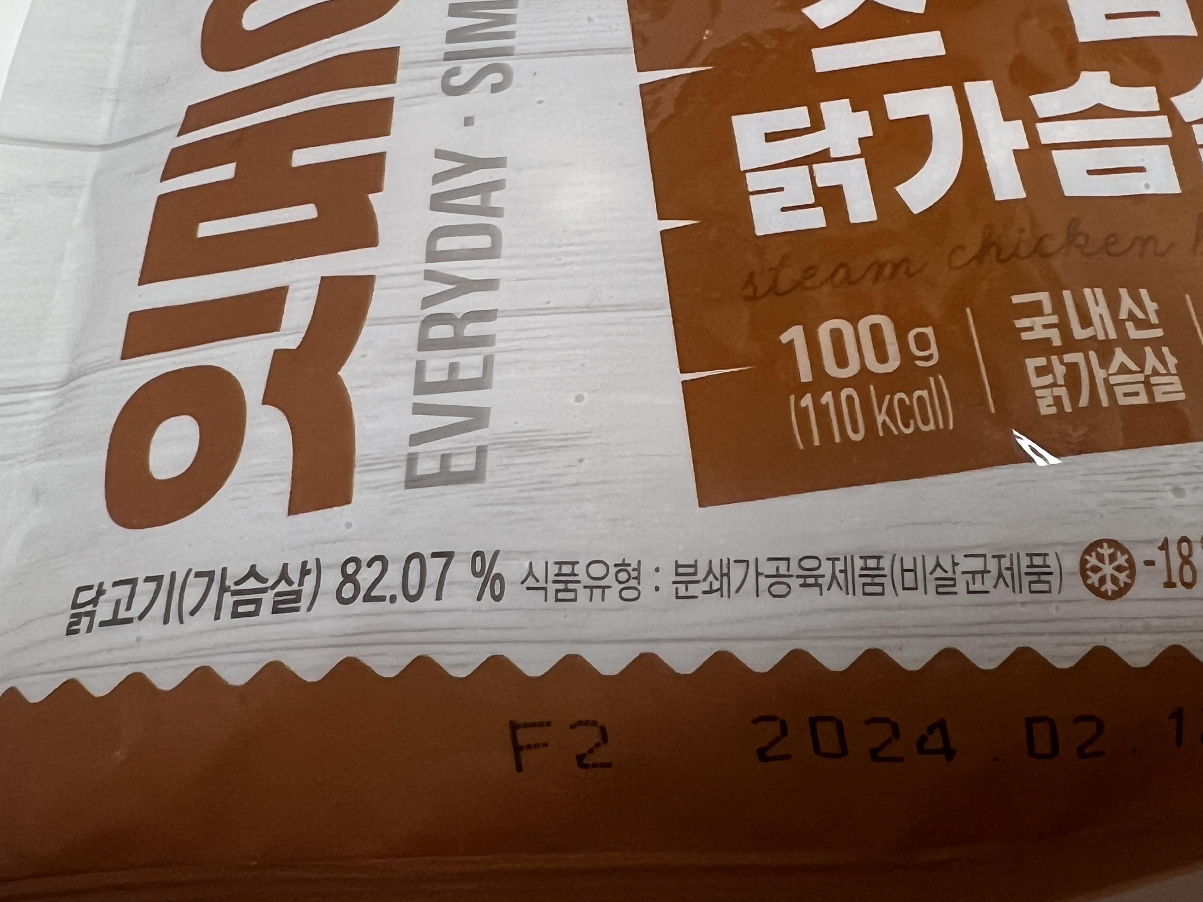 그래서 저는 닭가슴살이긴 하지만 다소간의 양념이 되어 있는 제품을 골랐습니다. 그게 바로 잇메이트 스팀 닭가슴살입니다. 잇메이트 스팀 닭가슴살은 100그램씩 담겨 있지만 실제 닭가슴살은 82%밖에 들어 있지 않습니다.