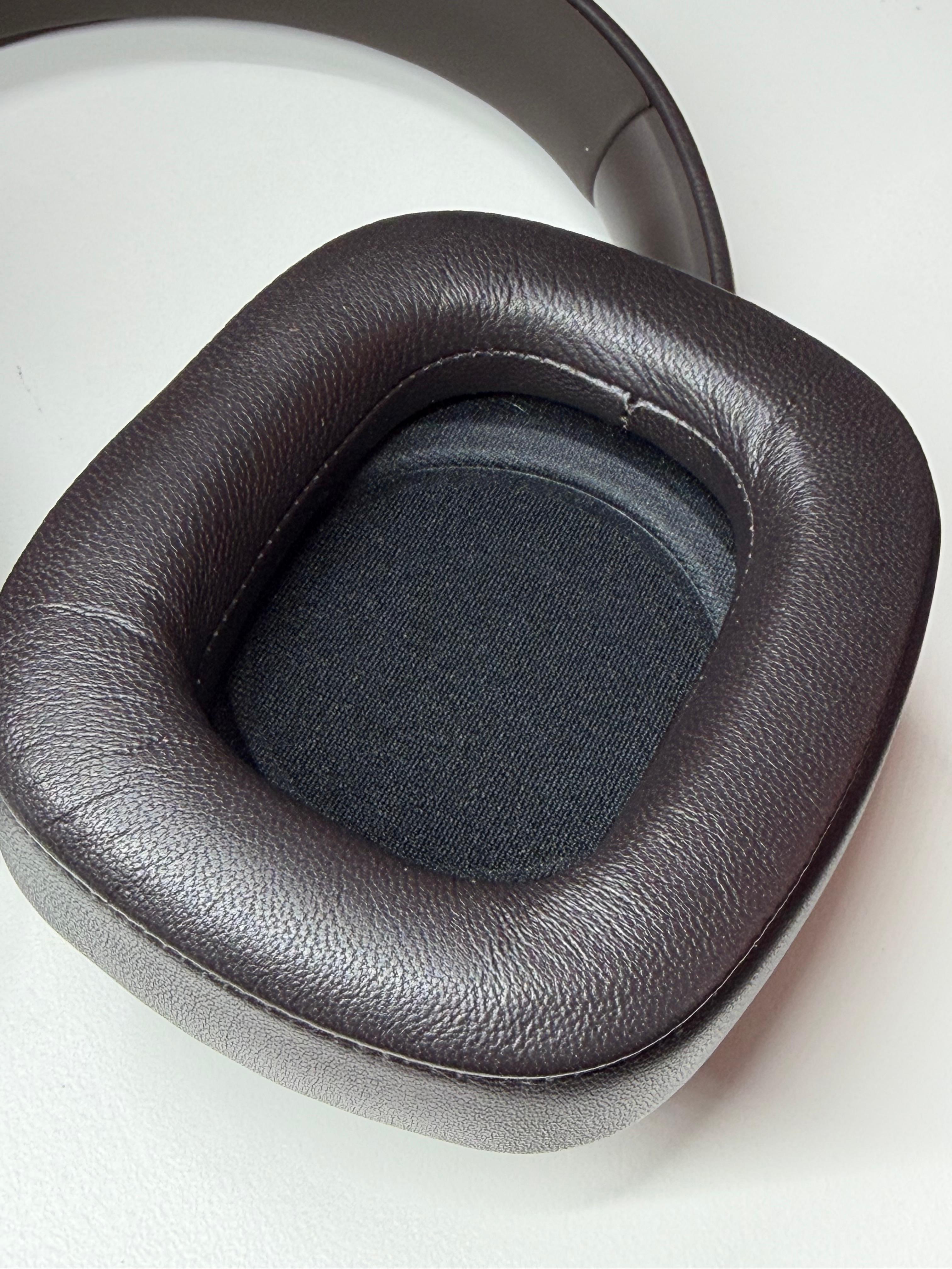 모든 기능 버튼은 오른쪽 이어패드에 있고, 왼쪽에는 아날로그 단자 하나만 있습니다. 아무래도 오른손잡이들이 많은 만큼 오른쪽 이어패드에 기능을 몰아 넣은 것으로 볼 수 있습니다. 이어패드의 재질은 눈으로 봐도, 손으로 만져도, 귀에 갖다 대도 확실히 고급이라는 것을 느낄 수 있습니다. 가죽의 품질과 마감은 디자인 요소 중 제가 가장 마음에 들었던 부분입니다.