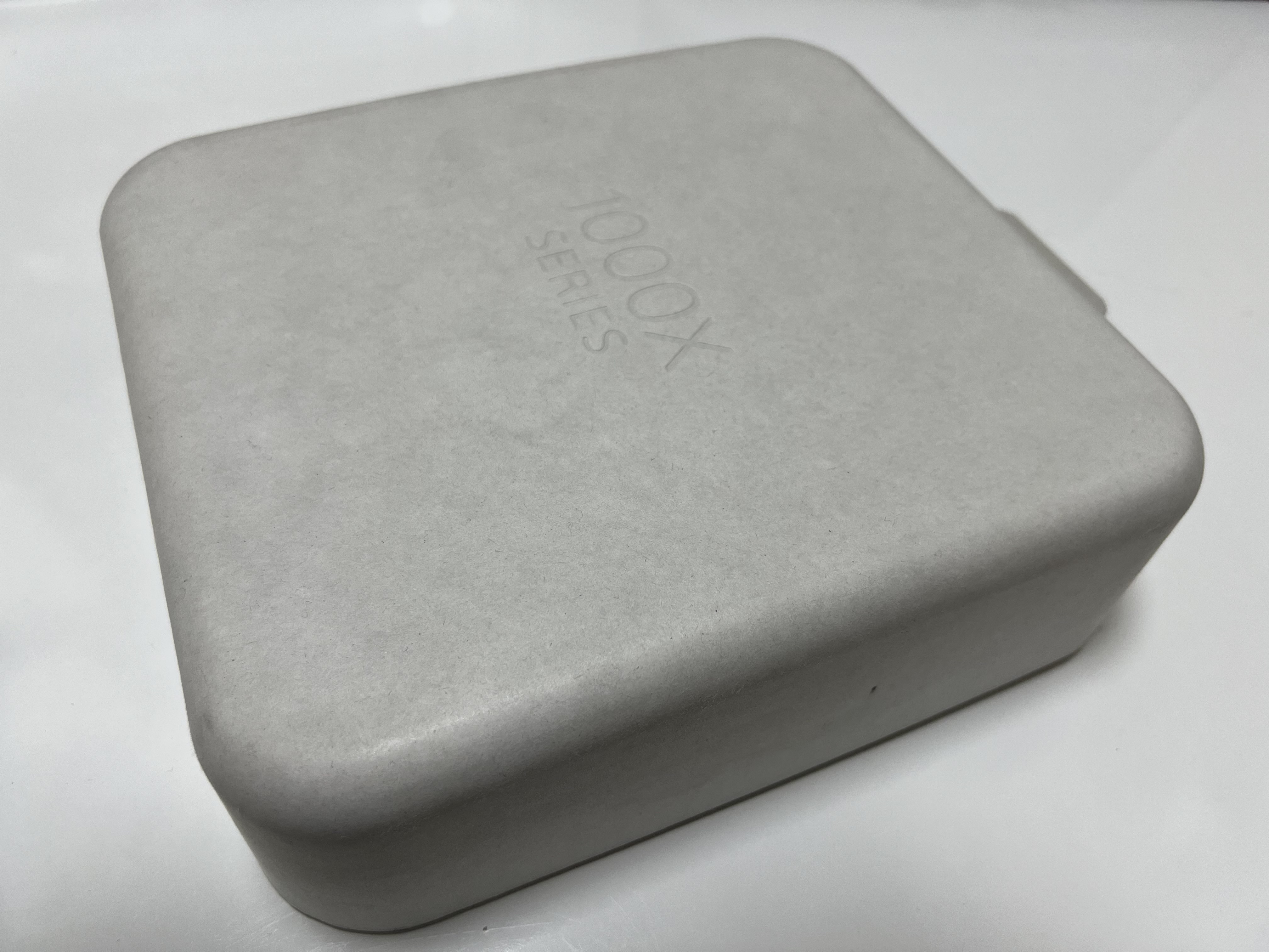 제품의 박스는 종이 재질입니다. 비닐, 플라스틱을 사용하지 않아 친환경적입니다. 잉크도 입히지 않아서 더욱 좋습니다. 여전히 종이 위에 비닐 코팅을 하거나 형형색색의 풀컬러 CMYK 4도 인쇄를 하는 업체들이 많은데도 이렇게 콩기름 인쇄마저 하지 않는 소니의 시도는 굉장히 좋아 보입니다. 물론 이게 SONY니까 좋은 평가를 줄 수 있는 거겠죠. 만약 5만원짜리 제품이 이런 패키지였다면 "싸구려"라고 엄청 실망했을지도 모르겠습니다. 박스 가운데에는 음각으로 1000X Series 라고 새겨져 있습니다.