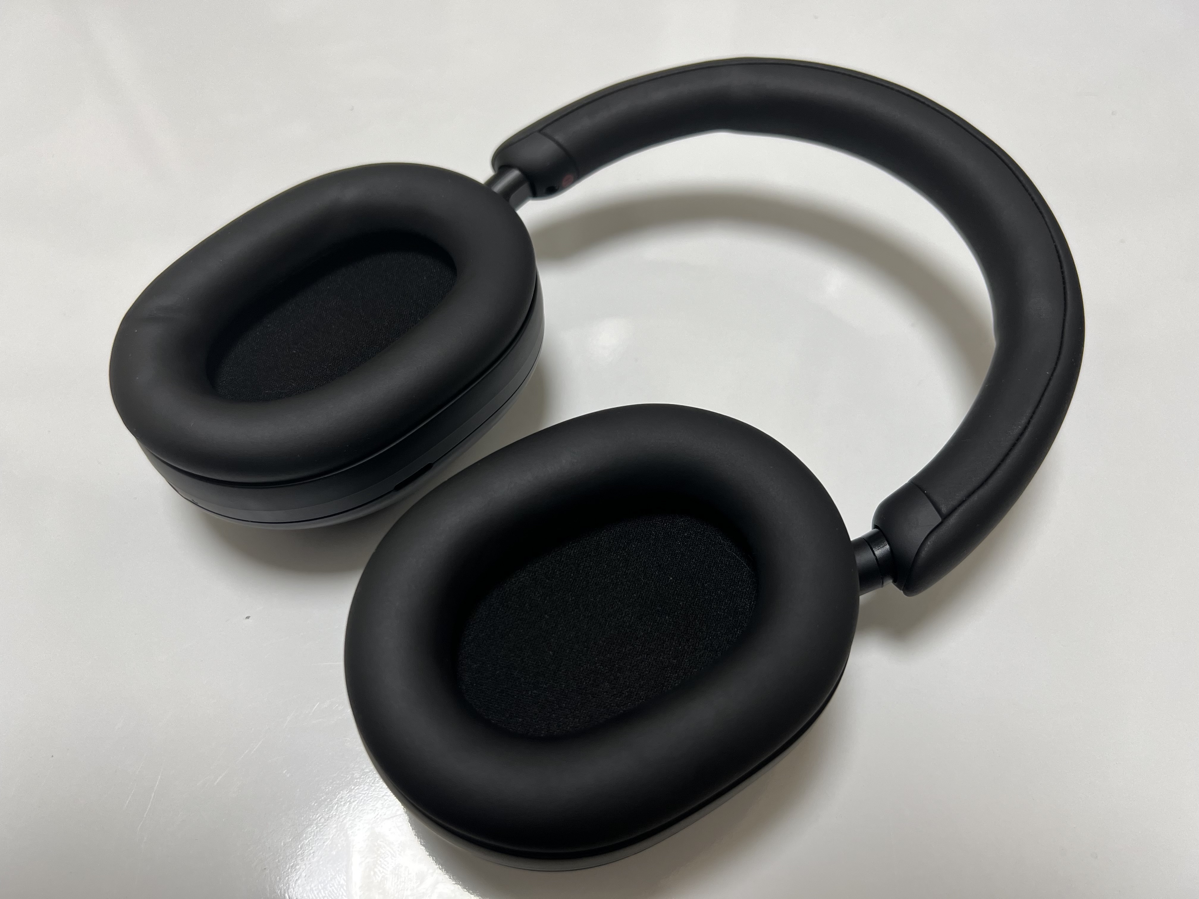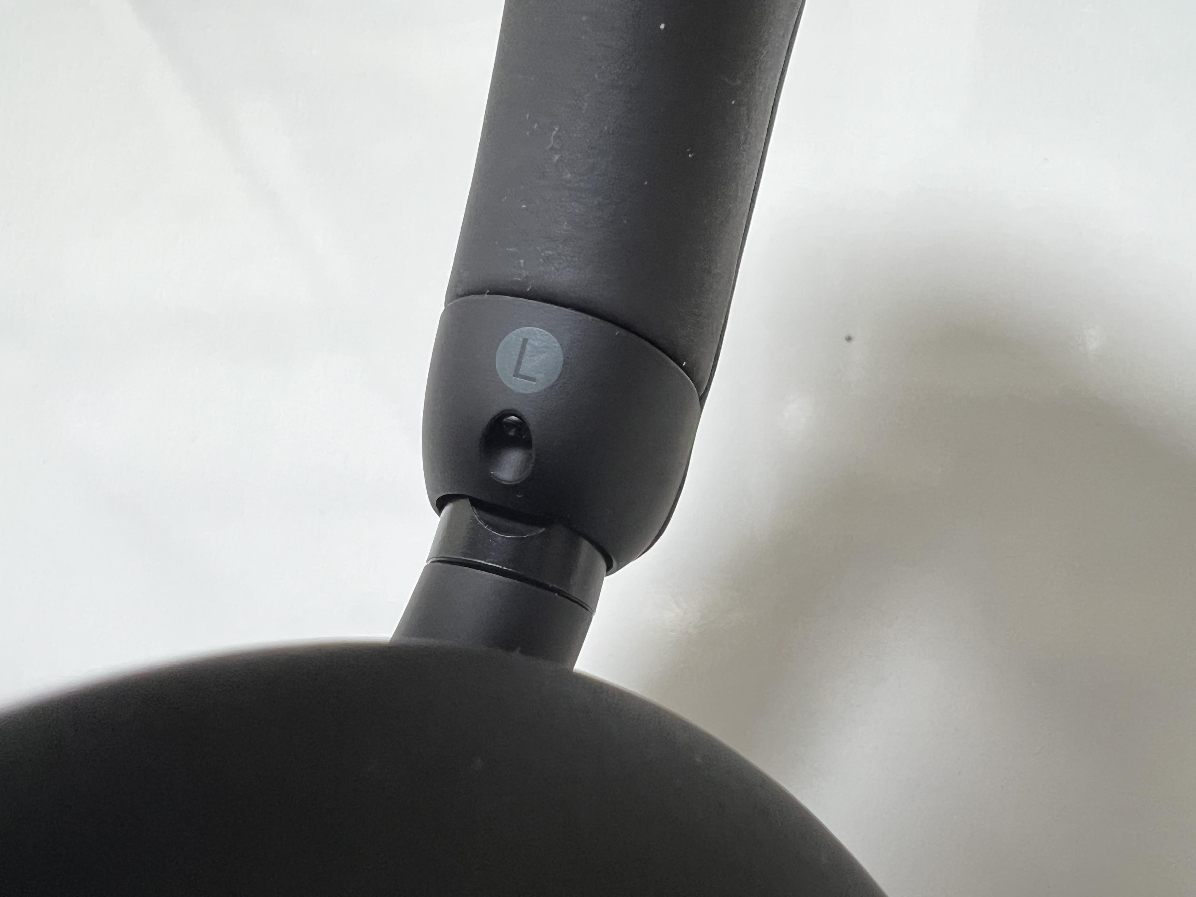 앞서 디자인에 대해 불만족한 부분도 있다고 말했는데, 바로 이 부분입니다. L과 R을 구분하는 게 쉽지 않습니다. 제가 사용하는 앤커의 스페이스 Q45나 BOSE의 QC45 같은 경우도 이어컵 내부에 큰 글씨로 L, R이 써 있어서 헤드폰을 들기만 해도 왼쪽 오른쪽을 구분할 수 있는데, SONY WH-1000XM5의 경우는 이어컵이 아니라 헤드밴드 아래, 이어컵과 연결되는 목 부분에 정말 조그맣게 L,R이 써 있습니다. 이게 별 것 아닌 거 같은데 의외로 엄청 불편합니다. 거의 이어폰 만하게 써 있어요. 면적도 넓은 헤드폰이 굳이 이렇게 해 놔야 하나 싶은 생각이 들었습니다. 헤드폰을 쓸 때마다 노안이 온 것도 아닌데 왼쪽 오른쪽을 신경 써서 봐야 한다는 건 사실 불필요한, 안 해도 되는 노력을 기울여야 한다는 뜻입니다. 이게 디자인적으로는 가장 큰 단점으로 느껴졌습니다.