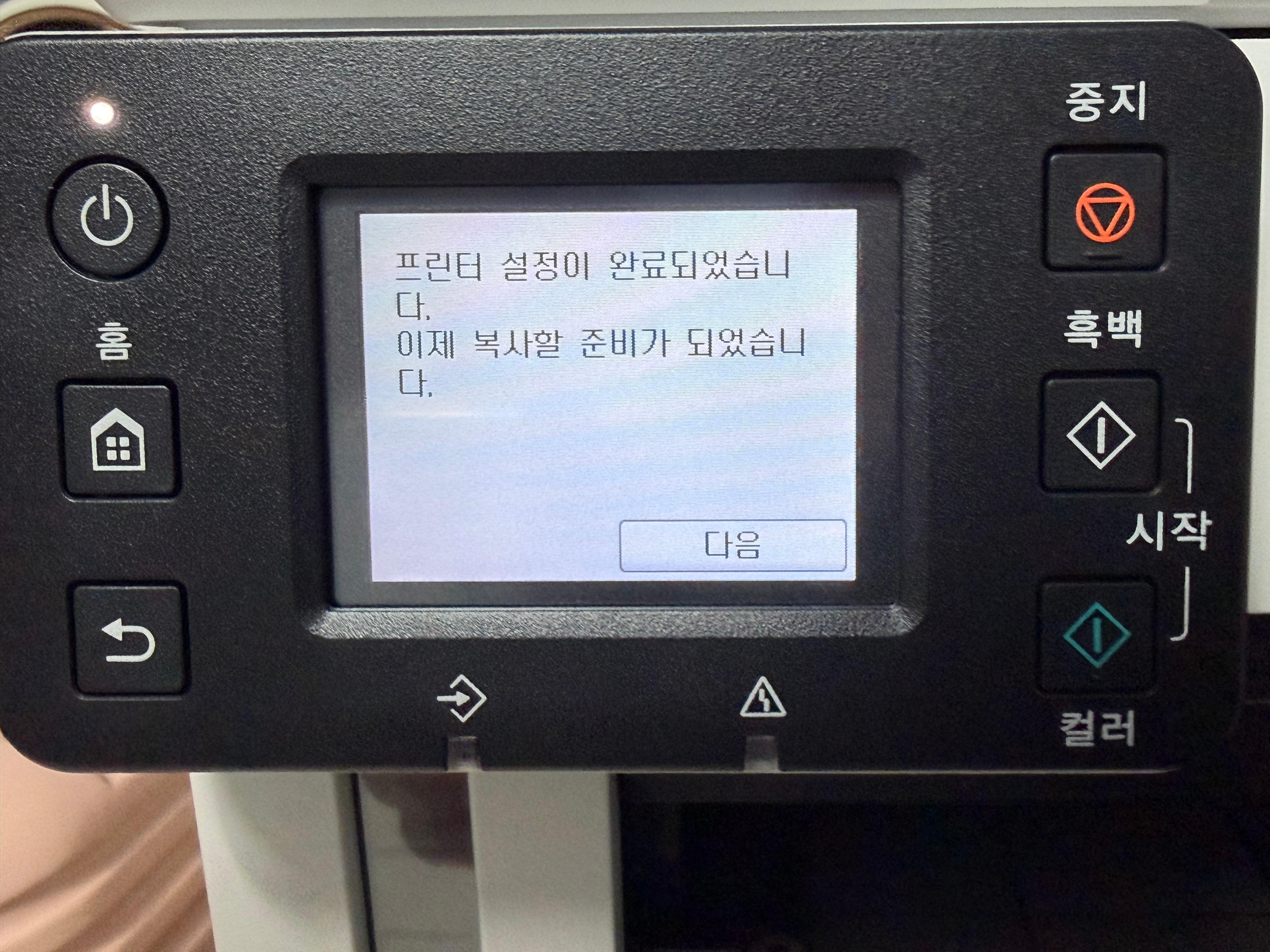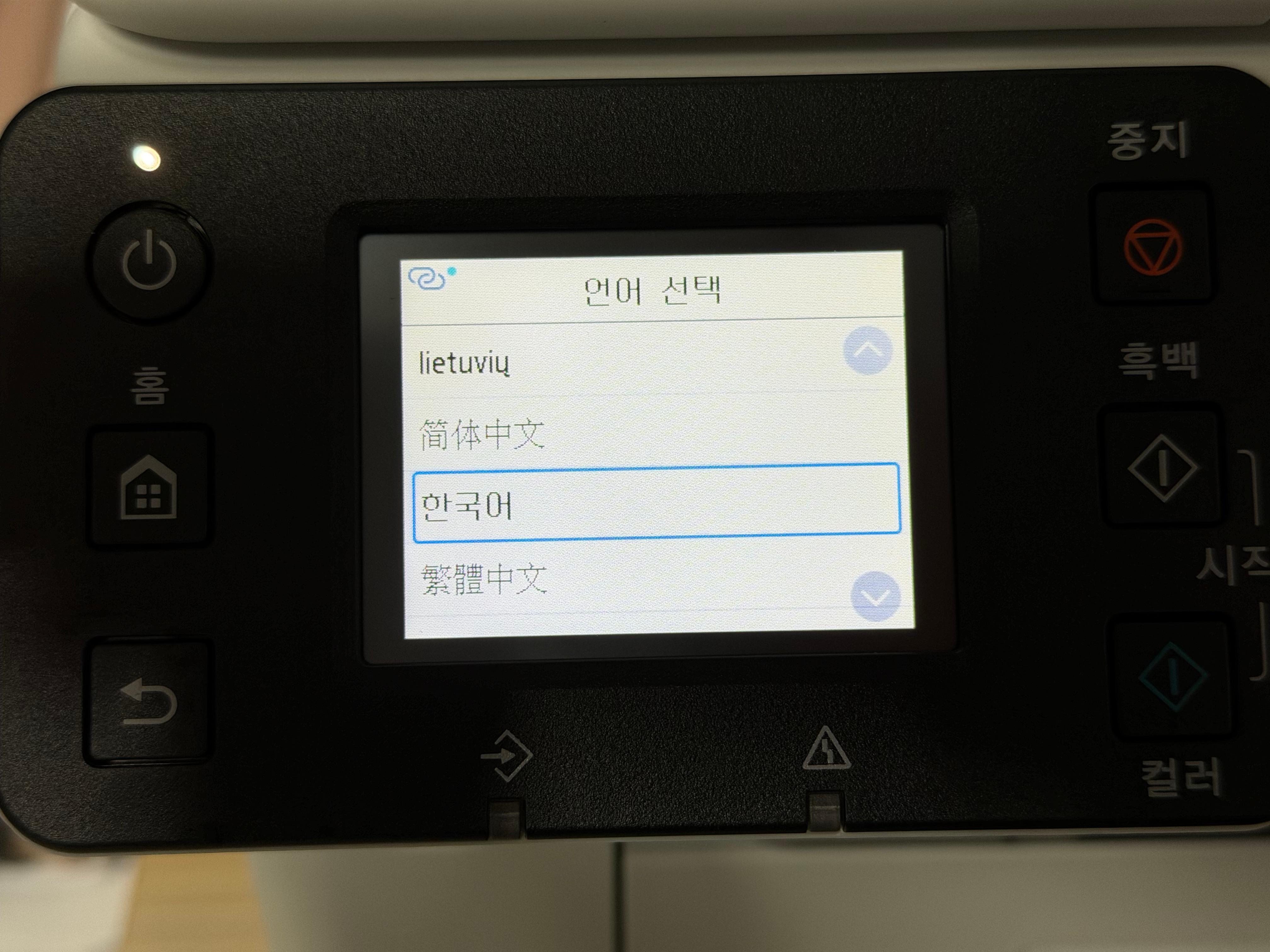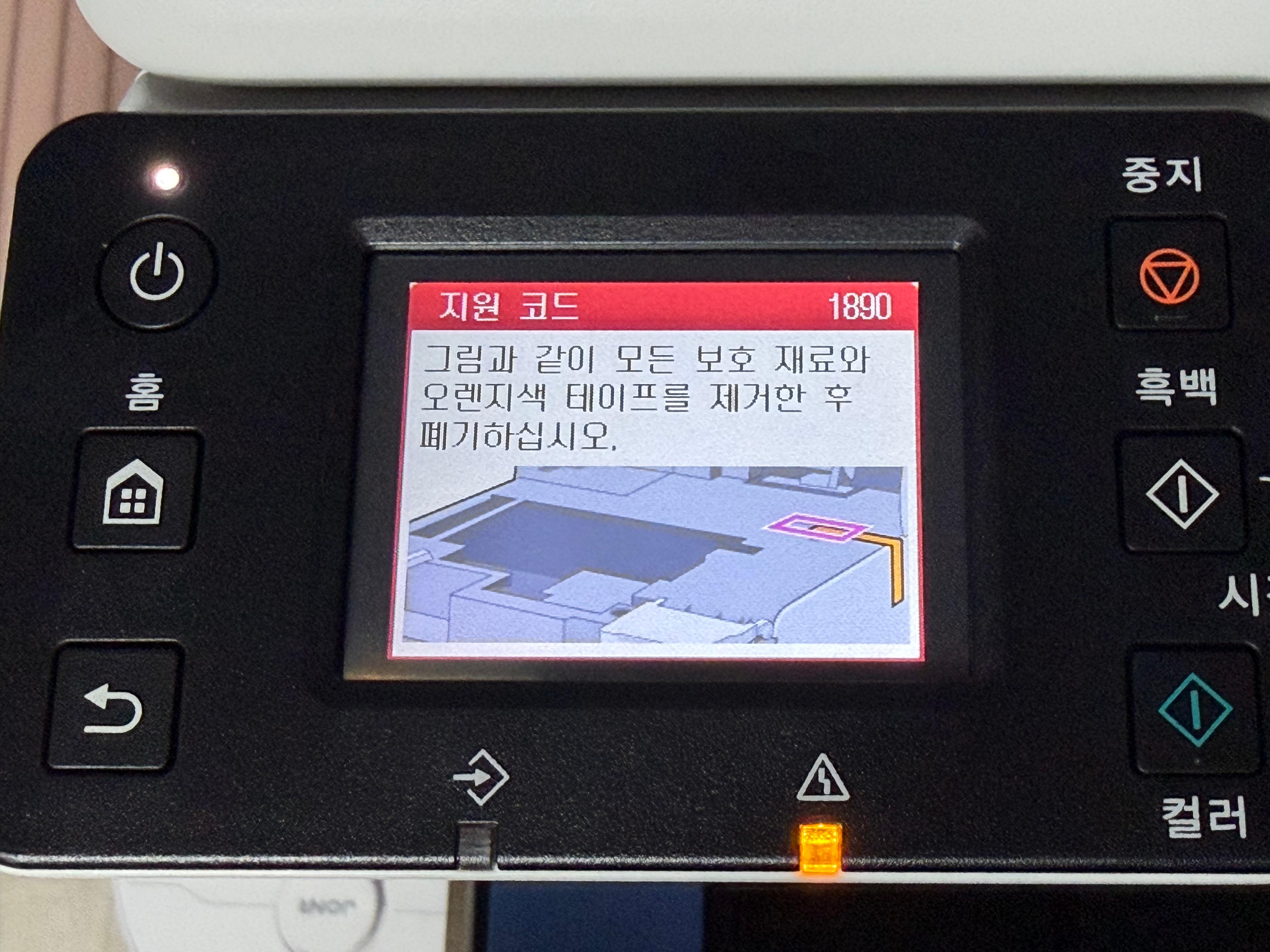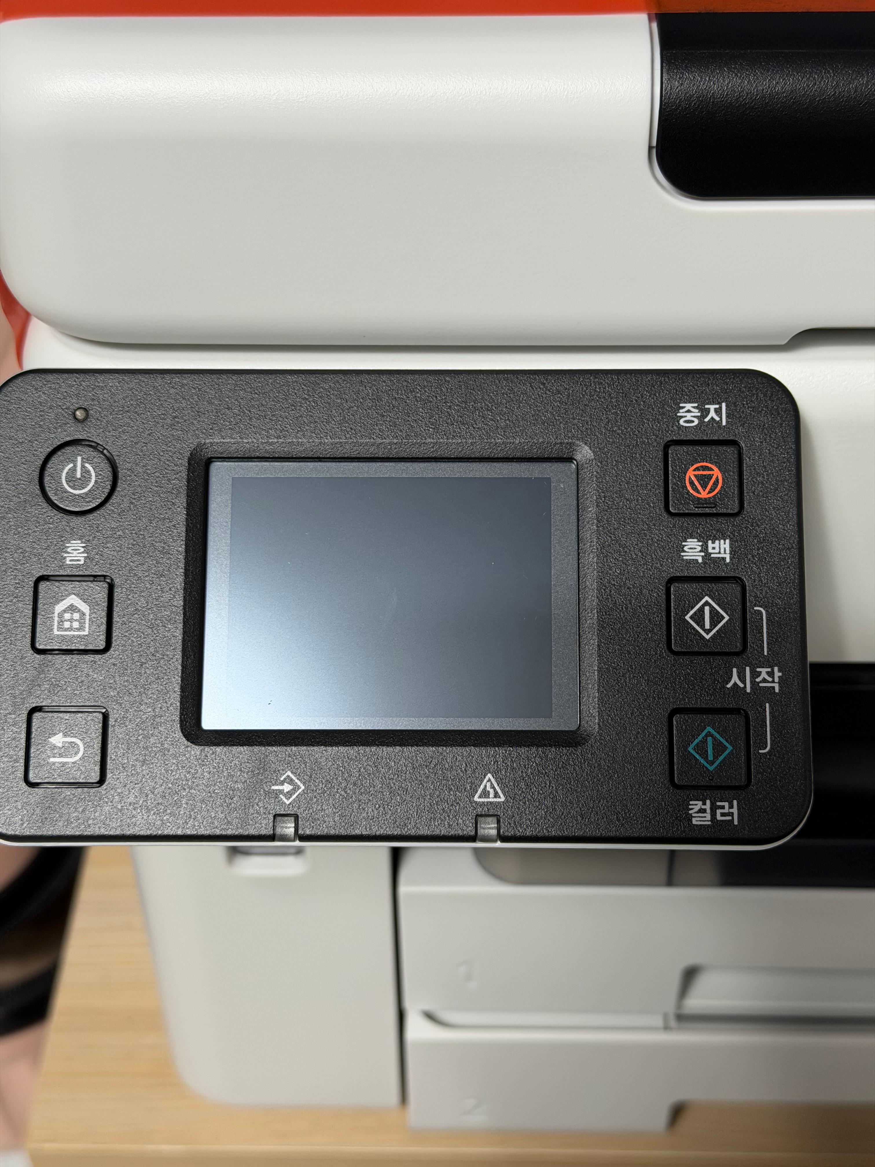 제품의 전원을 연결하고 전원 버튼을 누르면 언어선택에서부터 날짜, 시간 등을 설정하고 바로 잉크 주입을 요구하는 화면으로 넘어갑니다. 한글을 지원하기 때문에 설정에 어려움은 없습니다.