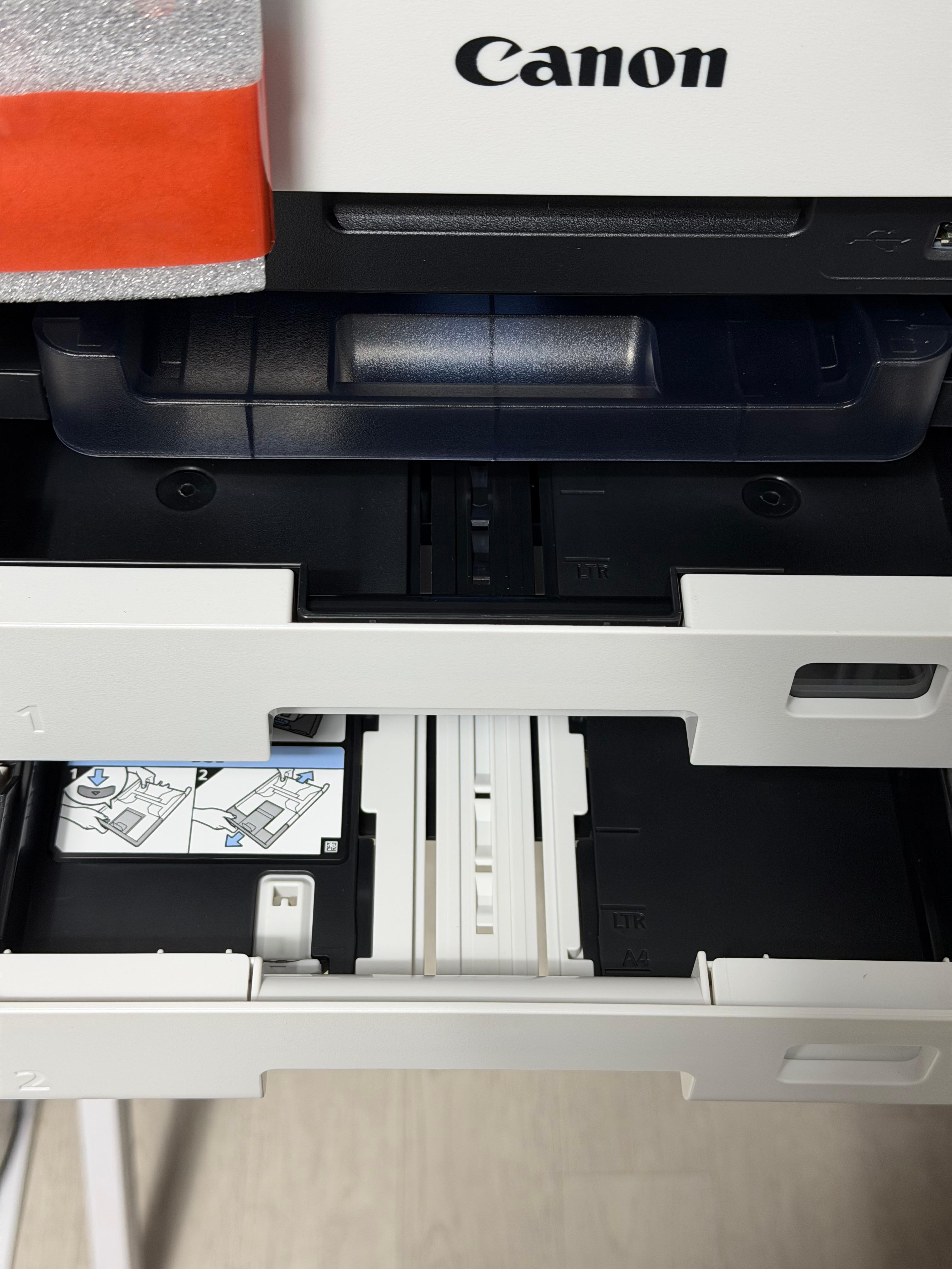 캐논 GX7192는 이전 모델과 마찬가지로 1단, 2단 트레이에 각 250장씩 총 500장, 뒷면 트레이에 100장 해서 총 600장을 한 번에 집어 넣고 인쇄를 할 수가 있습니다. 가정에서야 500~600장을 한 번에 인쇄할 일은 거의 없겠지만 사무실에서 쓸 때는 매우 유용할 겁니다.