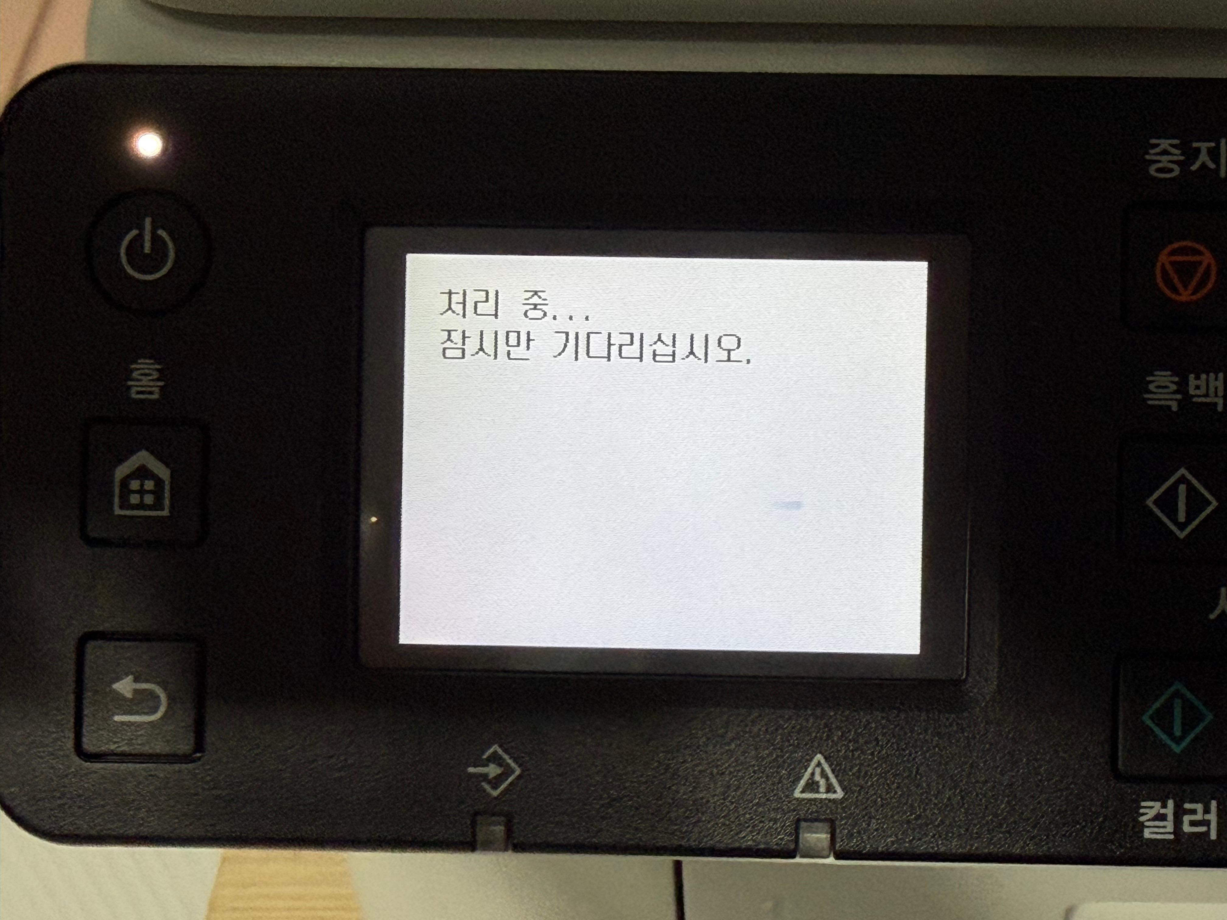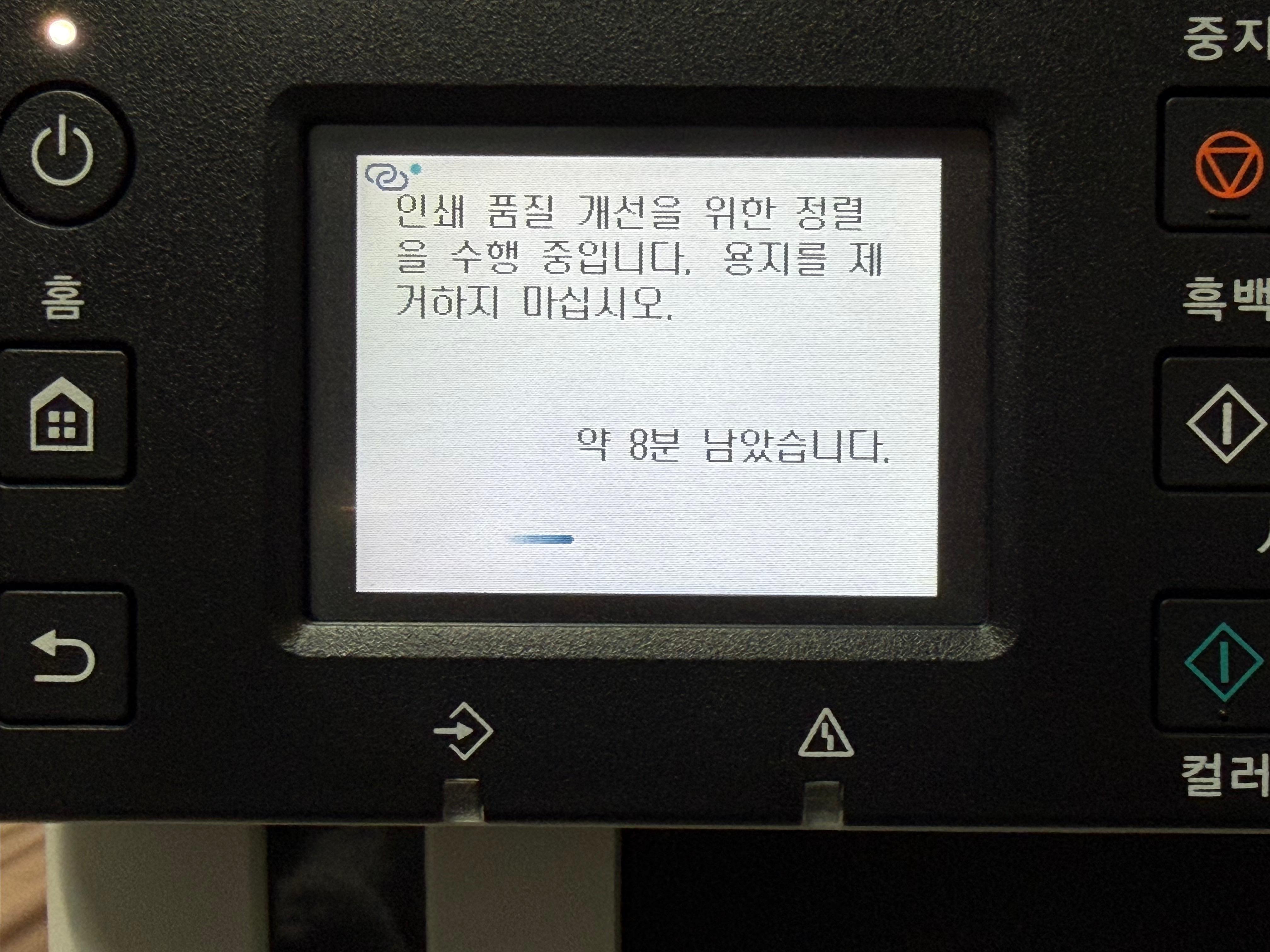 처음 잉크를 주입하고 헤드까지 잉크를 주입 시킨 후 시범 인쇄까지는 약 10분 정도 소요가 됩니다. 잉크통에서 긴 튜브를 통해 헤드까지 잉크를 빨아들이고, 헤드 정렬을 통해 인쇄를 정확히 하기 위한 시간인 만큼 충분히 기다릴 가치가 있는 시간입니다. 역시나 한국 사람에겐 힘들고 어려운 시간입니다. 충청도 사람인 저에게도 길게 느껴질 정도니 경상도 분들은 아마 집어 던지고 싶어질 수도 있겠습니다.