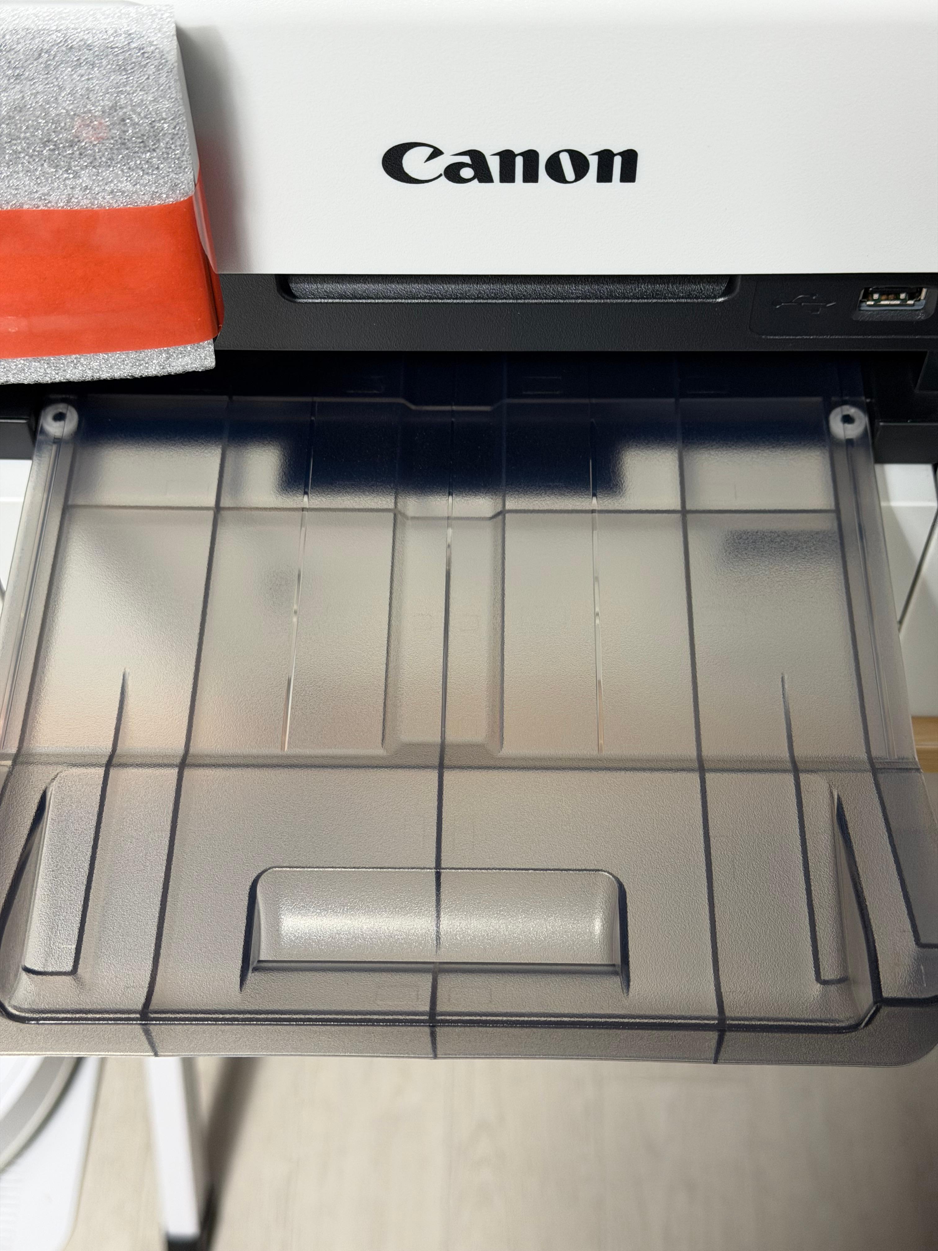 캐논 GX7192는 캐논의 플래그십 모델답게 크고 육중한 포장을 자랑합니다. 제품을 꺼내기 위해서는 다소 힘이 필요한데 제품을 보다 쉽게 꺼낼 수 있도록 제품을 감깐 비닐 포장에 손잡이를 제공합니다. 손잡이 모양의 비닐포장을 잡고 쑤욱 올리면 별다른 마찰 없이 박스에서 꺼낼 수 있습니다.